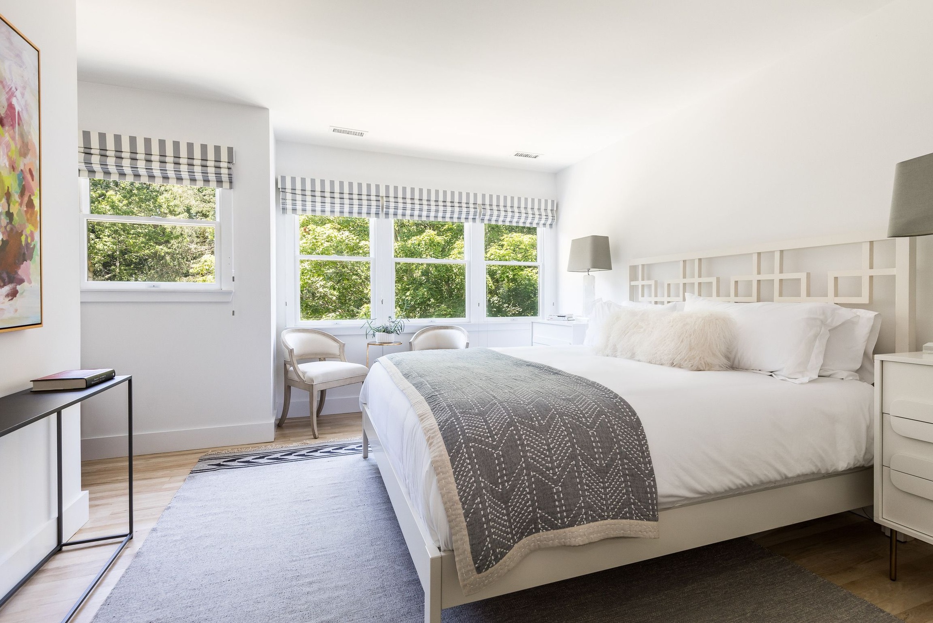 This beautifully designed 4-bedroom, 3.5-bath Sag Harbor home with community tennis offers the perfect blend of comfort and coastal living. The first floor features an open kitchen, dining area, and living room that flow seamlessly together, along with a media room, exercise area, and powder room. Also on the first floor are two guest bedrooms, one with a king bed and one with a queen that share a full hall bath.