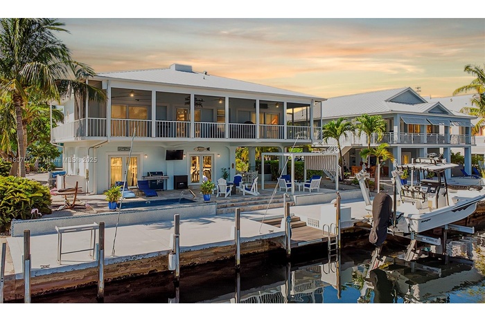 Turnkey canal-front 4BD/3BA pool home at a rare T-junction in Islamorada’s Port Antigua. Fully updated with quartz kitchen, wood-look tile, LED lighting, and fresh paint. Split floor plan upstairs with 2 ensuite bedrooms and screened balcony overlooking your dock. Downstairs 2BD/1BA guest suite with full kitchen. New pool with fountain, louvered pergola, wraparound porch, and dual A/Cs. Enjoy private community beach, boat ramp, and direct ocean access. A must-see waterfront gem! Cruise from your backyard into clear waters. This home offers ultimate Keys living with quick bay and ocean access for world-class boating and fishing. Port Antigua is a golf cart-friendly neighborhood with strong property values and island charm. Relax poolside, enjoy the views, and embrace life on the water.