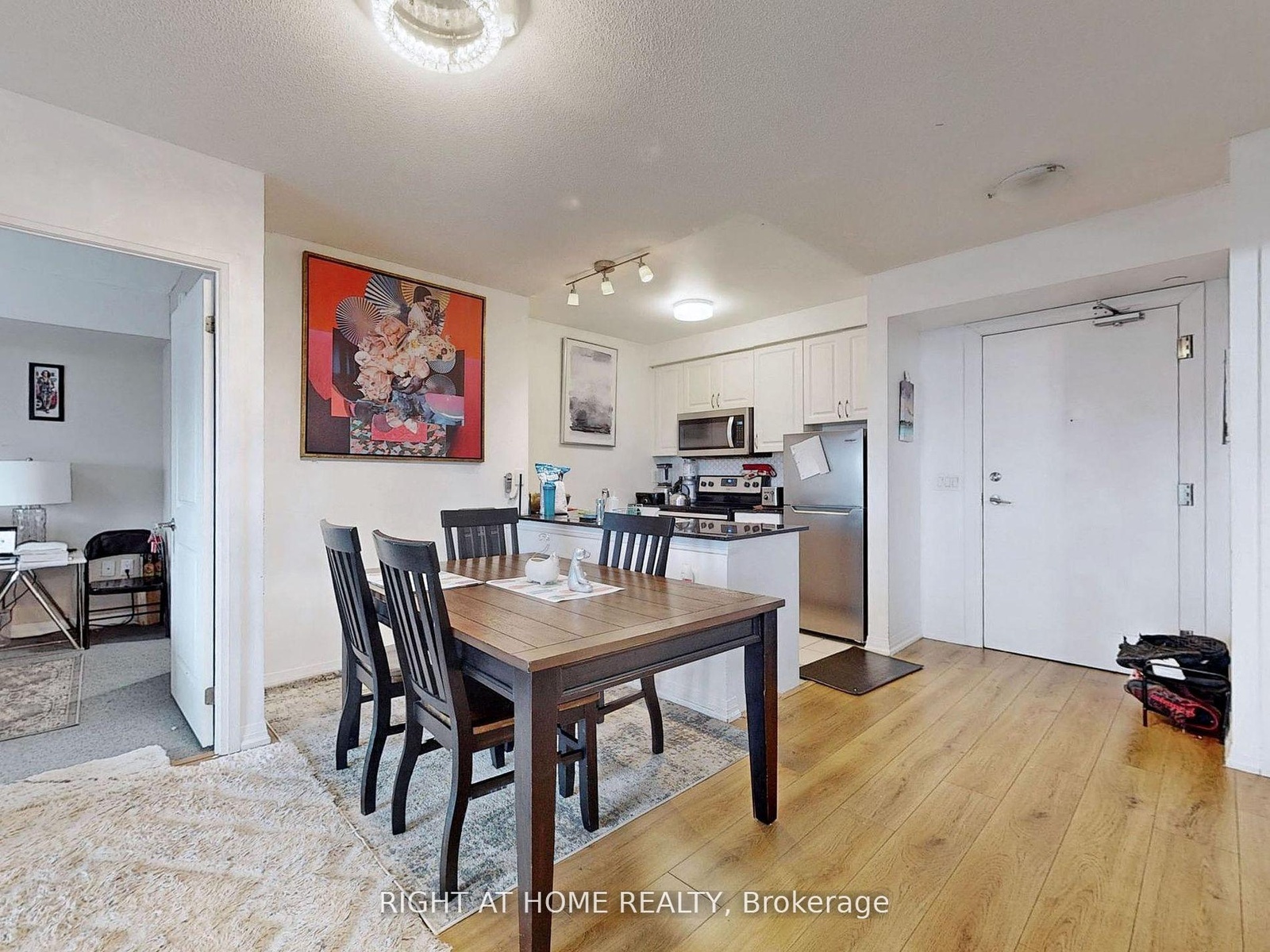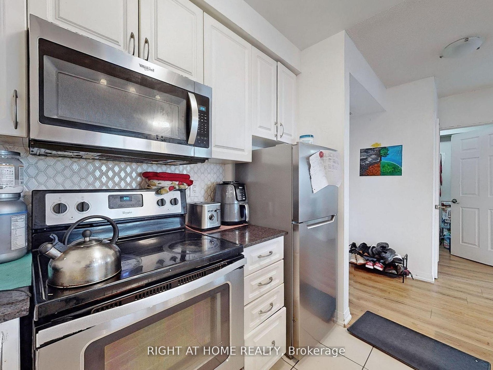 Welcome to Condo Diva, a boutique residence in the family-friendly area of North York, just 15 minutes from York University. This condo features an open concept layout with a bright kitchen, central island, spacious living and dining area, and fresh paint. The primary bedroom includes his and hers closets, and there are extra closets in the living room and den. The south-facing rooftop terrace offers a direct gas connection for BBQs. Amenities include a gym, sauna, visitor parking, party room, TTC access, nearby highways, restaurants, shops, and parks. Schools in the area are Dublin Heights Elementary and Middle School, William Lyon Mackenzie Collegiate Institute, Es Etienne-Brule, and EE Paul Demers.