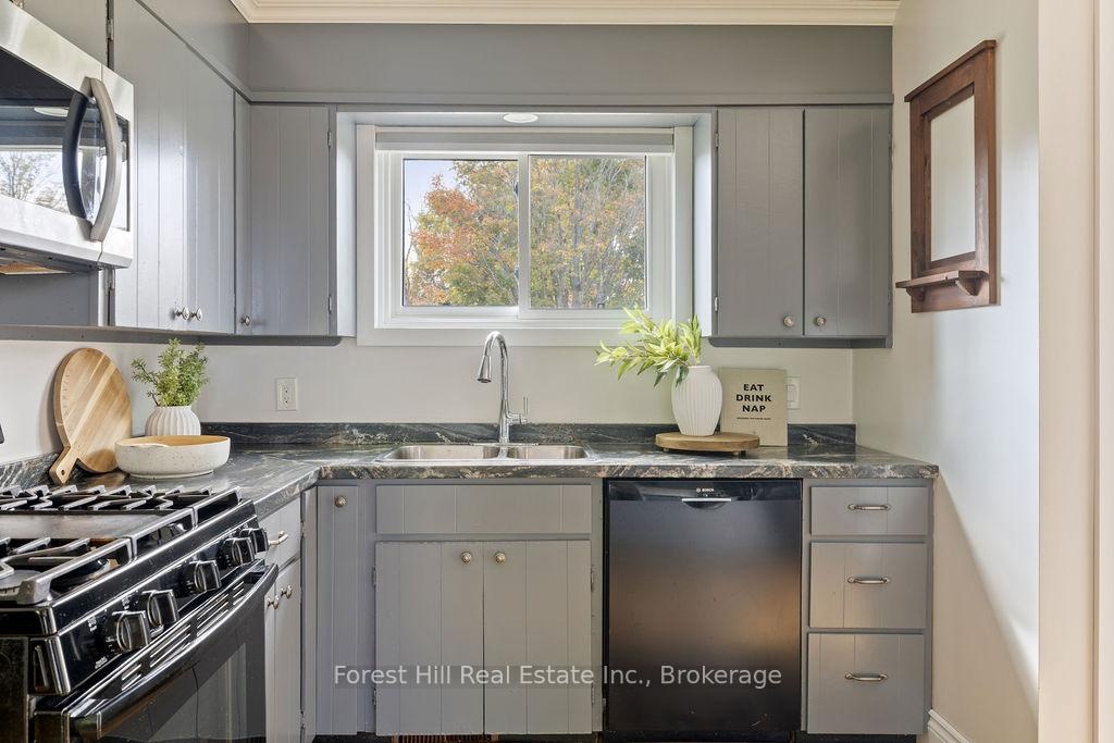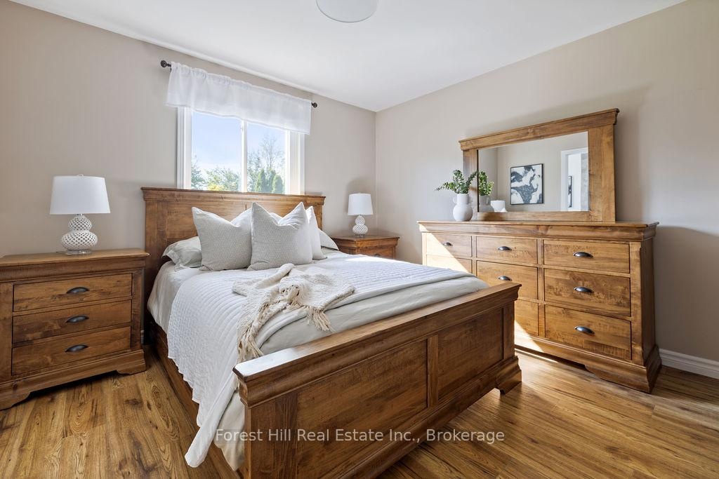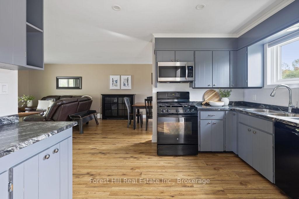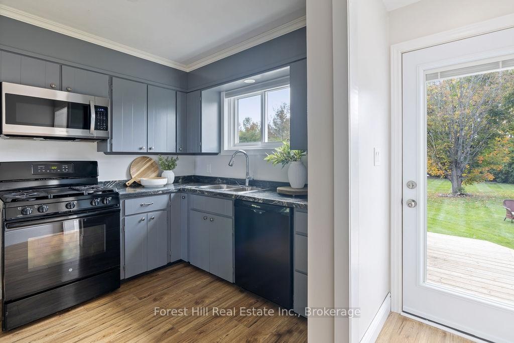 Set on a spacious, professionally landscaped country lot, this meticulously maintained 2,069 sq ft bungalow offers the best of modern comfort in a peaceful, natural setting. Thoughtful updates and quality finishes make it a home that balances style, function, and flexibility. The main floor welcomes you with an inviting layout where large windows frame garden views and natural light fills the living spaces. Three bedrooms and two fully renovated bathrooms provide comfort and convenience, while the kitchen and dining areas flow seamlessly for everyday living and entertaining. A convenient pantry with direct walkout to the backyard adds ease to both meal prep and outdoor dining. The lower level continues the appeal with high ceilings and oversized windows that bring in abundant natural light. This space features a bar, gas fireplaceand a generous recreation area, perfect for hosting family and friends. A fourth bedroom adds versatility for growing families or guests. Outdoors, the property shines with professionally landscaped gardens, mature trees, and stone walkways. Tiered decks with a natural gas BBQ line create the perfect setting for outdoor dining, gatherings, and relaxation. Recent updates ensure peace of mind for years to come, including a new AC unit (2025), deck and roof (2020) along with windows, doors, hot water tank, and furnace (2017). Located just minutes from Meaford's waterfront, trails, and shops, this home combines rural serenity with the convenience of town amenities. It is an ideal choice for families, downsizers, or anyone seeking a lifestyle rooted in nature and community.