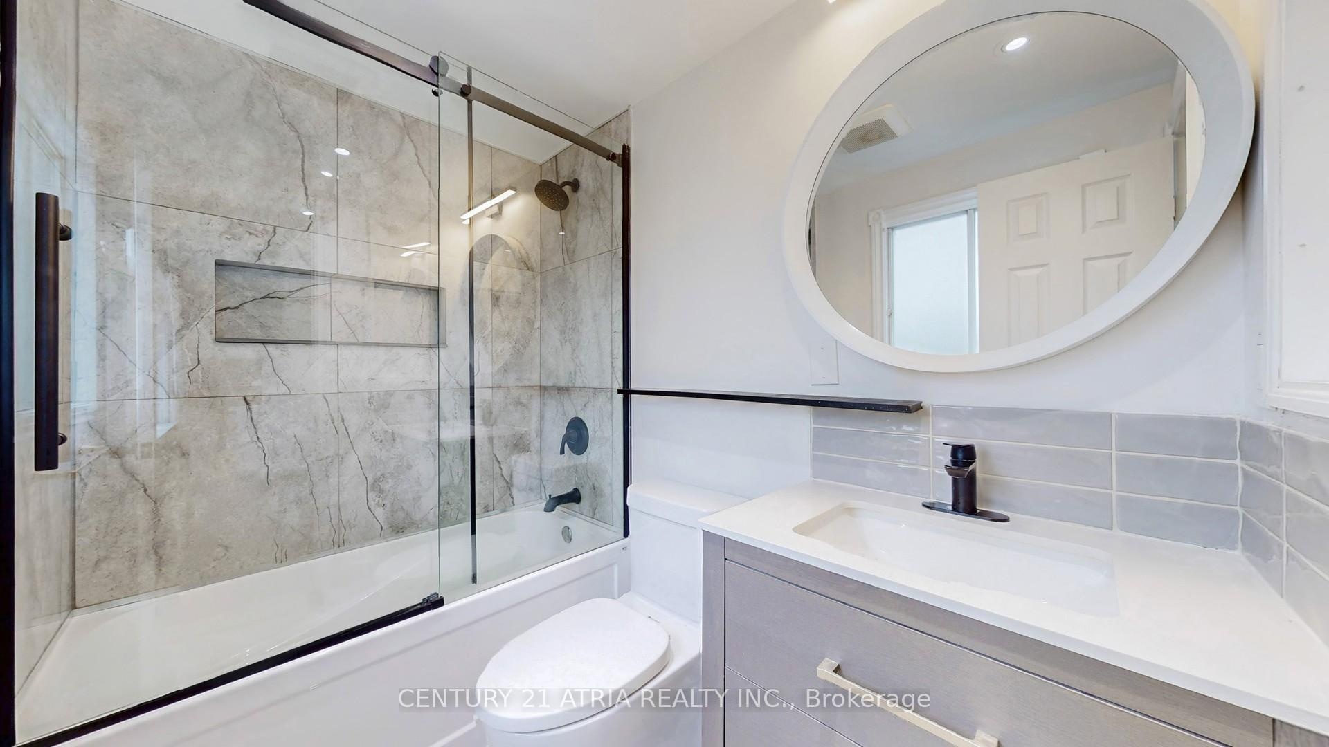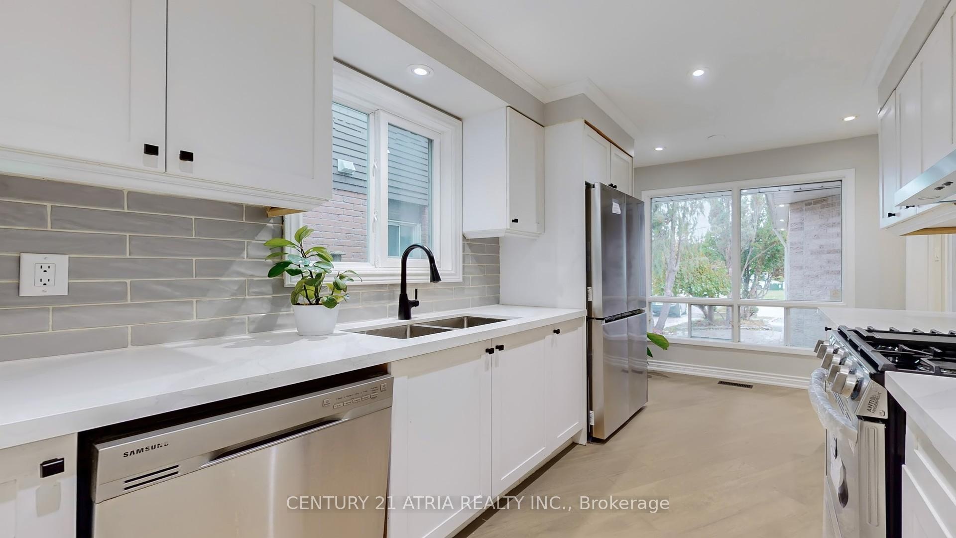 Beautifully renovated 3 Bedroom/4 Bathroom - 2 Storey home is located on a premium Cul-de-Sac lot backing onto Village East Park and adjacent to Diana Princess of Wales Park. The home showcases engineered hardwood flooring and pot lights throughout and tasteful designer finishes that flow seamlessly from room to room. The open-concept main floor is bright and inviting with large windows that fill the space with natural light and a walkout to a private backyard. The modern kitchen features quartz countertops, modern stainless steel appliances, sleek cabinetry and generous workspace which flows effortlessly into the dining area highlighted by a charming bay window overlooking the backyard. Upstairs, the renovation continues with three generous-sized bedrooms, each featuring large windows, spacious closets, and warm hardwood flooring. The primary suite is gorgeous sunlit retreat with a double custom closet with organizers and a fully updated 4pc ensuite boasting modern fixtures, elegant tile work and a spa-like atmosphere that feels both luxurious and relaxing. The finished basement extends the home's beautiful design with a versatile recreation area featuring a cozy fireplace and additional living space that's perfect for family gatherings, a home office or a media room. Outside, a private backyard oasis that backs directly onto lush green space, perfect for outdoor entertaining or quiet evenings surrounded by nature. The home's cul-de-sac setting offers added peace and safety, while the extended driveway provides ample parking for family and friends. Triple A location, 4 min drive to Walmart, 3 min drive to Pickering City Center Mall, close to Highway 401, GO Transit, top-rated schools, shops and restaurants. This home offers peaceful green views, unmatched privacy and direct access to nature, all while being close to city conveniences.