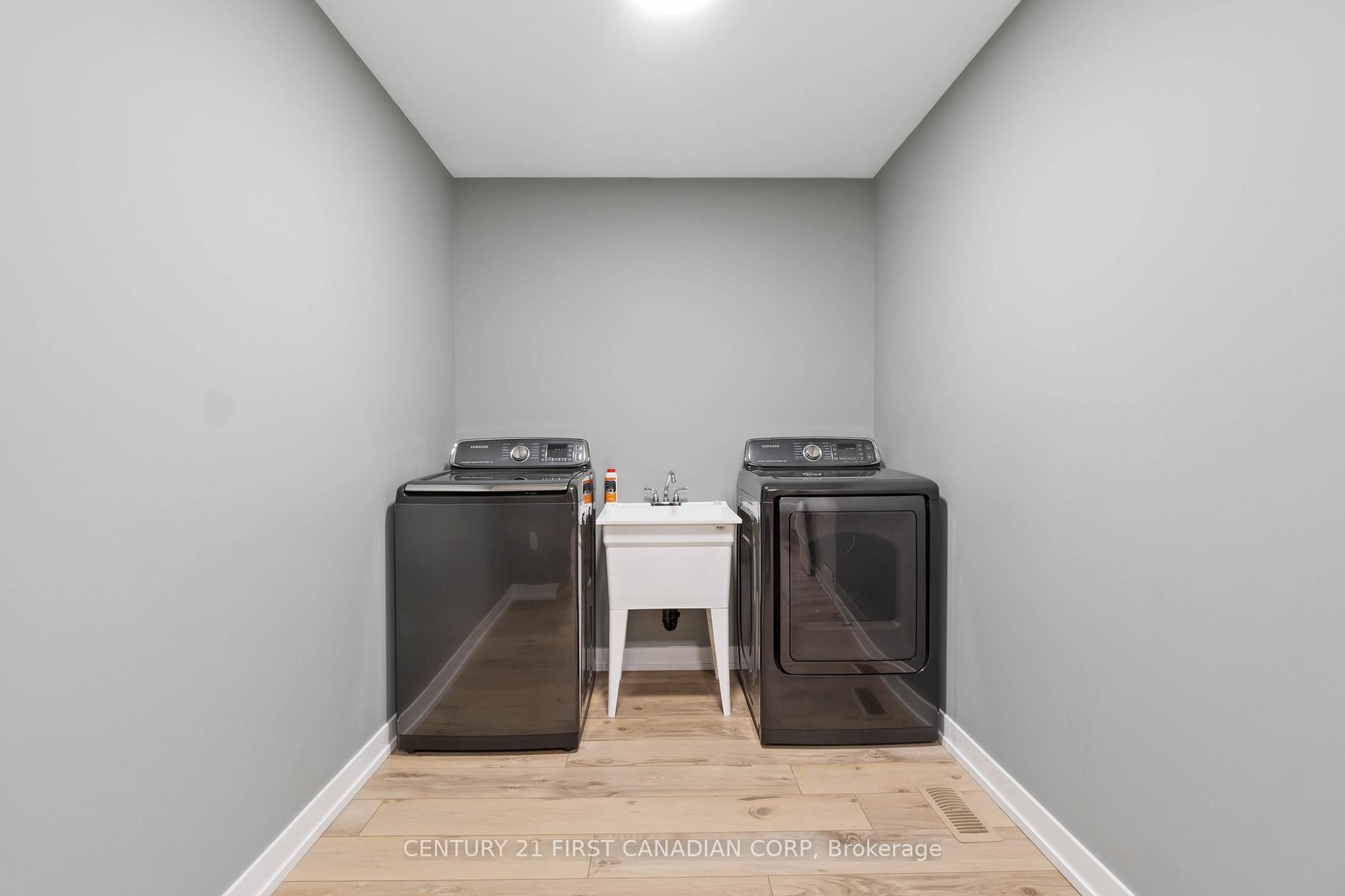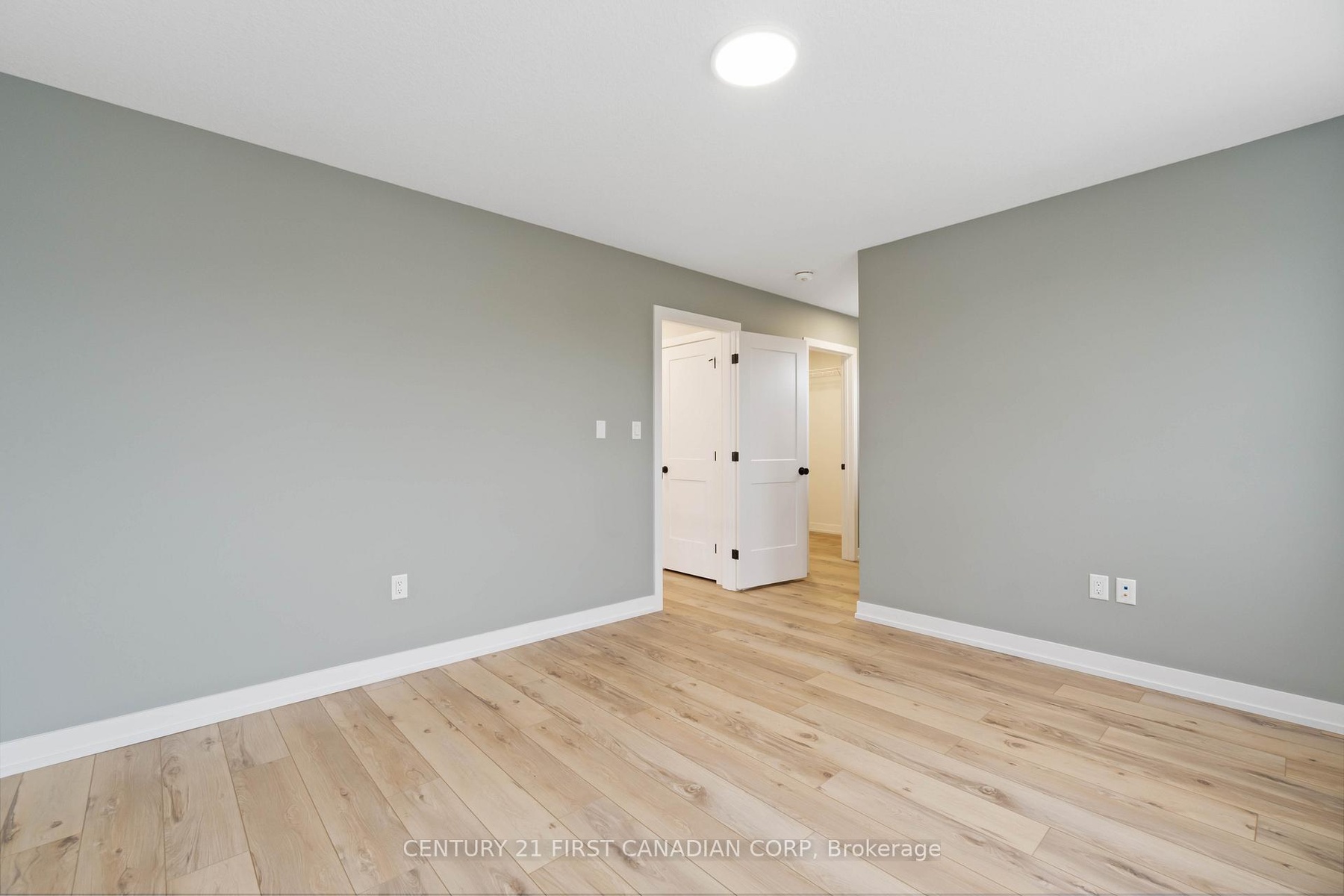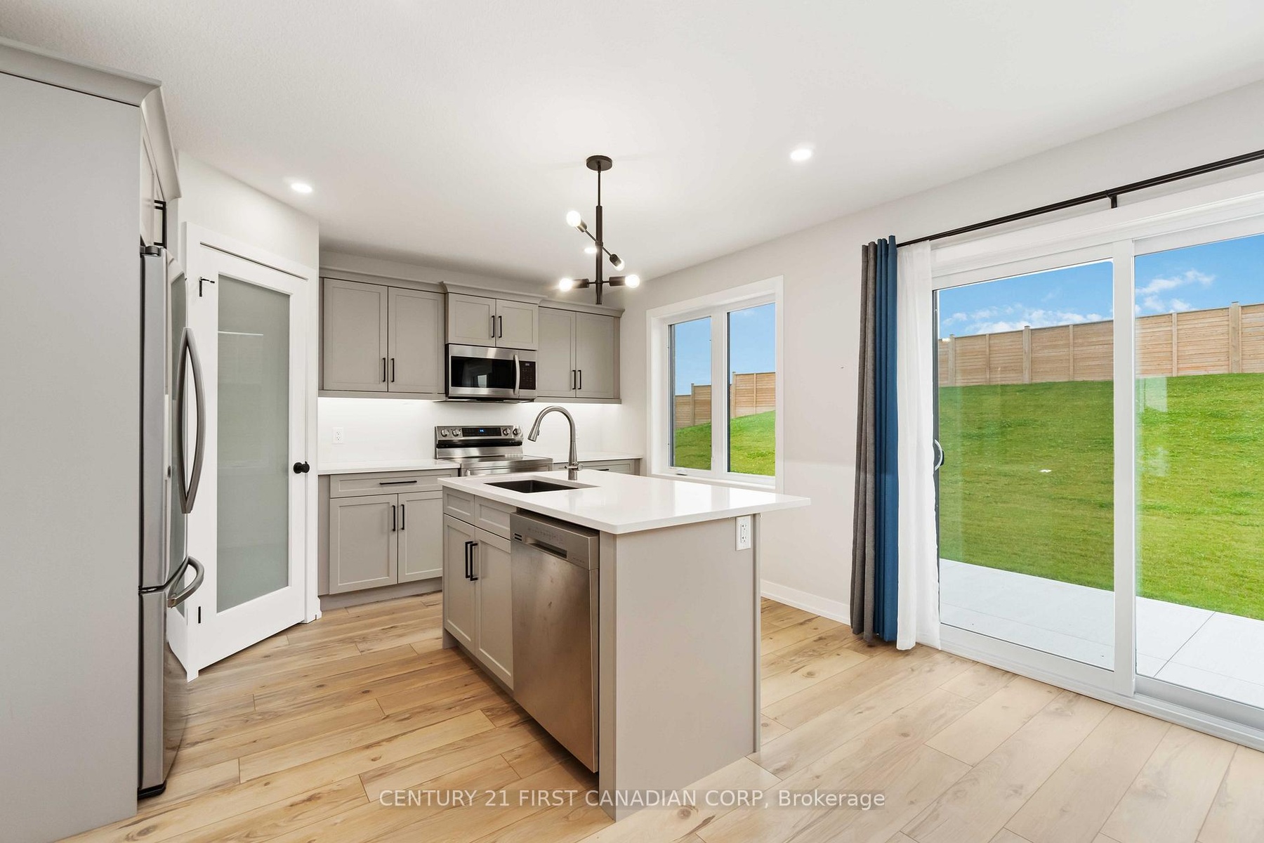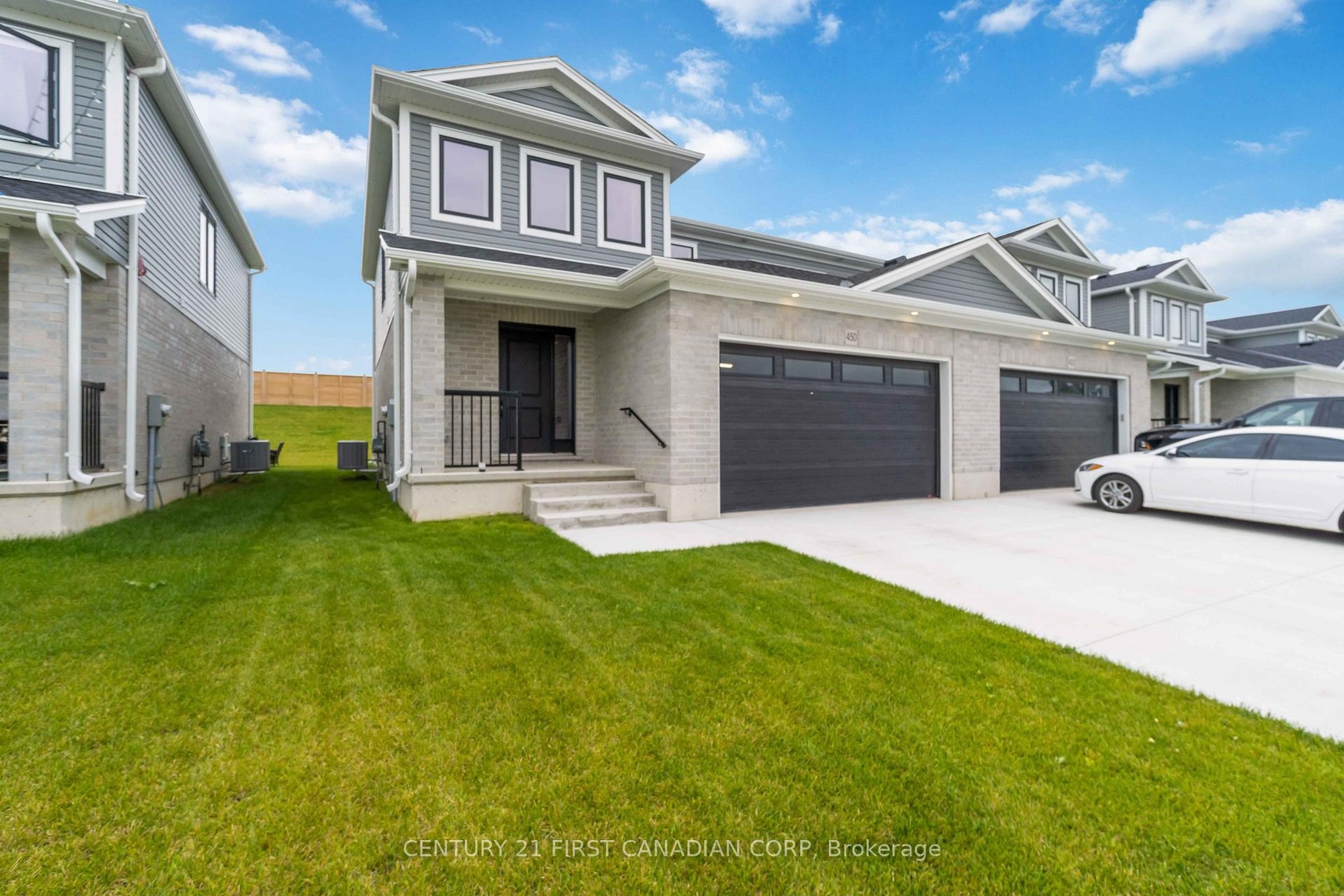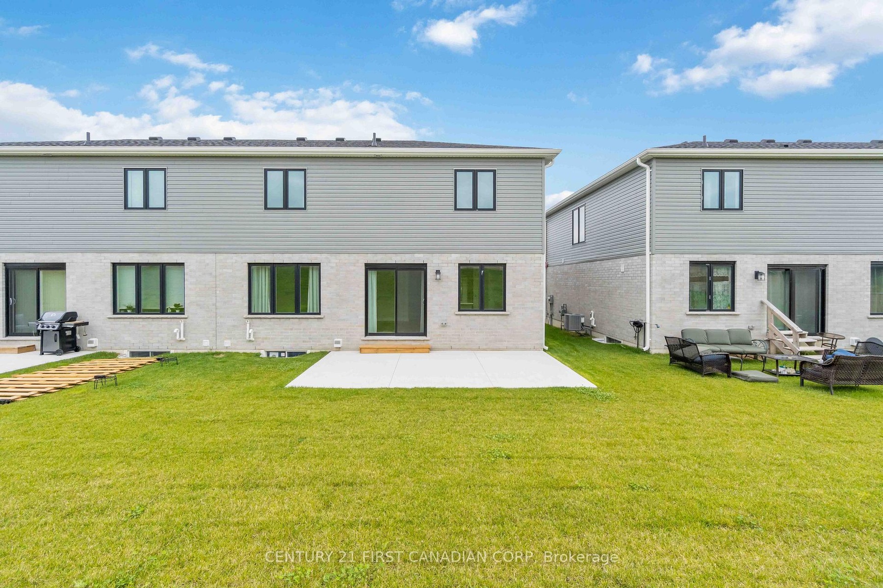This stunning, better than new 2-storey semi-detached home offers 1,736 sq. ft. of beautifully finished living space and an attached 2-car garage. Perfectly suited for a growing family, this property combines modern elegance with functionality and comfort. Step inside to an open-concept main floor that's perfect for entertaining. The custom kitchen designed by Casey's Creative Kitchens features Carrara Marmi quartz countertops, high end SS appliances, beautiful gold details, and an island reimagined from the original floor plan to create even more space in this already generous layout. The main floor also includes a 2-piece bathroom and a massive laundry/mudroom with inside entry to the garage. Upstairs, you'll find three spacious bedrooms - each a great size - including an oversized primary suite with a large walk-in closet and a 3-piece ensuite featuring marbled hexagon tiles and an upgraded adaptable hand-held wand shower fixture. Every finish has been thoughtfully chosen, with exquisite touches and tasteful upgrades throughout.The unfinished basement offers development potential, with room to add an additional bedroom, a bathroom (rough-in already in place), and a generous recreation area.Outside, enjoy a deep lot with plenty of green space, a deep concrete driveway, and freehold ownership with no condo fees - offering both freedom and value! Located under 10 minutes from Highway 402, and just 15 minutes to Sarnia or 30 minutes to Strathroy, this home is close to schools, shopping, and a family-friendly park with a splash pad. This home must be seen to be truly appreciated!