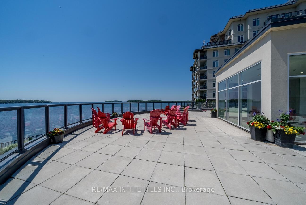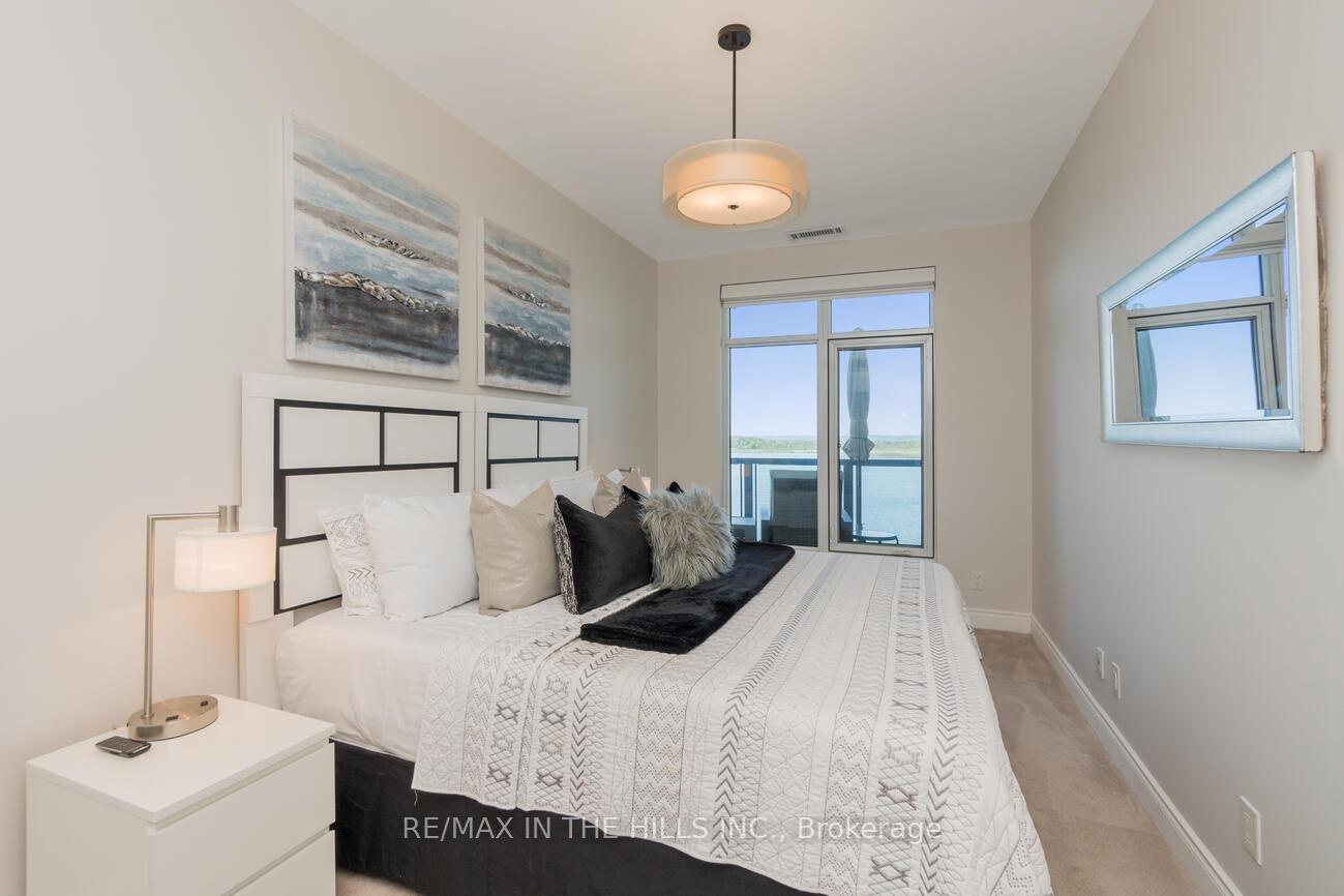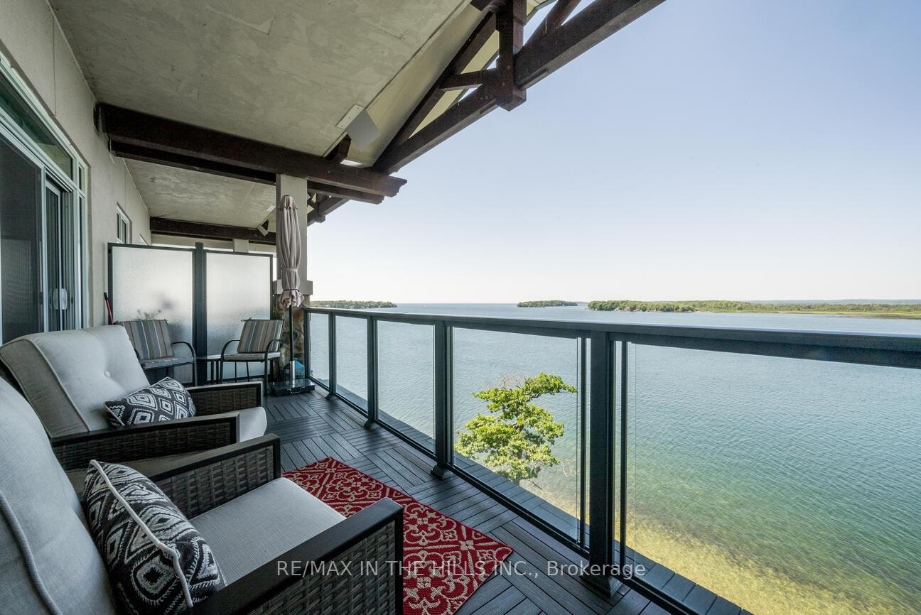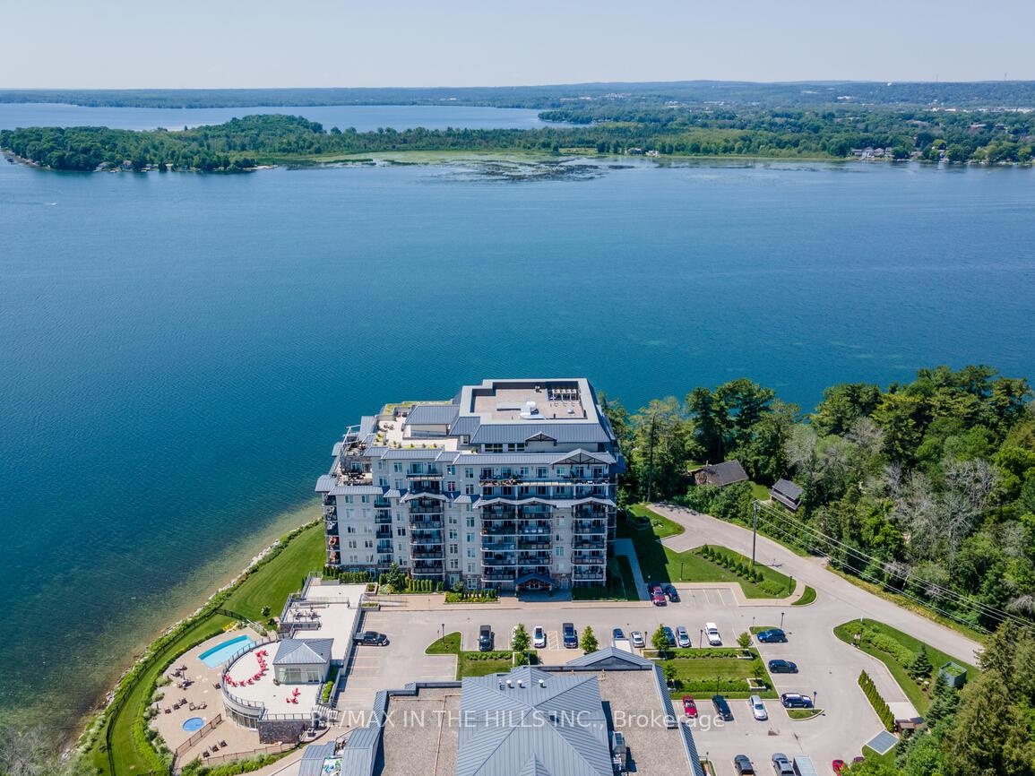 Embrace the tranquility of refined cottage-style living on the pristine shores of Lake Simcoe in this beautifully curated 1+1 bedroom, 2-bathroom residence. Set within an exclusive, resort-inspired community, this suite showcases sophisticated design and meticulous craftsmanship throughout. An entertainer's dream, the open-concept layout features a gourmet kitchen with a granite island, premium gas range, and sleek custom cabinetry - seamlessly flowing into a bright living area adorned with rich hardwood floors and elegant crown moulding. The inviting primary suite offers a peaceful retreat with ample space and comfort. Step out from the living area onto your private balcony to savor sweeping southwest views of Lake Simcoe - the perfect backdrop for morning coffee or breathtaking sunsets. Residents enjoy boutique-style amenities rivaling the finest resorts: a rooftop terrace, lush garden courtyard, fully equipped fitness centre and yoga studio, rejuvenating sauna, and an outdoor pool and hot tub overlooking the lake. Just minutes from town, yet a world away in ambiance, this remarkable property captures the essence of modern lakeside sophistication - where nature, luxury, and convenience exist in perfect harmony. A rare opportunity to experience life on Lake Simcoe at its most exquisite.