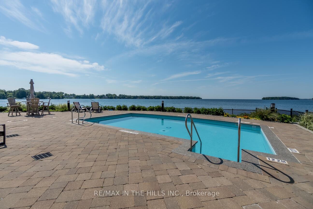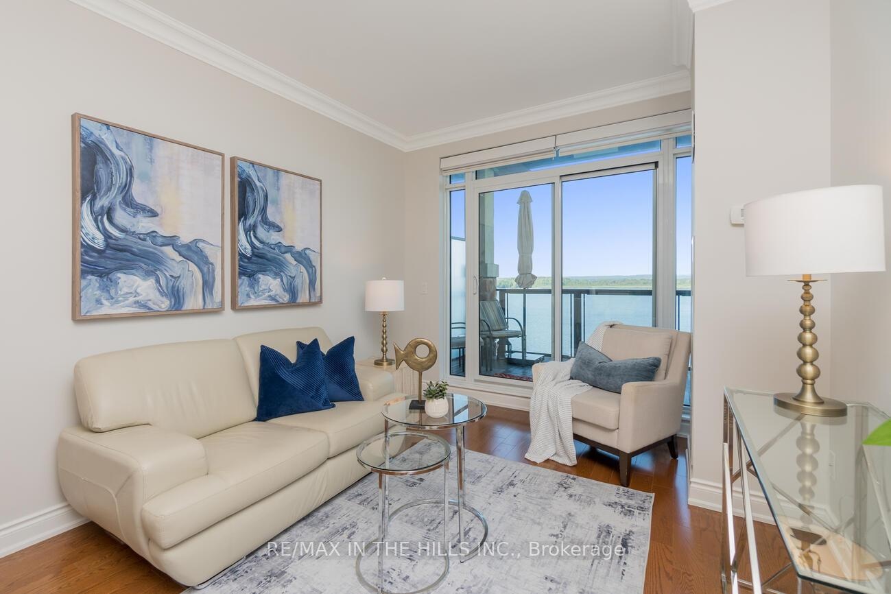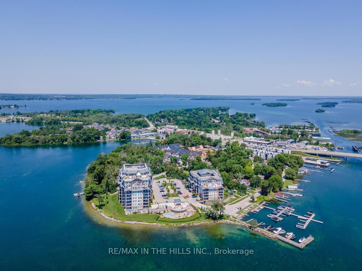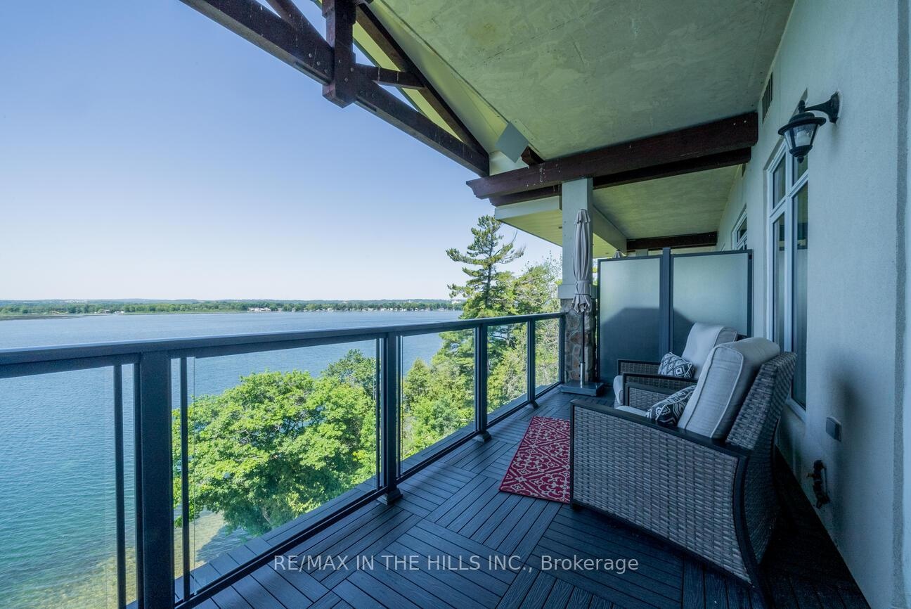 Embrace the tranquility of refined cottage-style living on the pristine shores of Lake Simcoe in this beautifully curated 1+1 bedroom, 2-bathroom residence. Set within an exclusive, resort-inspired community, this suite showcases sophisticated design and meticulous craftsmanship throughout. An entertainer's dream, the open-concept layout features a gourmet kitchen with a granite island, premium gas range, and sleek custom cabinetry - seamlessly flowing into a bright living area adorned with rich hardwood floors and elegant crown moulding. The inviting primary suite offers a peaceful retreat with ample space and comfort. Step out from the living area onto your private balcony to savor sweeping southwest views of Lake Simcoe - the perfect backdrop for morning coffee or breathtaking sunsets. Residents enjoy boutique-style amenities rivaling the finest resorts: a rooftop terrace, lush garden courtyard, fully equipped fitness centre and yoga studio, rejuvenating sauna, and an outdoor pool and hot tub overlooking the lake. Just minutes from town, yet a world away in ambiance, this remarkable property captures the essence of modern lakeside sophistication - where nature, luxury, and convenience exist in perfect harmony. A rare opportunity to experience life on Lake Simcoe at its most exquisite.