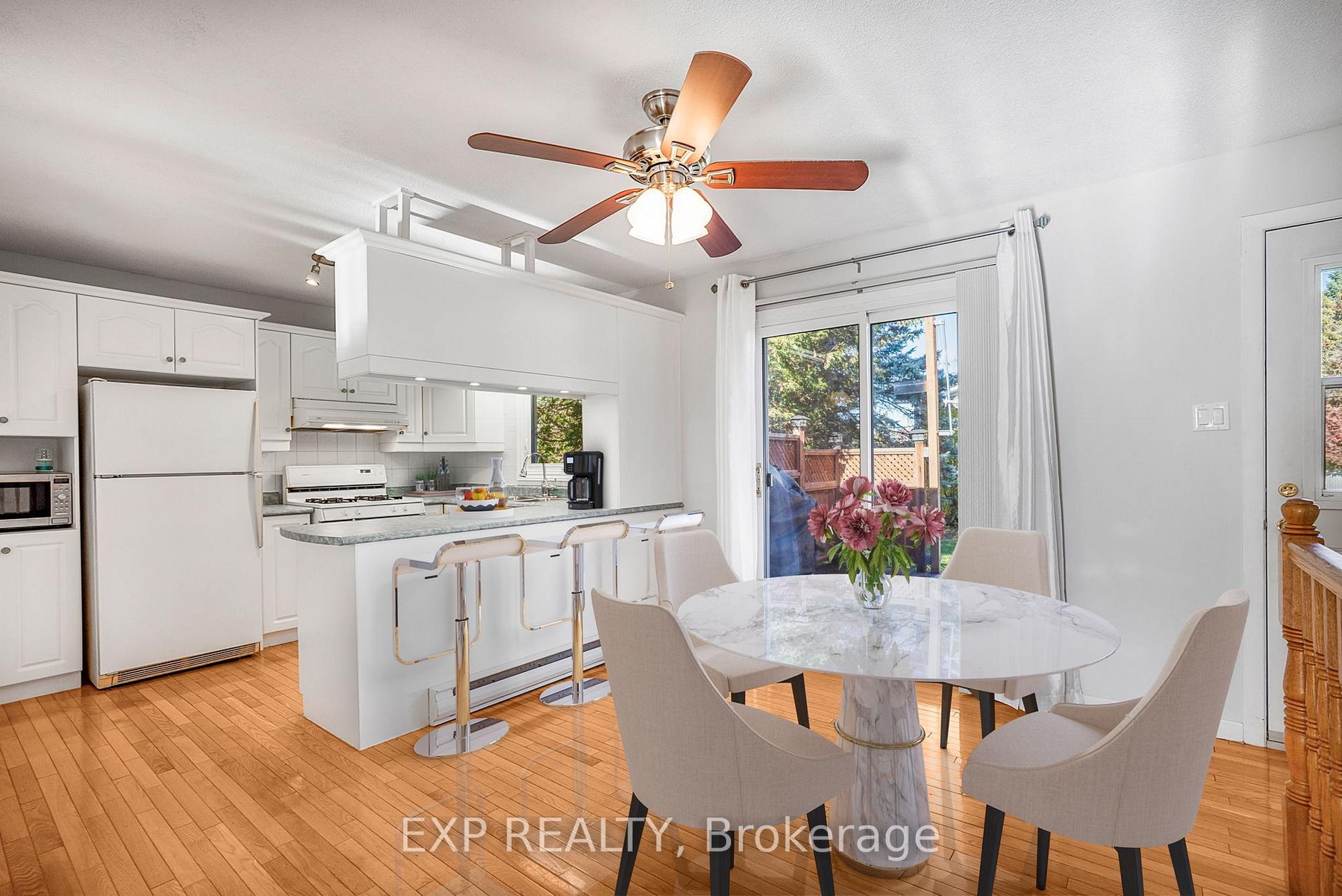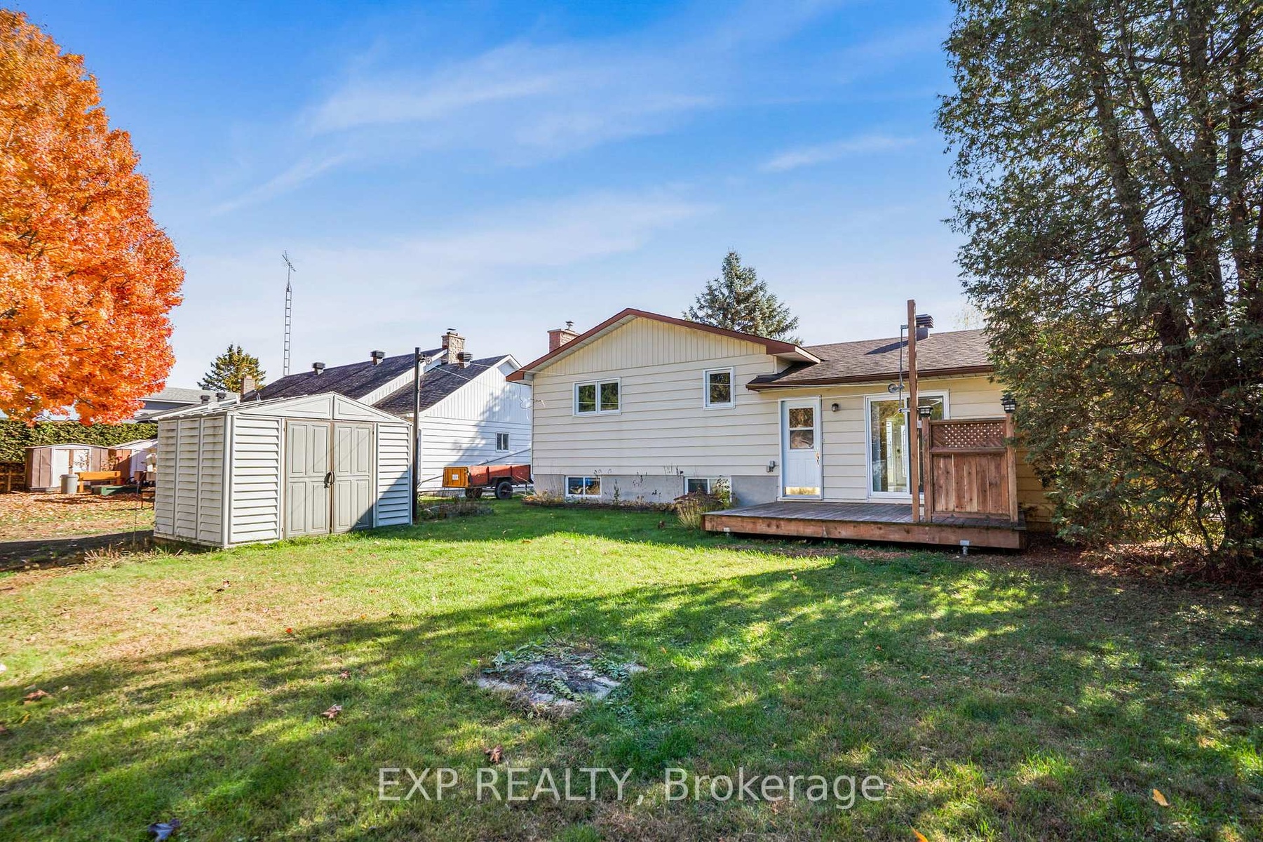 This charming 3+1 bedroom, 2-bath home is perfectly positioned on a corner lot. Step inside to a bright and inviting living area featuring a large window that fills the space with natural light. The kitchen showcases a stylish brick feature wall, while the adjacent dining area offers direct access to the rear deck-ideal for entertaining or enjoying morning coffee outdoors. Upstairs, you'll find a spacious primary bedroom with a cheater door to the full bathroom, along with two additional generously sized bedrooms. The lower level provides even more living space, featuring a cozy family room with a gas fireplace, a fourth bedroom, a second full bathroom combined with laundry, and ample storage. Outside, enjoy a backyard surrounded by mature trees for added privacy and a large deck perfect for gatherings or quiet relaxation. Freshly painted this year and conveniently located close to shopping, schools, and parks, this home is truly move-in ready.