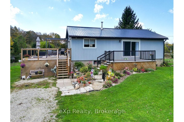 Set on 65 acres, this property offers a great mix of open land and forest - about 20 acres of workable ground plus trails through maple, birch, cedar, and elm trees. The 3-bedroom, 2-bath bungalow has been well cared for and provides plenty of space for everyday living.The living room opens through patio doors to a front porch overlooking the lawn. The bright, eat-in kitchen connects to a large, raised deck with wide views across the fields and woodlands - an ideal spot for outdoor meals or quiet mornings. Downstairs, the finished basement adds flexibility, with a generous family area warmed by a wood stove, plus a two-piece bath, laundry and roughed in 4th bedroom ready for completion. Propane (fuel & tank rental) 2024 -$884.34; 2025 (to Oct 8) - $951.70. There's room on this property to spread out, play and explore. Only 15 minutes from Owen Sound or Wiarton and just down the road from Francis and Bass Lakes, this is a great spot for anyone looking for space, fresh air, and potential to grow.