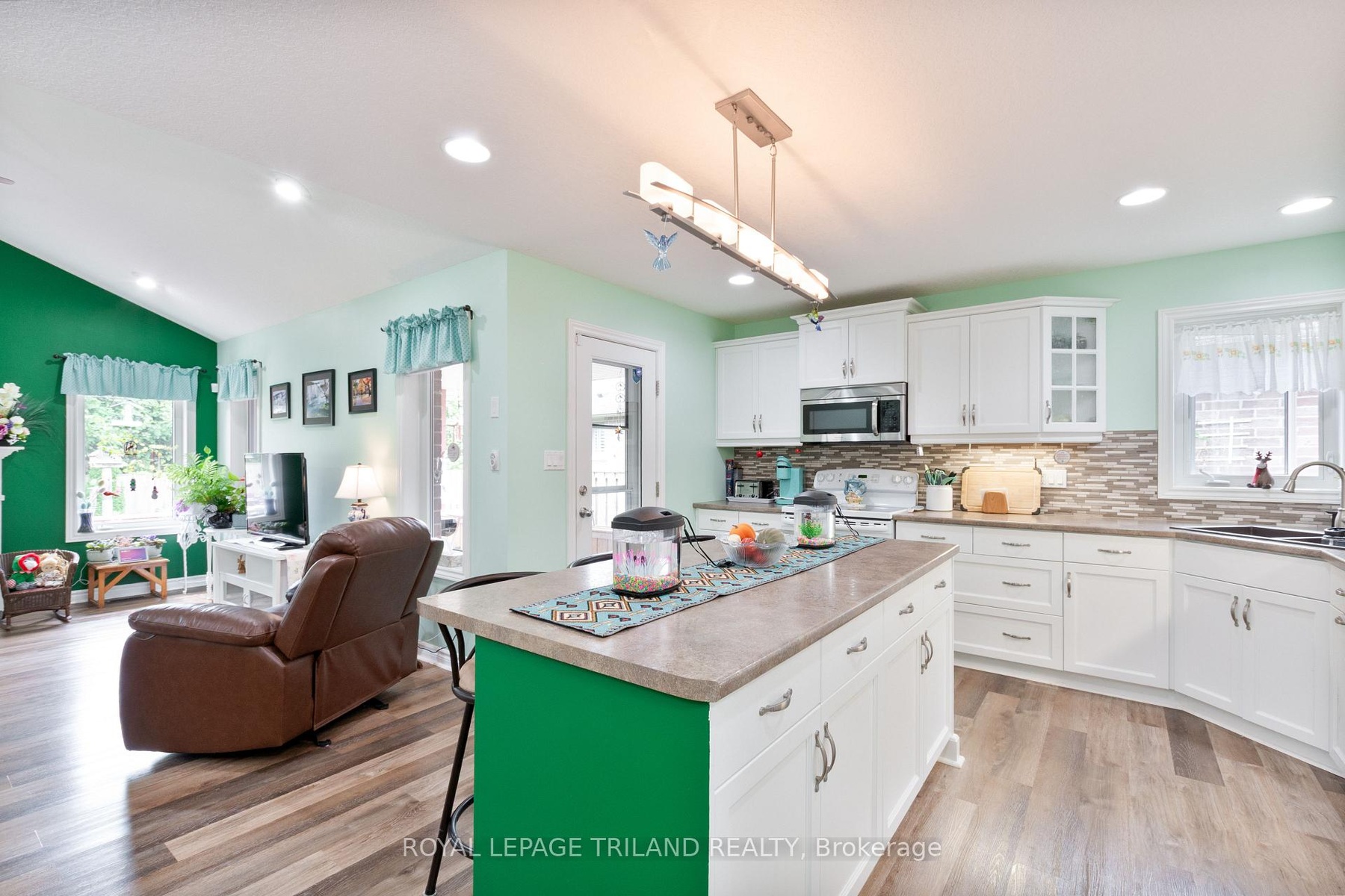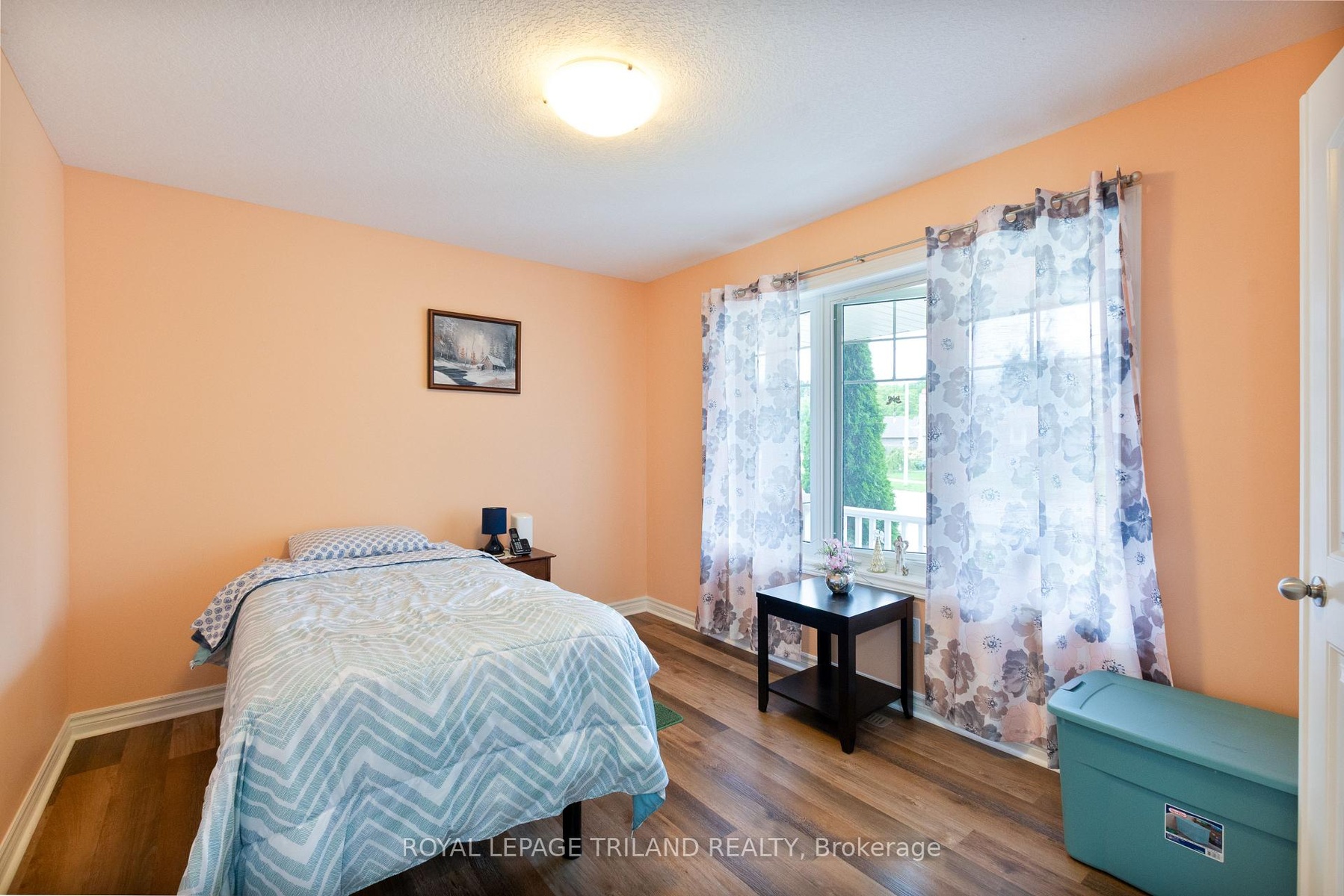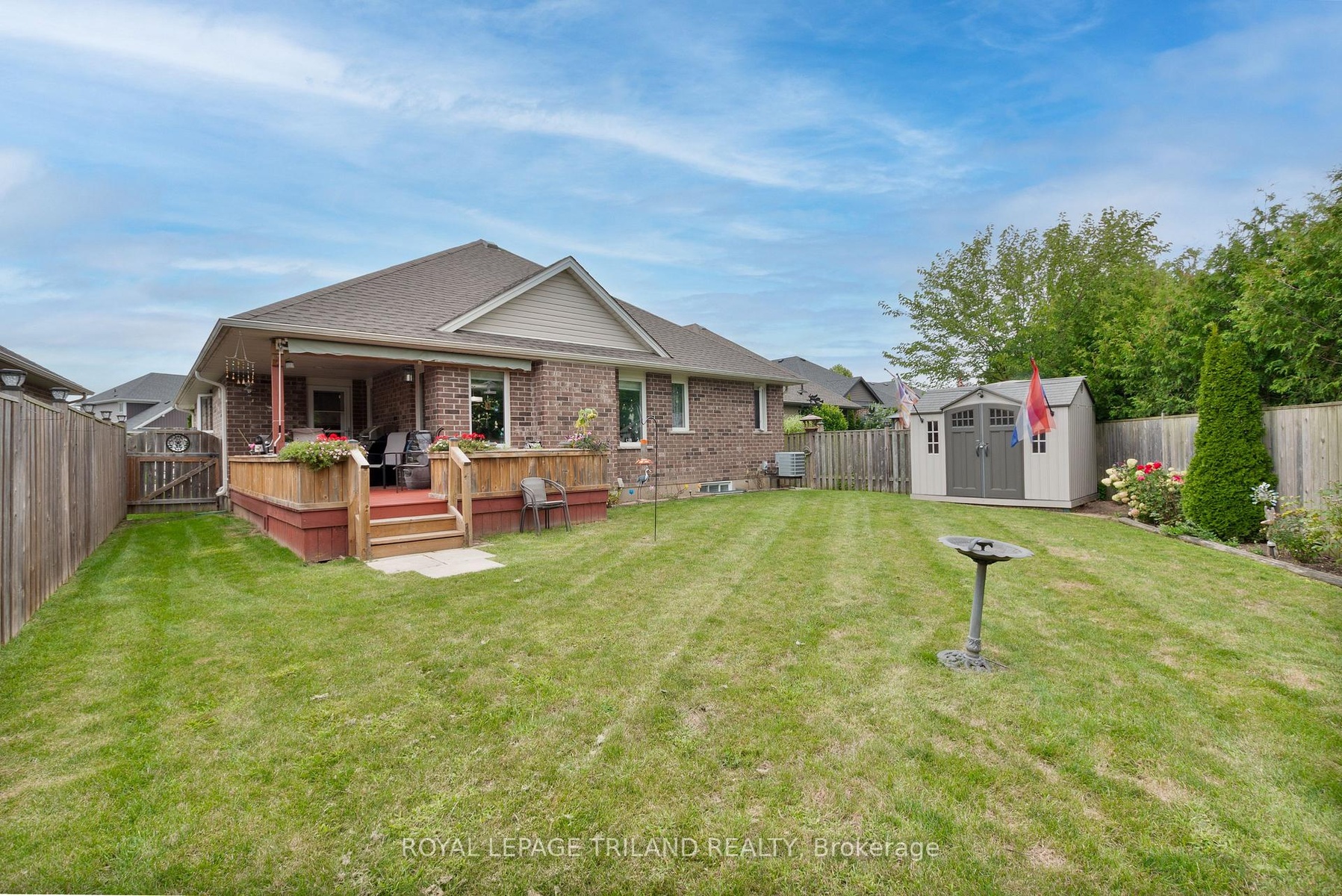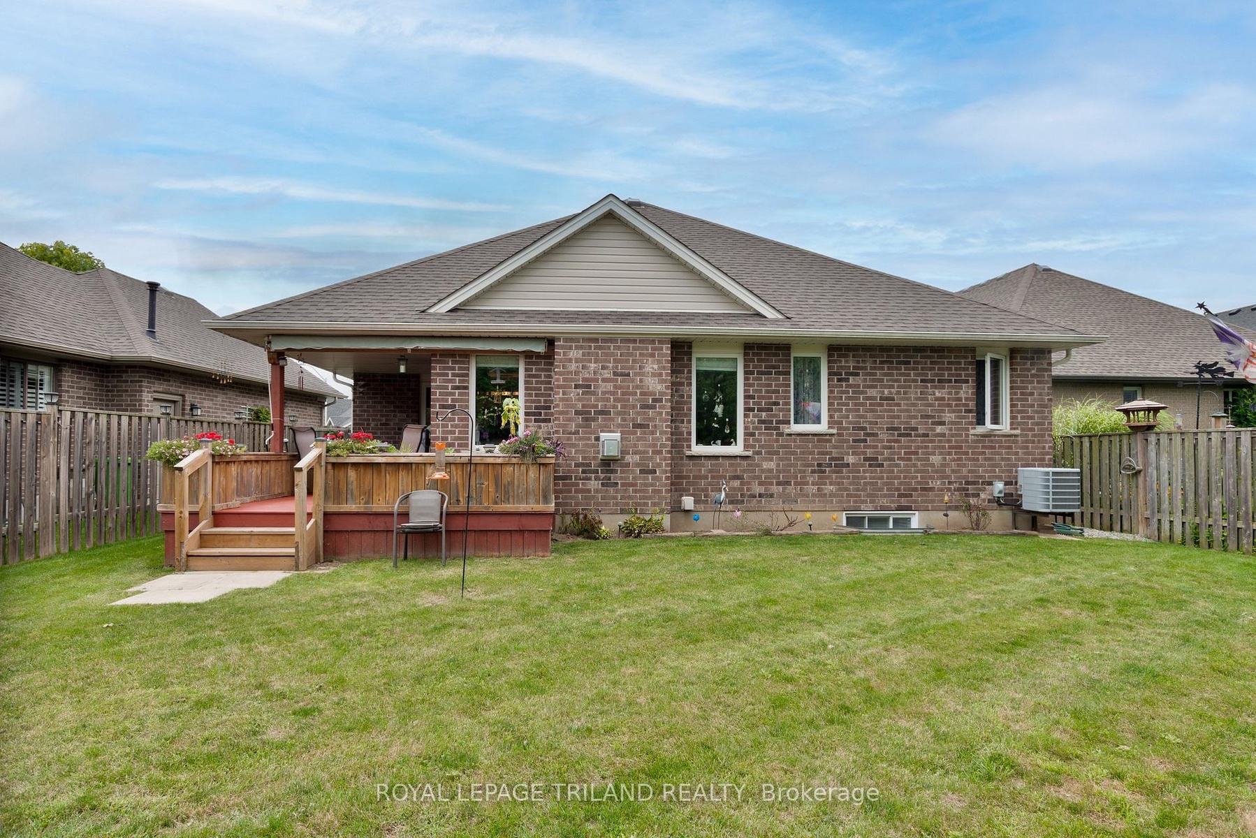 Welcome to this wonderful 3 Bedroom, 3 Full Bathroom bungalow in the north end of St. Thomas. This home has a private double wide driveway with an attached double car garage. Walking into the home from the covered porch is the wide foyer with coat closet and entrance to the garage. Off the foyer through the double wide doors is a bedroom. Close to the bedroom is a 4 pc bath, convenient for guests. Off to the open concept kitchen is a space for the dining table. The kitchen has newer cabinets, an island, lots of counter space with tiled backsplash as well as an over the range microwave and dishwasher. The living room features a vaulted ceiling and gas fireplace. Newer flooring throughout the main floor. A door off the kitchen leads to a partially covered deck, great for the BBQ. The deck then extends to the private fully fenced yard that includes a shed. The primary bedroom which is big enough for a king sized bed has a walk-in closet and an ensuite bath with walk-in tub. Also on the main floor is a convenient laundry room with an extra sink. Going down to the full sized basement there is a professionally finished rec-room, bedroom and 4 pc bath. That just covers some of the lower level. There's lots of room to add another bedroom, office or gym. Other features of the home include central vac, a sump pump, fresh paint throughout and stained deck. The location is close to 1 password park and provides easy access to London and the 401. Have a look today!