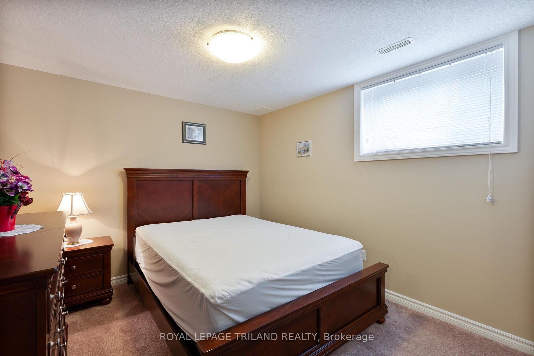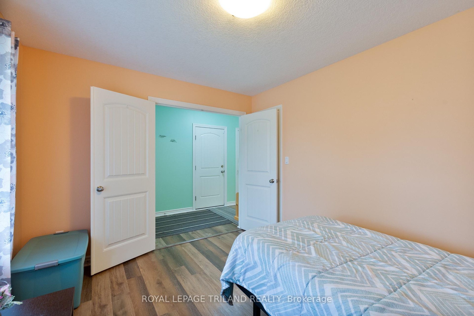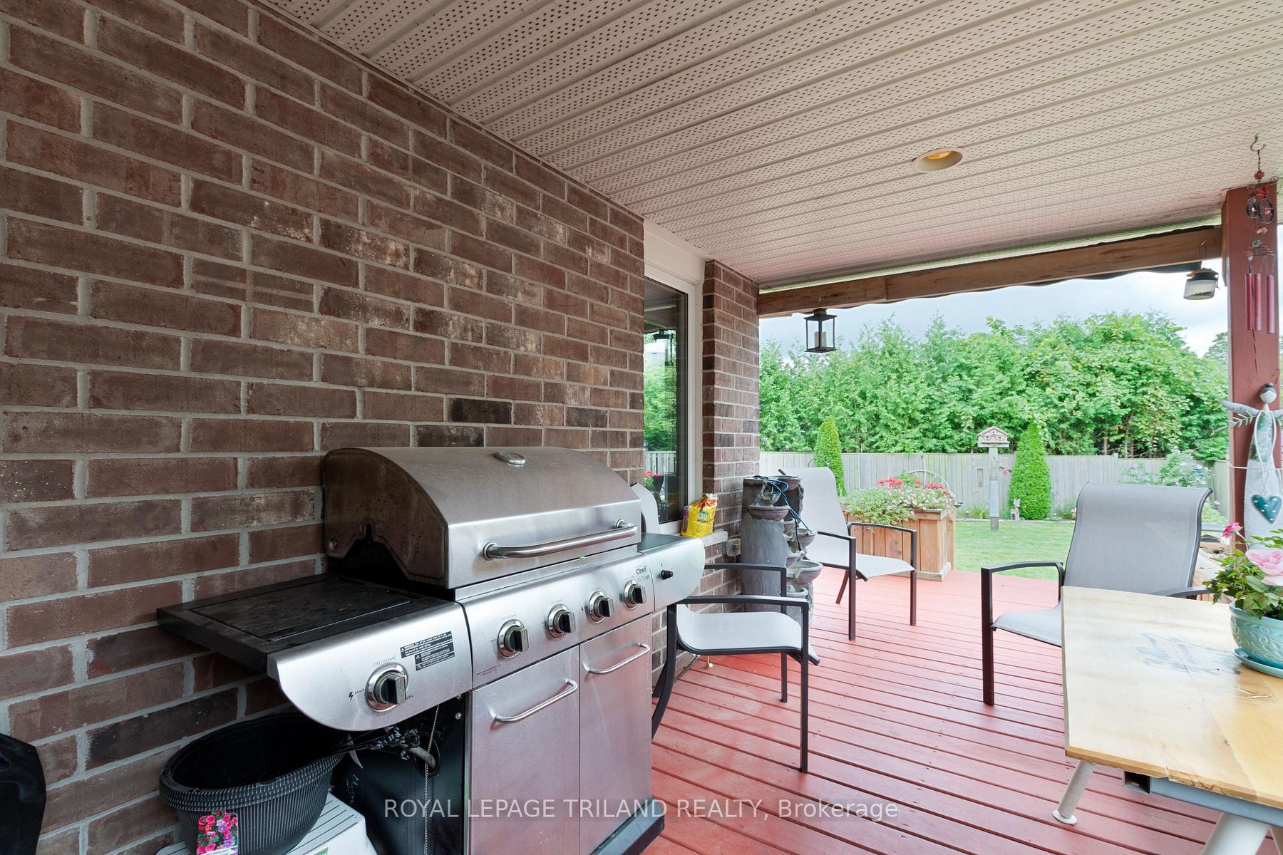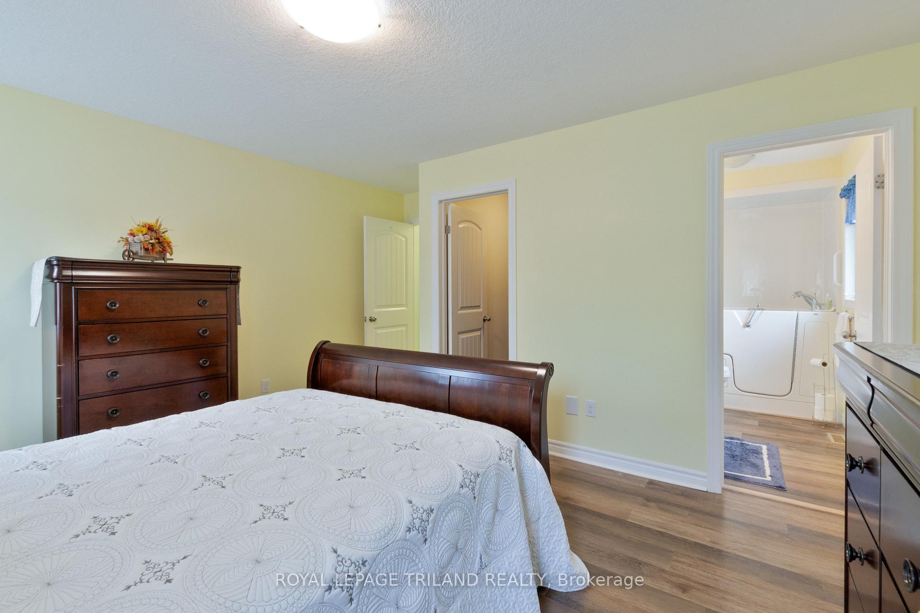 Welcome to this wonderful 3 Bedroom, 3 Full Bathroom bungalow in the north end of St. Thomas. This home has a private double wide driveway with an attached double car garage. Walking into the home from the covered porch is the wide foyer with coat closet and entrance to the garage. Off the foyer through the double wide doors is a bedroom. Close to the bedroom is a 4 pc bath, convenient for guests. Off to the open concept kitchen is a space for the dining table. The kitchen has newer cabinets, an island, lots of counter space with tiled backsplash as well as an over the range microwave and dishwasher. The living room features a vaulted ceiling and gas fireplace. Newer flooring throughout the main floor. A door off the kitchen leads to a partially covered deck, great for the BBQ. The deck then extends to the private fully fenced yard that includes a shed. The primary bedroom which is big enough for a king sized bed has a walk-in closet and an ensuite bath with walk-in tub. Also on the main floor is a convenient laundry room with an extra sink. Going down to the full sized basement there is a professionally finished rec-room, bedroom and 4 pc bath. That just covers some of the lower level. There's lots of room to add another bedroom, office or gym. Other features of the home include central vac, a sump pump, fresh paint throughout and stained deck. The location is close to 1 password park and provides easy access to London and the 401. Have a look today!