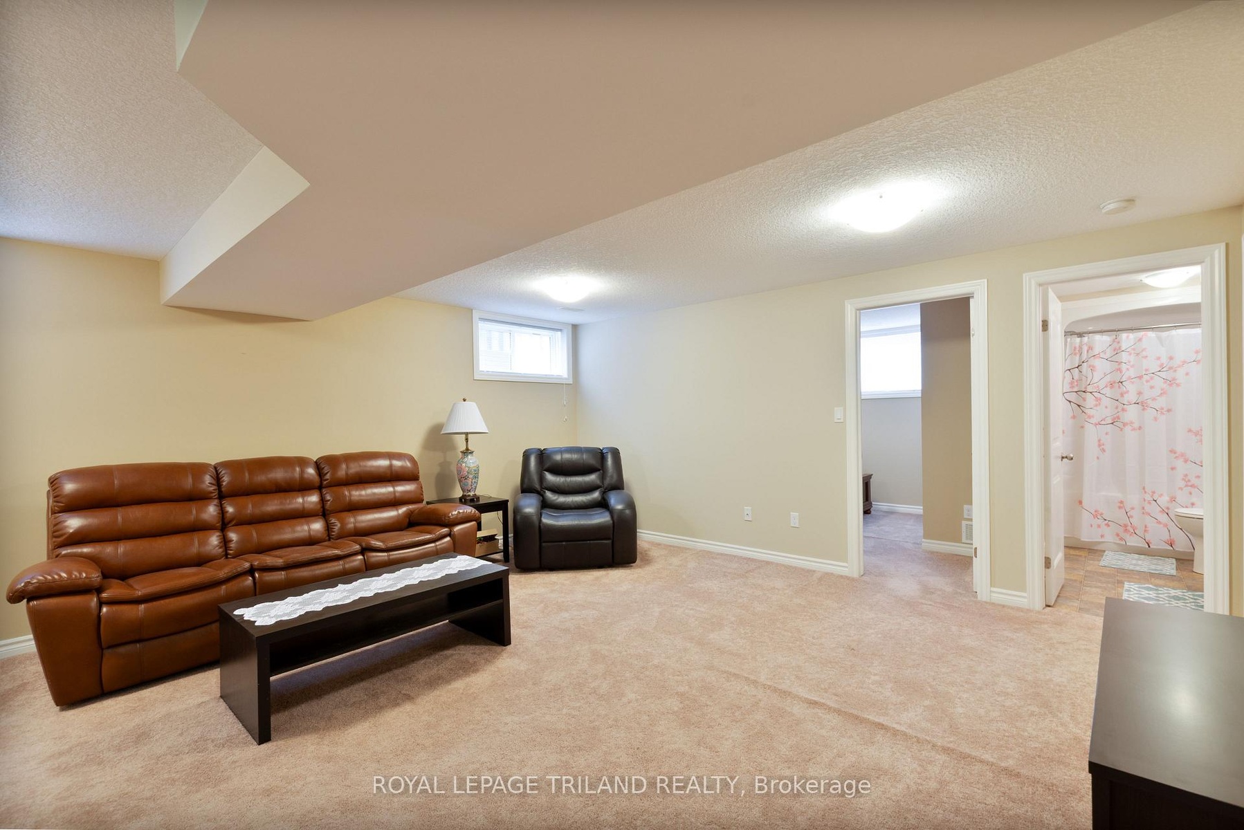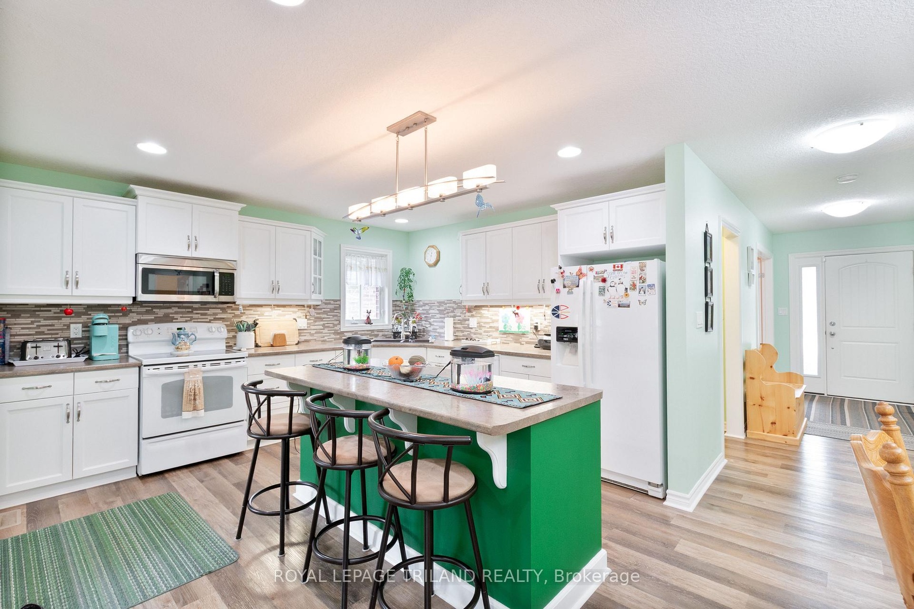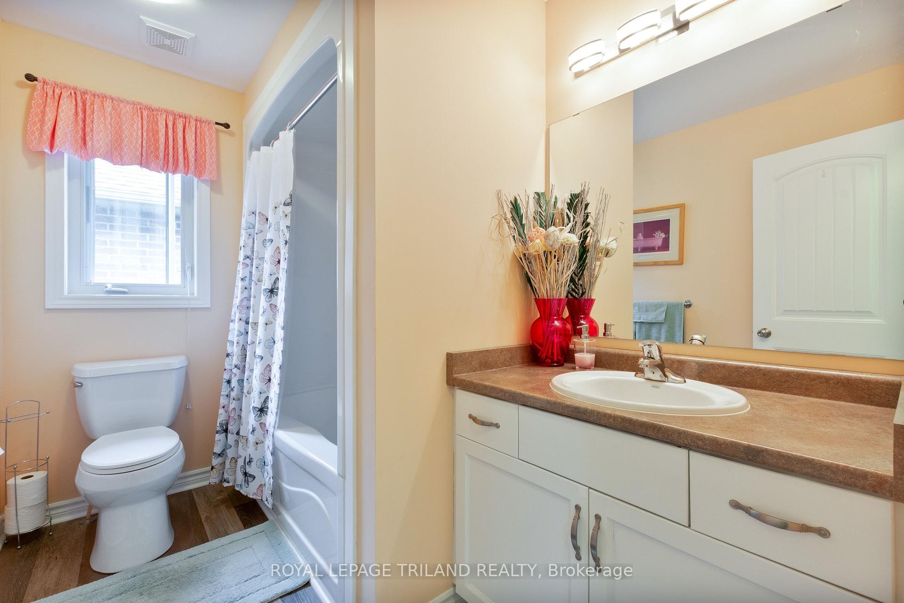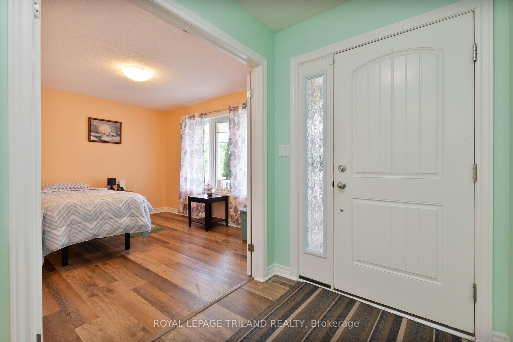 Welcome to this wonderful 3 Bedroom, 3 Full Bathroom bungalow in the north end of St. Thomas. This home has a private double wide driveway with an attached double car garage. Walking into the home from the covered porch is the wide foyer with coat closet and entrance to the garage. Off the foyer through the double wide doors is a bedroom. Close to the bedroom is a 4 pc bath, convenient for guests. Off to the open concept kitchen is a space for the dining table. The kitchen has newer cabinets, an island, lots of counter space with tiled backsplash as well as an over the range microwave and dishwasher. The living room features a vaulted ceiling and gas fireplace. Newer flooring throughout the main floor. A door off the kitchen leads to a partially covered deck, great for the BBQ. The deck then extends to the private fully fenced yard that includes a shed. The primary bedroom which is big enough for a king sized bed has a walk-in closet and an ensuite bath with walk-in tub. Also on the main floor is a convenient laundry room with an extra sink. Going down to the full sized basement there is a professionally finished rec-room, bedroom and 4 pc bath. That just covers some of the lower level. There's lots of room to add another bedroom, office or gym. Other features of the home include central vac, a sump pump, fresh paint throughout and stained deck. The location is close to 1 password park and provides easy access to London and the 401. Have a look today!