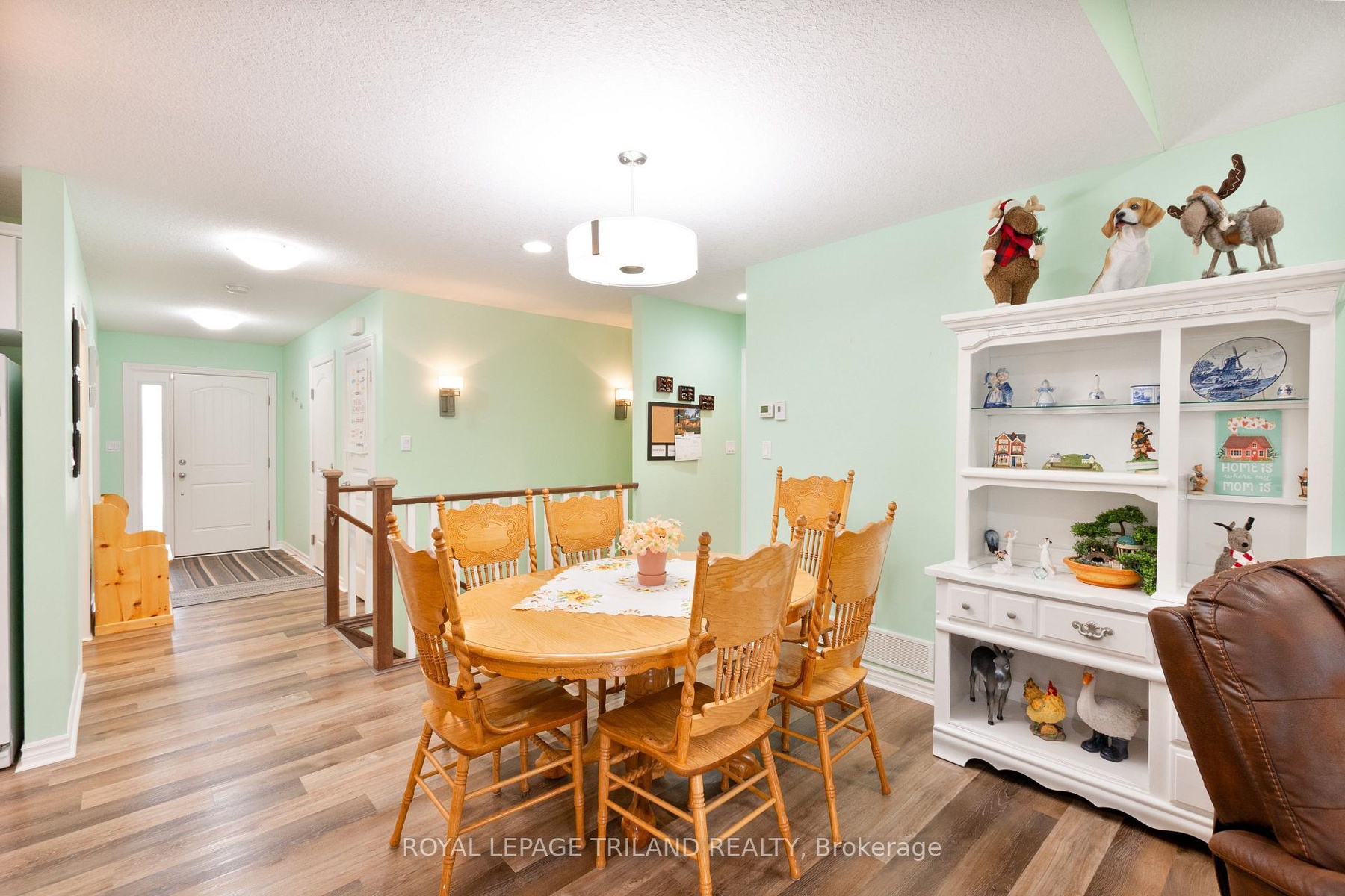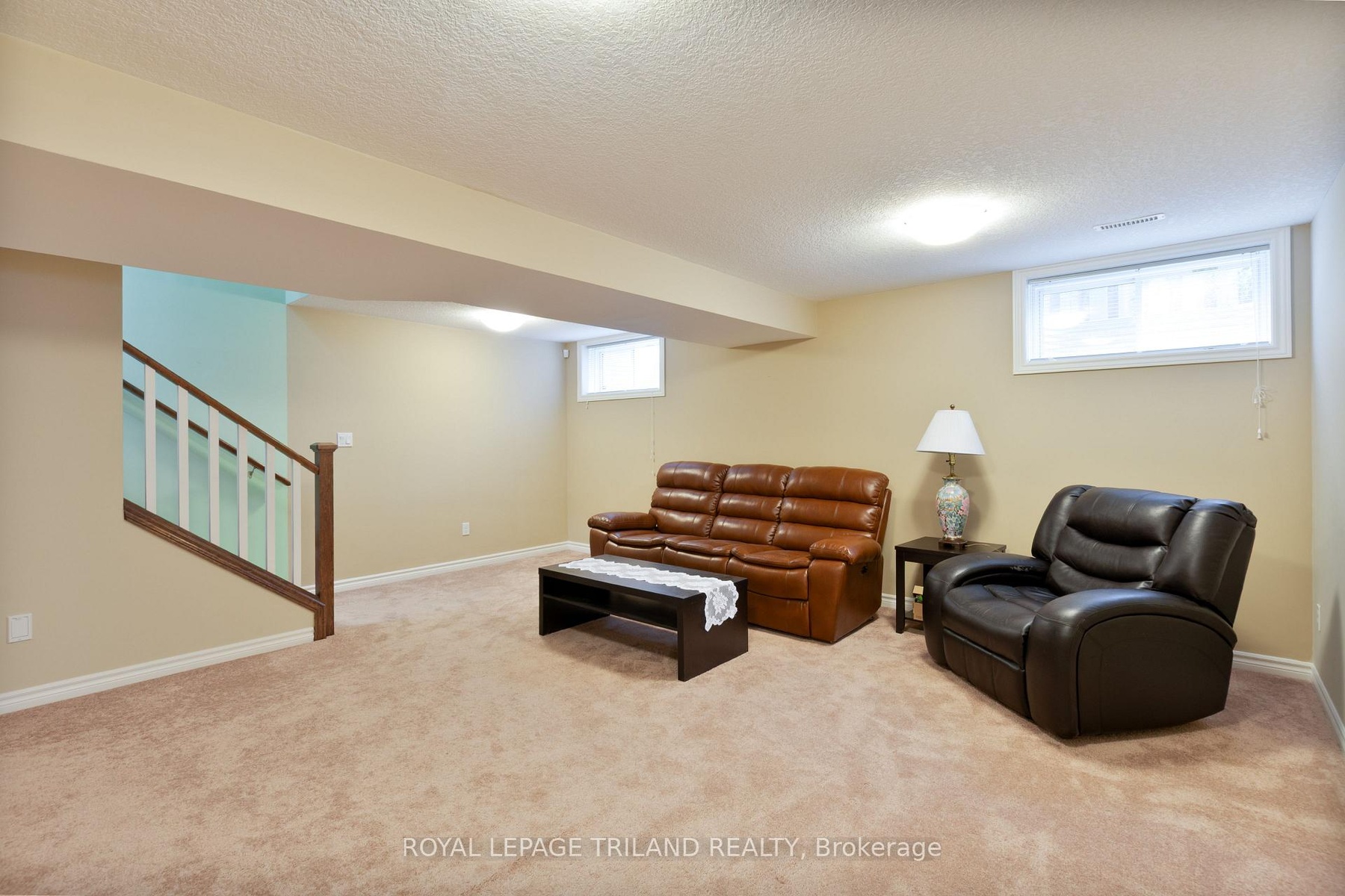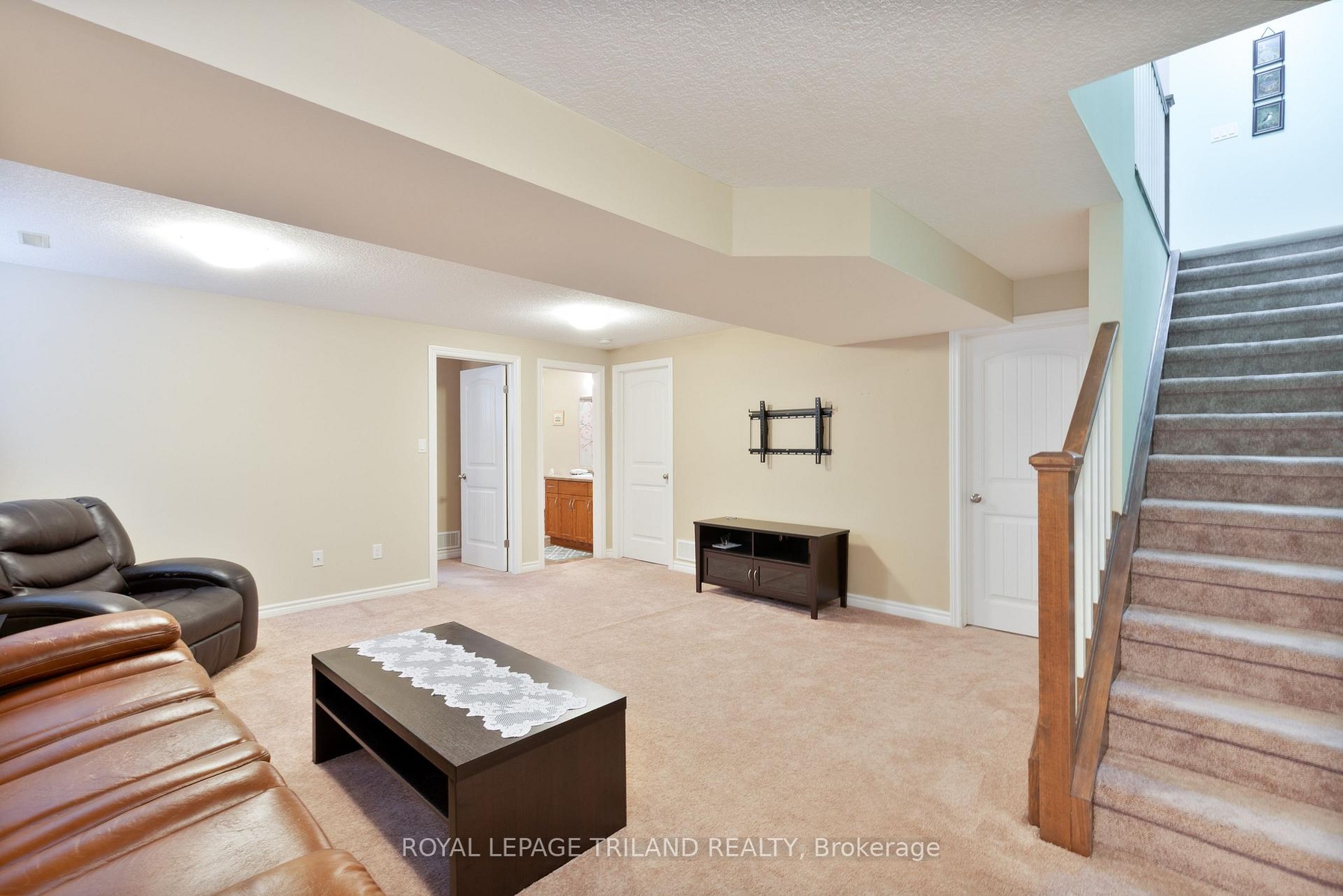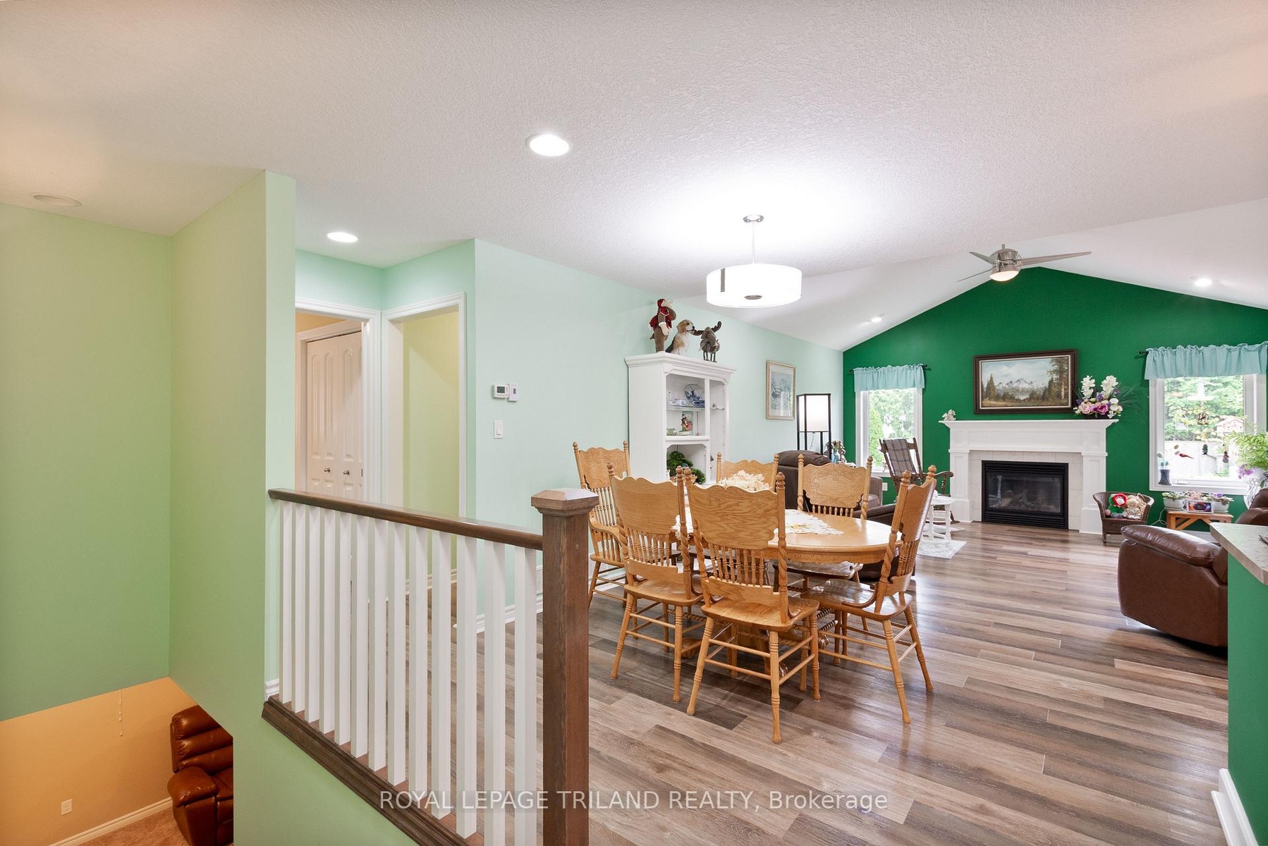 Welcome to this wonderful 3 Bedroom, 3 Full Bathroom bungalow in the north end of St. Thomas. This home has a private double wide driveway with an attached double car garage. Walking into the home from the covered porch is the wide foyer with coat closet and entrance to the garage. Off the foyer through the double wide doors is a bedroom. Close to the bedroom is a 4 pc bath, convenient for guests. Off to the open concept kitchen is a space for the dining table. The kitchen has newer cabinets, an island, lots of counter space with tiled backsplash as well as an over the range microwave and dishwasher. The living room features a vaulted ceiling and gas fireplace. Newer flooring throughout the main floor. A door off the kitchen leads to a partially covered deck, great for the BBQ. The deck then extends to the private fully fenced yard that includes a shed. The primary bedroom which is big enough for a king sized bed has a walk-in closet and an ensuite bath with walk-in tub. Also on the main floor is a convenient laundry room with an extra sink. Going down to the full sized basement there is a professionally finished rec-room, bedroom and 4 pc bath. That just covers some of the lower level. There's lots of room to add another bedroom, office or gym. Other features of the home include central vac, a sump pump, fresh paint throughout and stained deck. The location is close to 1 password park and provides easy access to London and the 401. Have a look today!