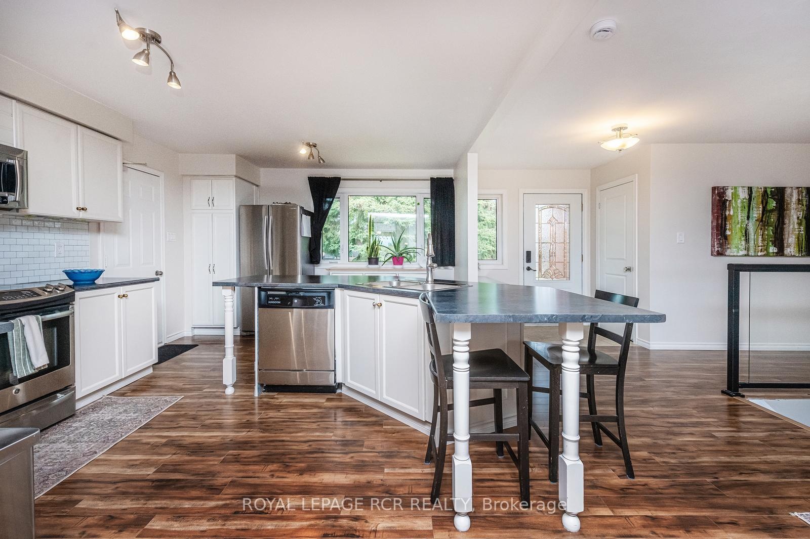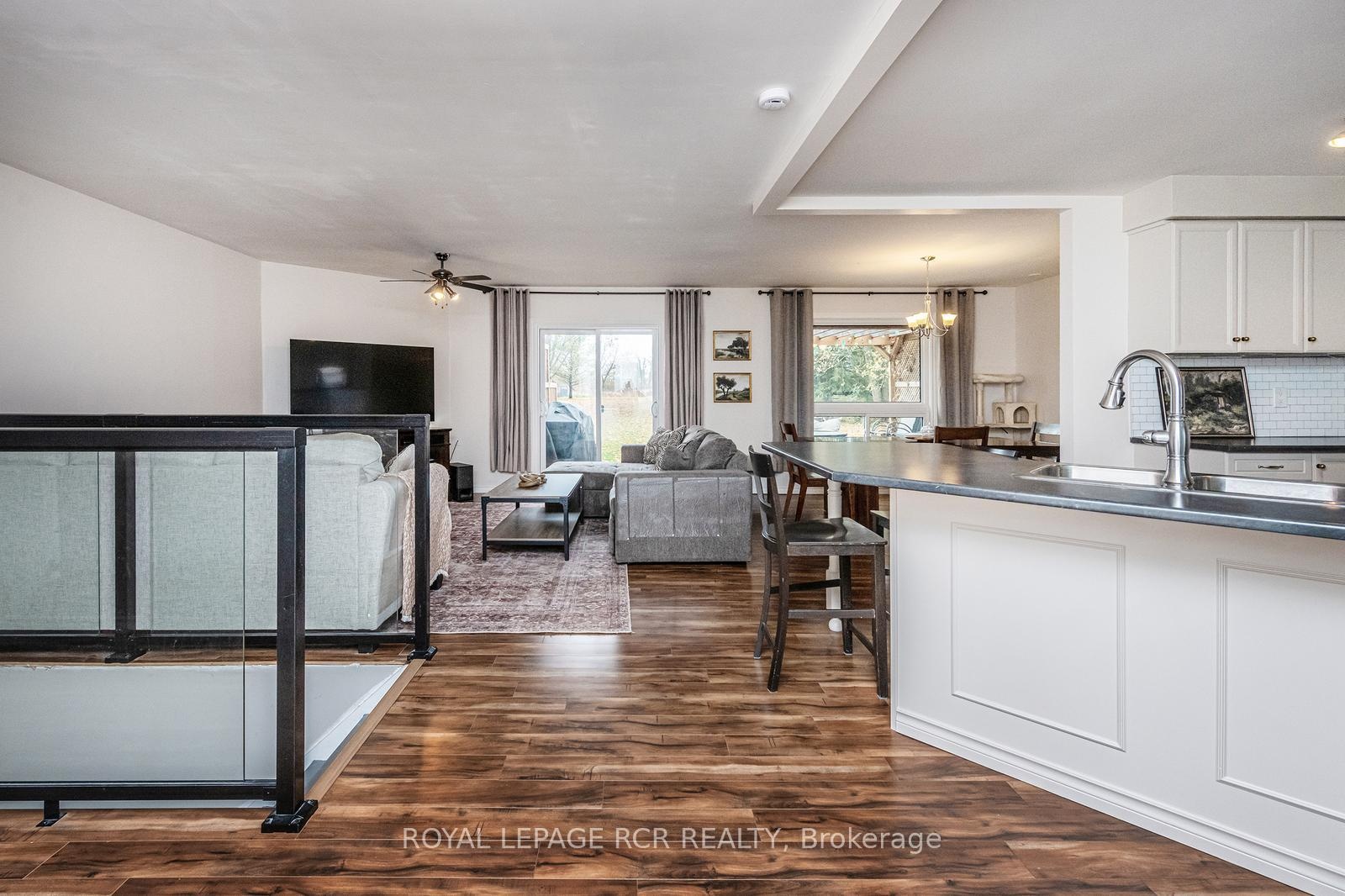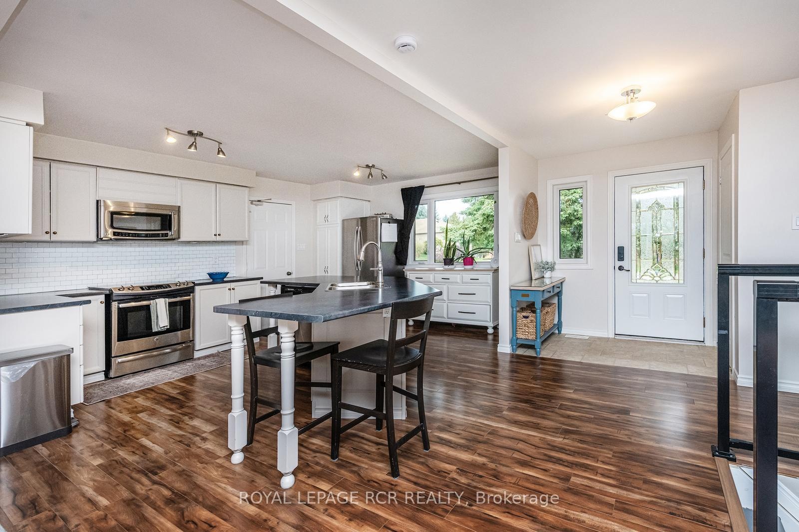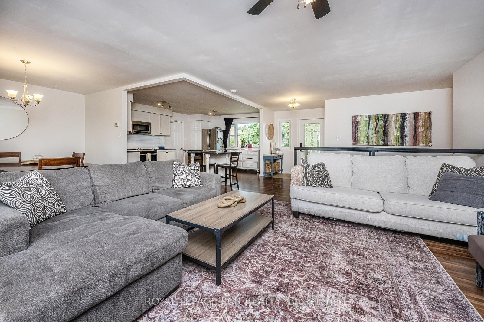 Welcome Home! This warm and inviting home has been thoughtfully updated and designed with family living in mind. Located in a friendly, family-centred community just minutes from all the great amenities of Orangeville, it's the kind of place where you'll instantly feel at home. The open-concept kitchen is truly the heart of the home, featuring new countertops, a spacious island, and a breakfast bar-perfect for gathering, cooking, and connecting. Throughout the home, new interior doors and hardware add a fresh, modern feel. Enjoy your morning coffee on the welcoming front veranda, or relax on the back deck as the afternoon and evening sun fill the yard. The primary bedroom offers a peaceful retreat with a walk-in closet and 4-piece ensuite, while two additional bedrooms provide comfortable space for family or guests. Downstairs, the partially finished basement adds even more room to spread out-featuring a large bedroom, flexible areas for games and a family room, a bright alcove ideal for an office space, and there is plenty of room left for storage. This home also offers, 200-amp hydro with a 100-amp pony panel in the heated garage with new LED Lighting, and lots of room for hobbies or projects. This is a home that's been cared for and loved-ready for its next family to move in and make new memories. Roof 2020, Windows 2020, Trough Fascia & Capping 2020, Water Softener 2021, Fridge, Stove, Washer 2019, Furnace 2016. Driveway 2024. Septic last pumped September 2024.