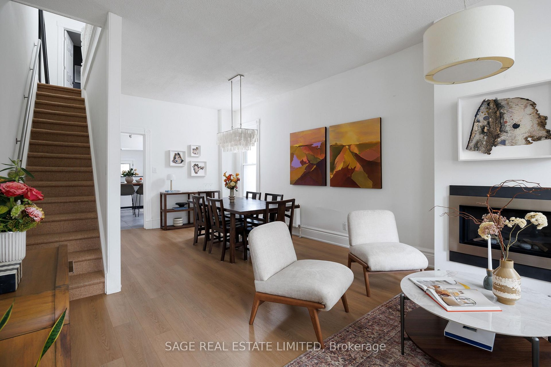 Tucked on one of Beaconsfield Village's most beautiful & peaceful stretches, bookended by a one-way off Dundas W & Afton before extending to Queen W, 224 Lisgar sits beneath a canopy of mature maples on a street lined with storied façades. Past the black wrought-iron gate & lush front landscaping, a storybook exterior opens to a charming vestibule with original stained glass & century detailing intact, setting the tone for what's inside: a calm blend of heritage & modern design. Hickory engineered floors run underfoot, layered with a designer vinyl overlay to protect against pet claws, toy trucks, dinner parties & everyday life in between. Ten-foot ceilings & end-of-row positioning bring in extra light along the north wall, shaping a space that feels rooted. The dining room welcomes a full table of guests with ease while the living area invites you to linger by the fire long after dinner ends. The home's tankless Navien system offers efficient, consistent & whisper-quiet comfort, circulating warm water through radiators for even heat that feels soft & natural while improving air quality & reducing energy use. A beautifully renovated kitchen follows with caesarstone counters, smart storage, a gas stove-top, built-in oven & an airy overlook to the sunken family room. Beyond, double doors open to a private low-maintenance backyard perfect for entertaining or unwinding. Upstairs, three bedrooms merge period charm with contemporary ease with tall baseboards, original hardware & a bright modern four-piece bath offering every comfort their 1900's counterparts could only dream of. The lower level offers a third living space ideal for movie nights or quiet reflection after a wellness ritual in your own spa zone. Complete with a sauna & steam shower, this is where you restore balance, boost circulation & melt away the day's stress. For those drawn to spaces with history & intention, this home offers architectural charm, modern ease & a perfect West Queen West location.