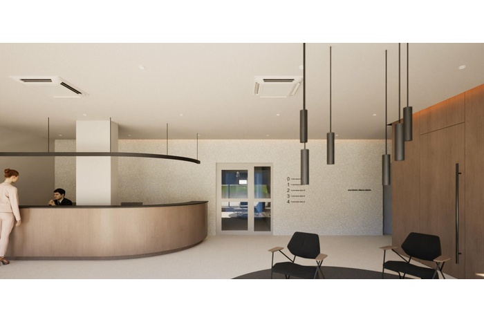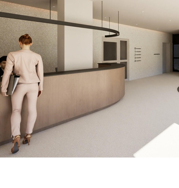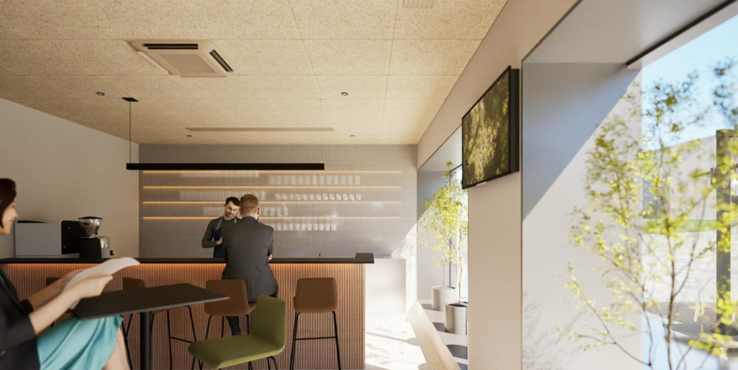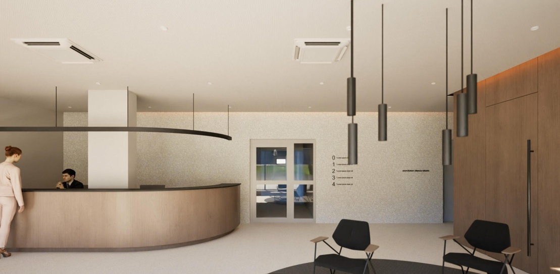 The building is equipped with a Schindler elevator, access control system, and video surveillance. There are 56 parking spaces available – both outdoor and underground garage options. The elegant reception area creates a professional first impression, while a modern café with an outdoor terrace in the ground floor provides a perfect spot for breaks, informal meetings, or business gatherings.