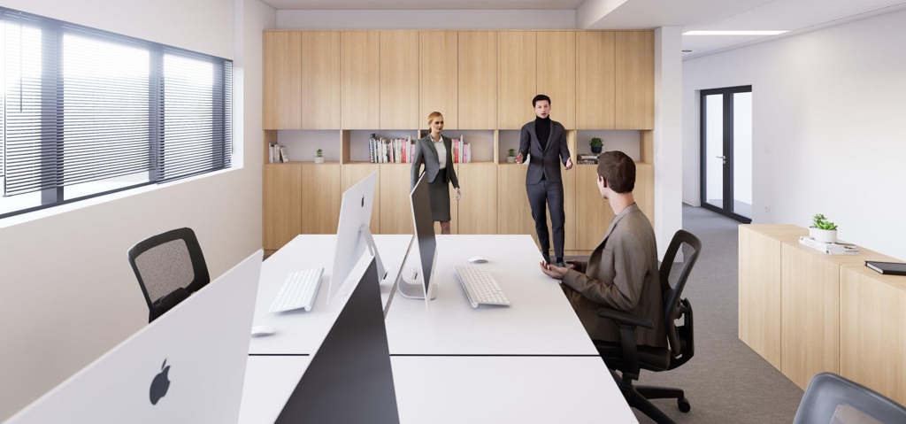 The building spans five floors and has been designed to meet the demands of modern companies. All spaces are bright, modular, and easily adaptable, suitable for open-space concepts or individual offices with optional glass partitions.