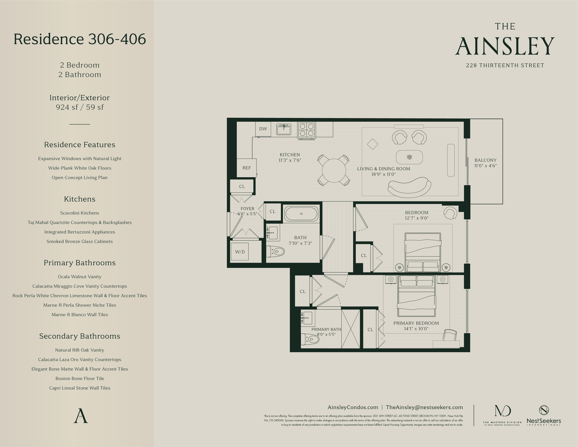Introducing Residence 406 at The Ainsley, a brand-new spacious and sophisticated 2-bedroom, 2-bathroom home that combines modern luxury with outdoor living. Spanning 942 square feet, this residence features a generous layout, private outdoor space, and pet grooming room, making it perfect for both entertaining and everyday living.