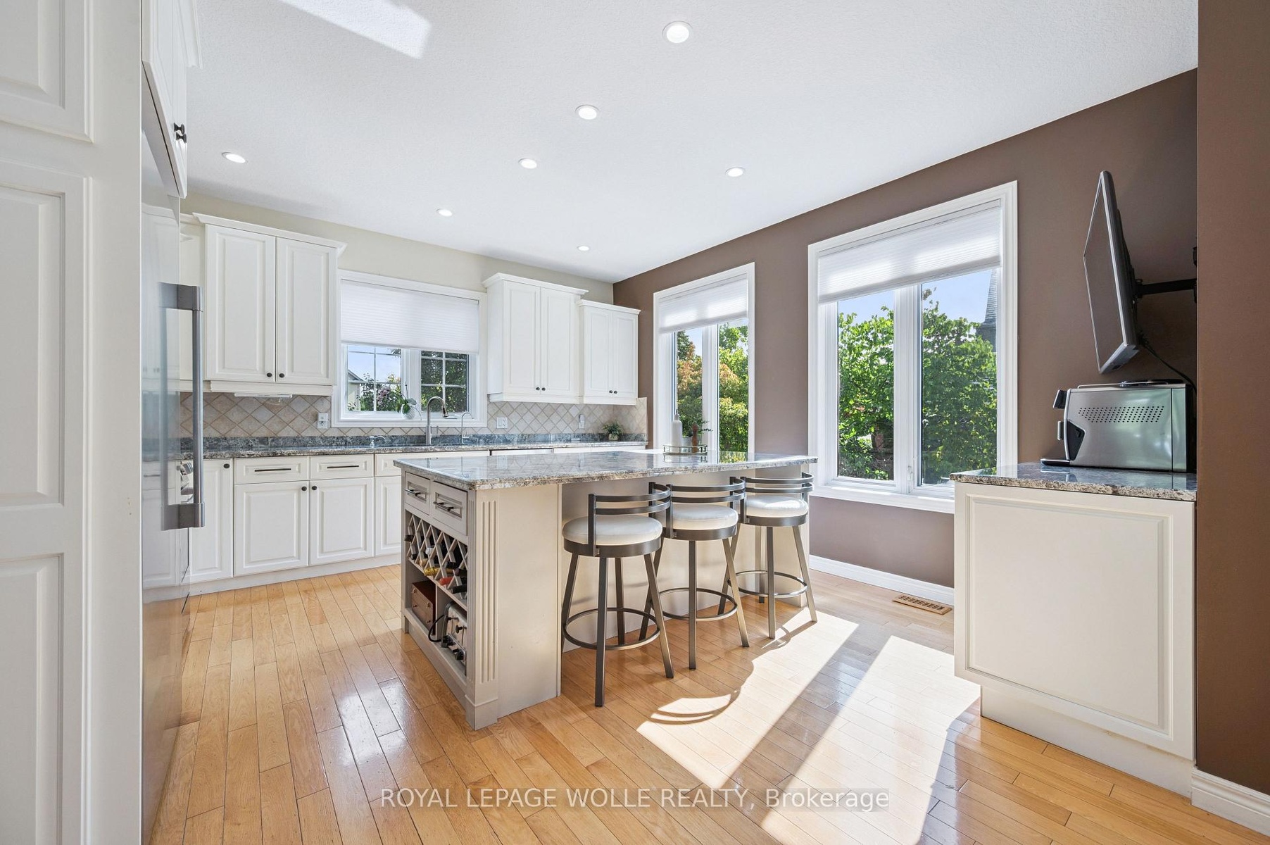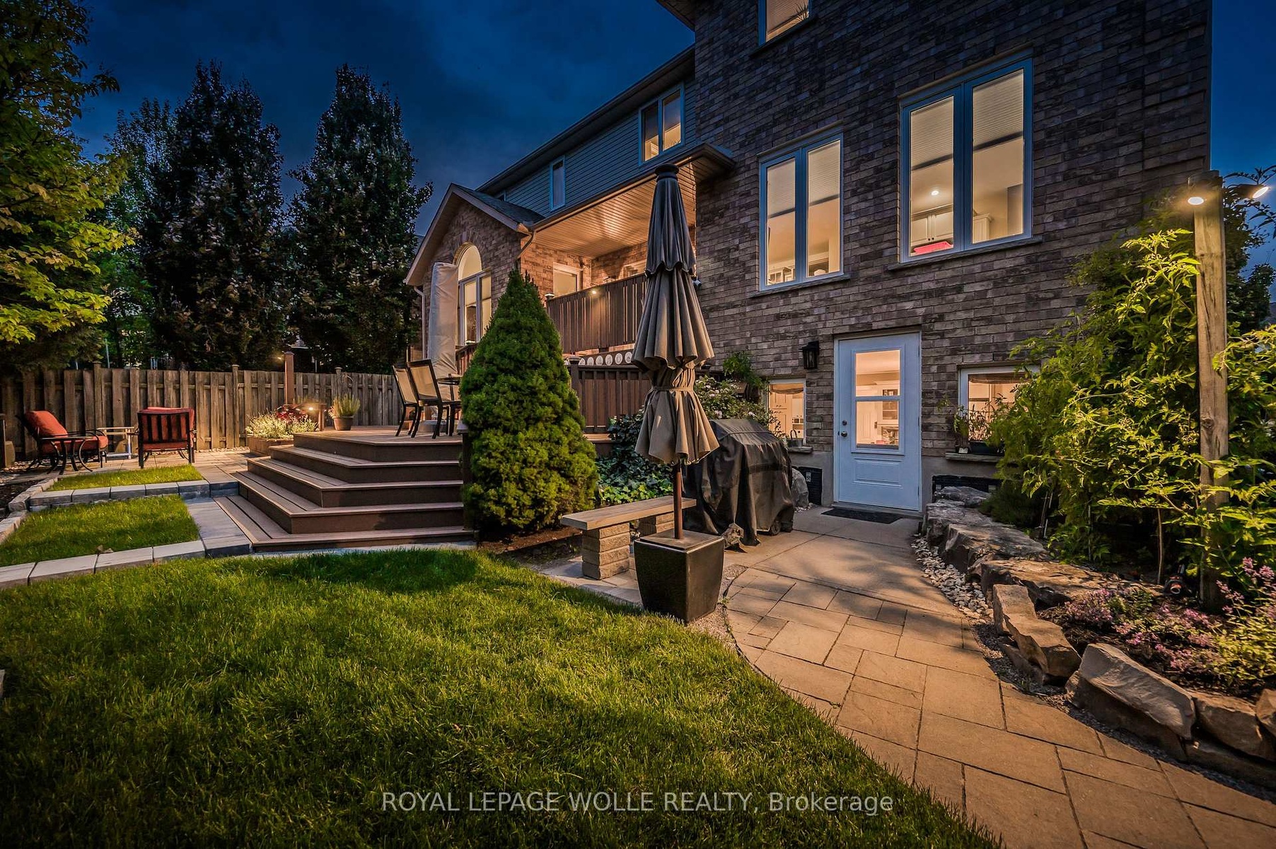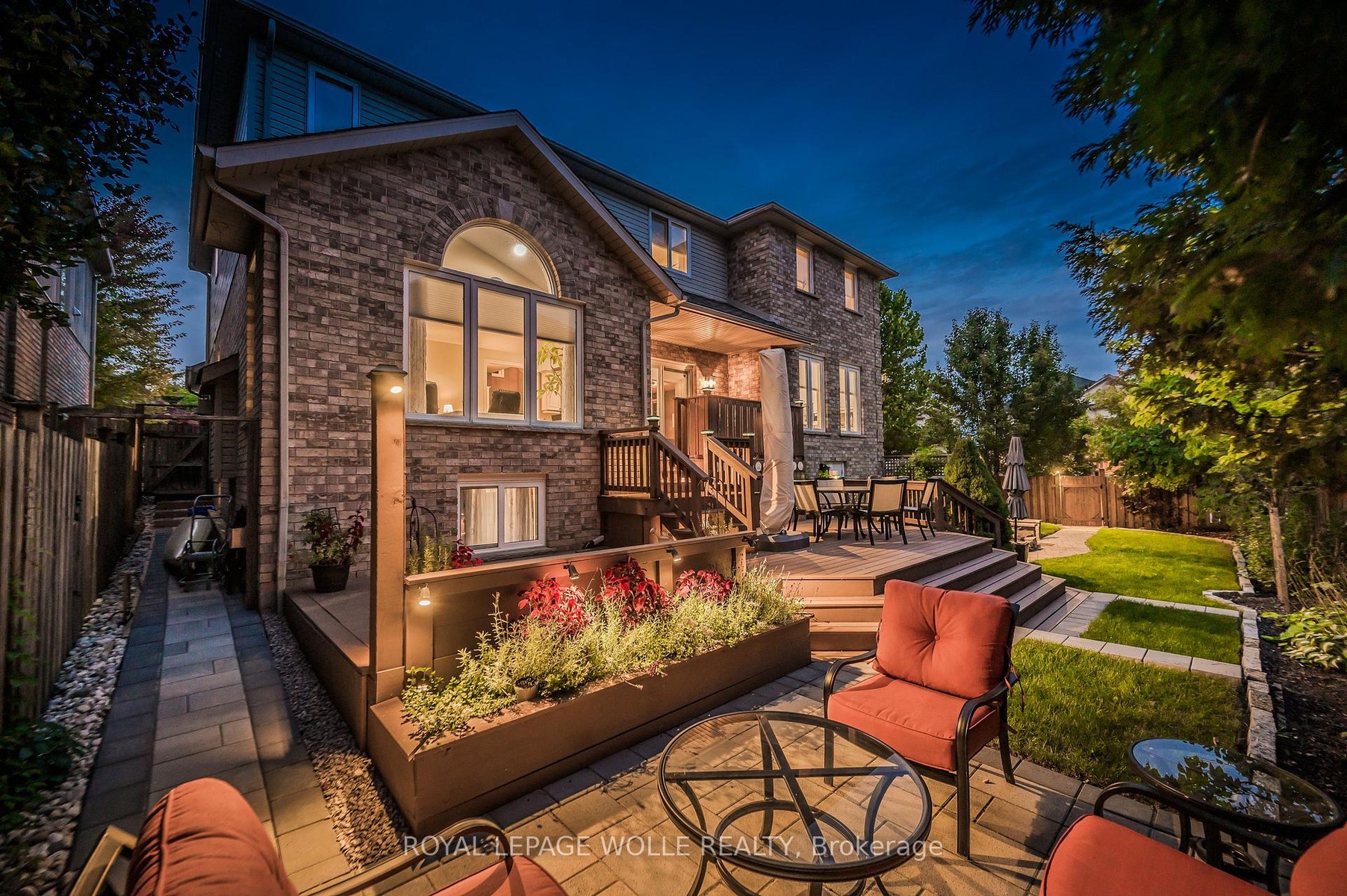 Nestled within the prestigious and HIGHLY SOUGHT-AFTER LAURELWOOD NEIGHBOURHOOD of Waterloo, this extraordinary custom-built residence by "Grau" Homes presents a rare opportunity for luxurious living that includes a completely separate in-law suite. Set upon a MAGNIFICENT, PRIVATE PREMIUM LOT, the home is a masterpiece of superior engineering and design, featuring robust 2' x 6' construction and soaring 9-foot ceilings. Step through the covered porch into a BREATHTAKING TWO-STORY FOYER, where a stately SOLID WOOD staircase with elegant railings beckons you inside. Sunlight pours through expansive windows, illuminating the formal living and dining rooms with delightful views. The heart of the home is a chef's DREAM KITCHEN, SHOWCASING CUSTOM CABINETRY, a sleek stainless vent hood, GRANITE COUNTERTOPS, extended cabinetry with desk nook, standup freezer, and tumbled marble backsplash. A sprawling center island overlooks the sun-drenched dinette and family room, where a COZY GAS FIREPLACE and walls of windows frame the backyard oasis. Sliders open to an impressive two-tier composite deck with lighting and a serene stone patio. Upstairs, RICH HARDWOOD FLOORING leads to the private quarters. The generous primary suite features FLEXIBLE SPACE for an office or nursery, a walk-in closet, and a lavish five-piece ensuite with jetted tub and shower. Three additional bedrooms and second-floor laundry complete this level. The PROFESSIONALLY FINISHED LOWER LEVEL unveils a self-contained in-law suite with full kitchen, spacious living room with gas fireplace, dining area, bedroom, and four-piece bathroom with separate laundry. A walkout leads to a NEW STONE PATIO and private BBQ area with retaining walls and ambient lighting. Beyond the home, enjoy a DOUBLE CAR GARAGE, CONCRETE DRIVEWAY, landscaped grounds, and paver walkway. Embrace the LAURELWOOD LIFESTYLE WITH TOP-RATED SCHOOLS, serene trails, parks, and upscale shopping just moments away.