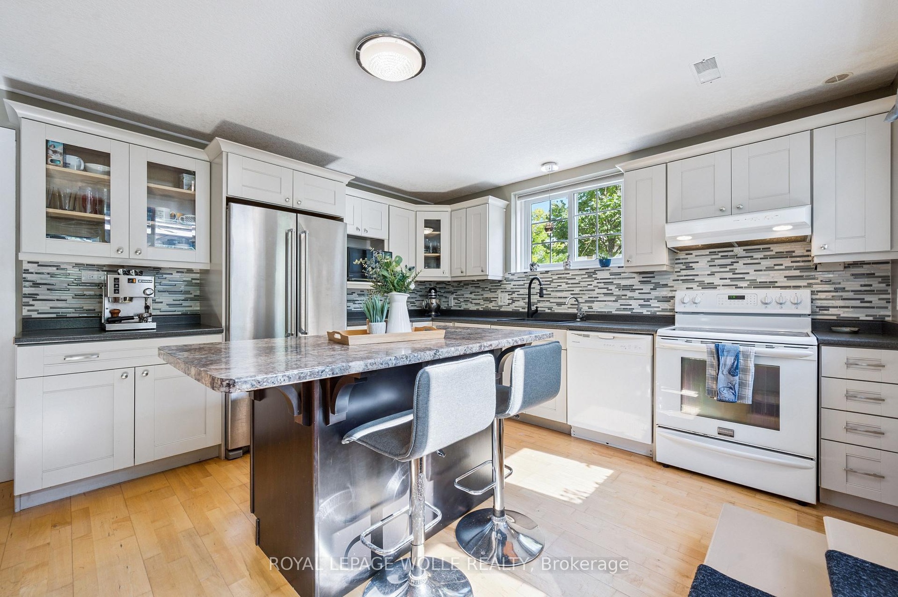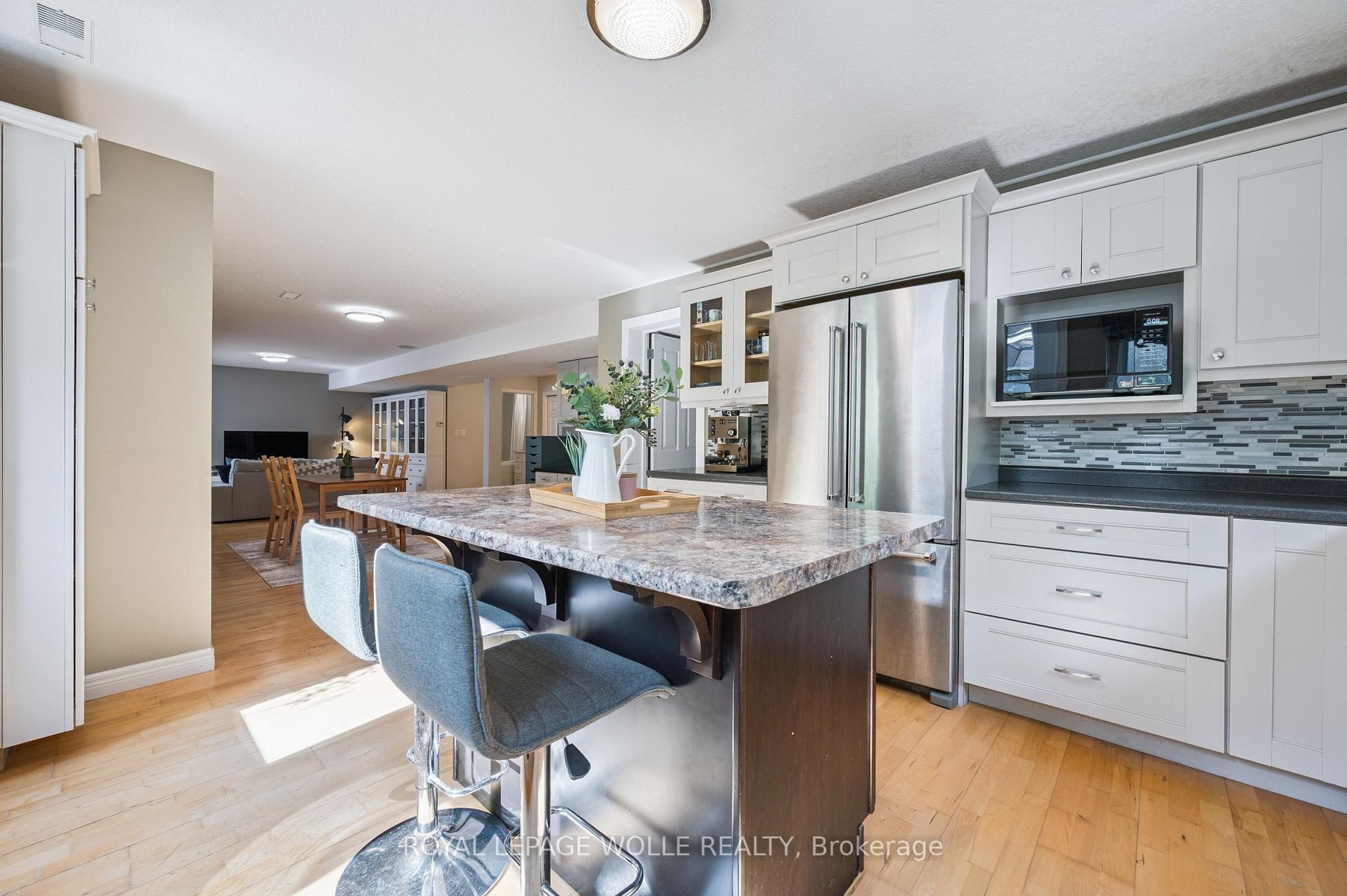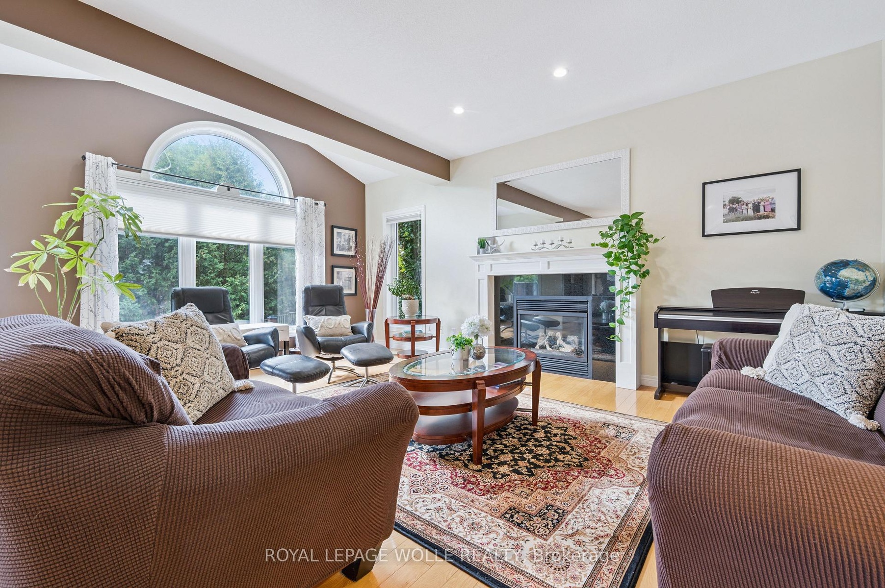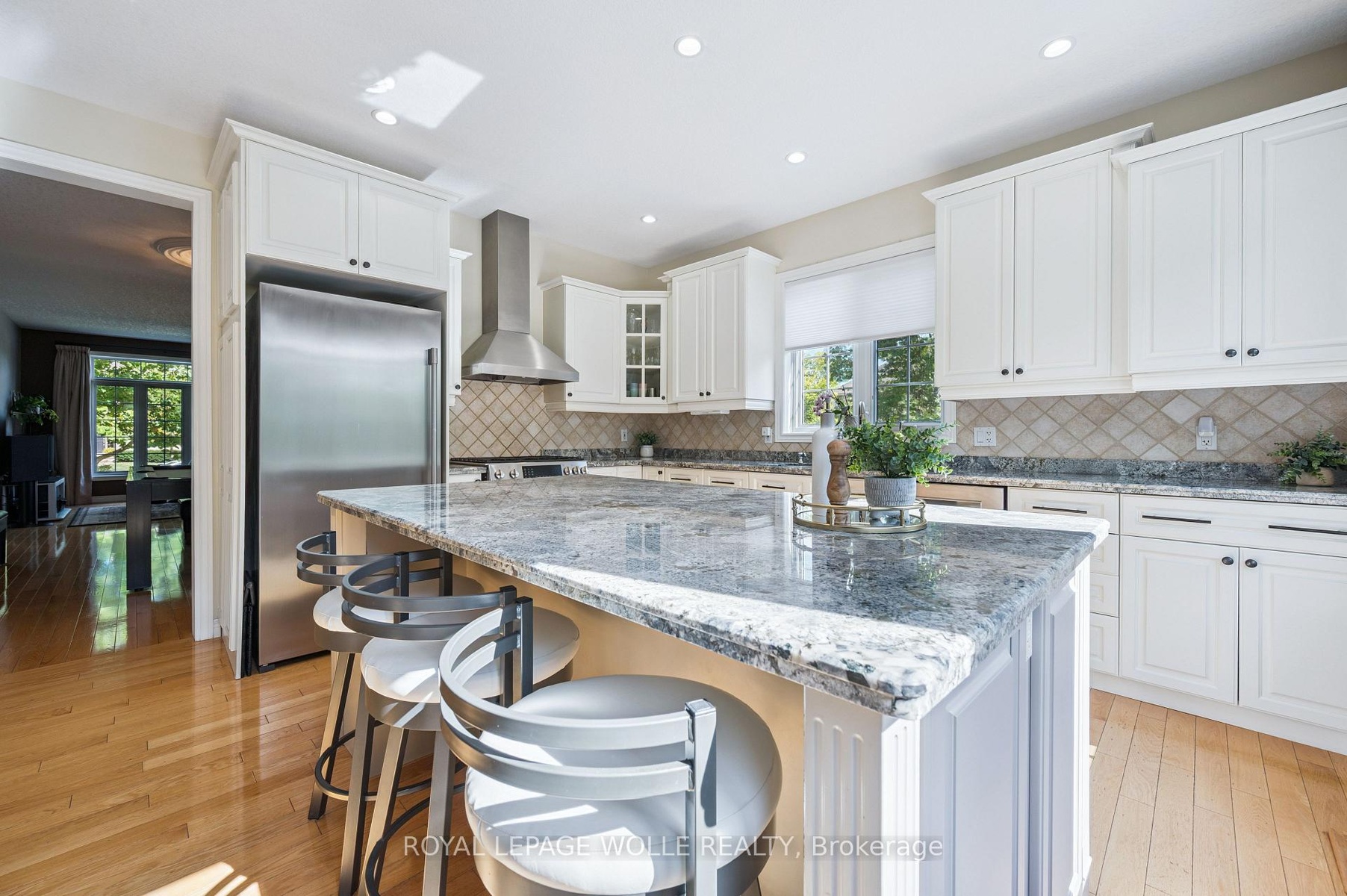 Nestled within the prestigious and HIGHLY SOUGHT-AFTER LAURELWOOD NEIGHBOURHOOD of Waterloo, this extraordinary custom-built residence by "Grau" Homes presents a rare opportunity for luxurious living that includes a completely separate in-law suite. Set upon a MAGNIFICENT, PRIVATE PREMIUM LOT, the home is a masterpiece of superior engineering and design, featuring robust 2' x 6' construction and soaring 9-foot ceilings. Step through the covered porch into a BREATHTAKING TWO-STORY FOYER, where a stately SOLID WOOD staircase with elegant railings beckons you inside. Sunlight pours through expansive windows, illuminating the formal living and dining rooms with delightful views. The heart of the home is a chef's DREAM KITCHEN, SHOWCASING CUSTOM CABINETRY, a sleek stainless vent hood, GRANITE COUNTERTOPS, extended cabinetry with desk nook, standup freezer, and tumbled marble backsplash. A sprawling center island overlooks the sun-drenched dinette and family room, where a COZY GAS FIREPLACE and walls of windows frame the backyard oasis. Sliders open to an impressive two-tier composite deck with lighting and a serene stone patio. Upstairs, RICH HARDWOOD FLOORING leads to the private quarters. The generous primary suite features FLEXIBLE SPACE for an office or nursery, a walk-in closet, and a lavish five-piece ensuite with jetted tub and shower. Three additional bedrooms and second-floor laundry complete this level. The PROFESSIONALLY FINISHED LOWER LEVEL unveils a self-contained in-law suite with full kitchen, spacious living room with gas fireplace, dining area, bedroom, and four-piece bathroom with separate laundry. A walkout leads to a NEW STONE PATIO and private BBQ area with retaining walls and ambient lighting. Beyond the home, enjoy a DOUBLE CAR GARAGE, CONCRETE DRIVEWAY, landscaped grounds, and paver walkway. Embrace the LAURELWOOD LIFESTYLE WITH TOP-RATED SCHOOLS, serene trails, parks, and upscale shopping just moments away.