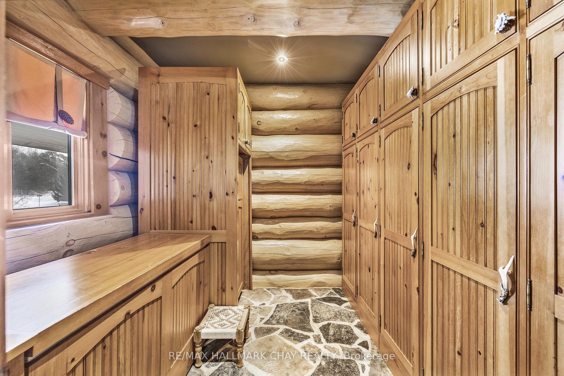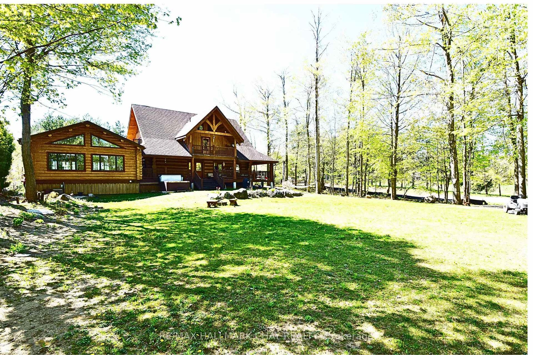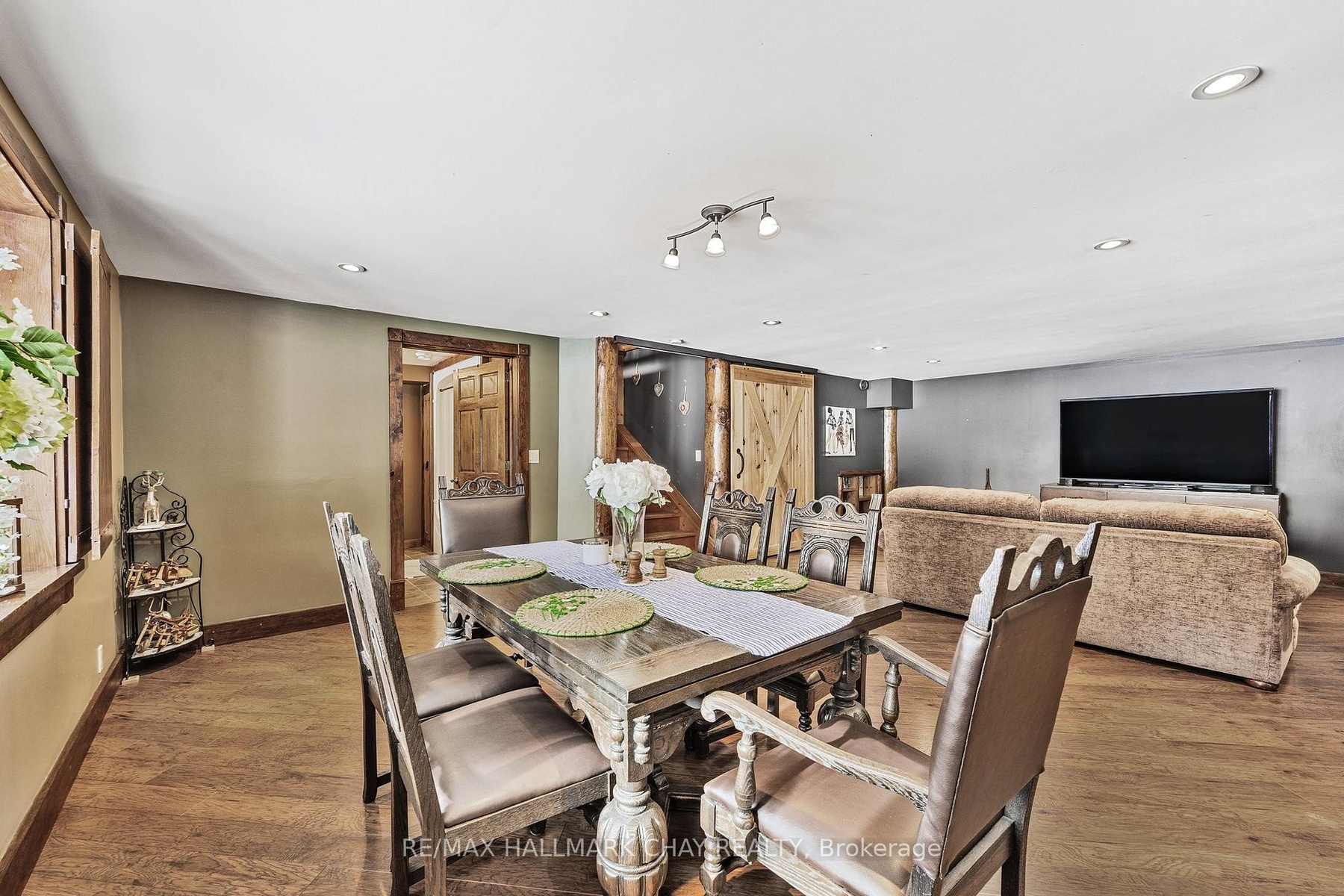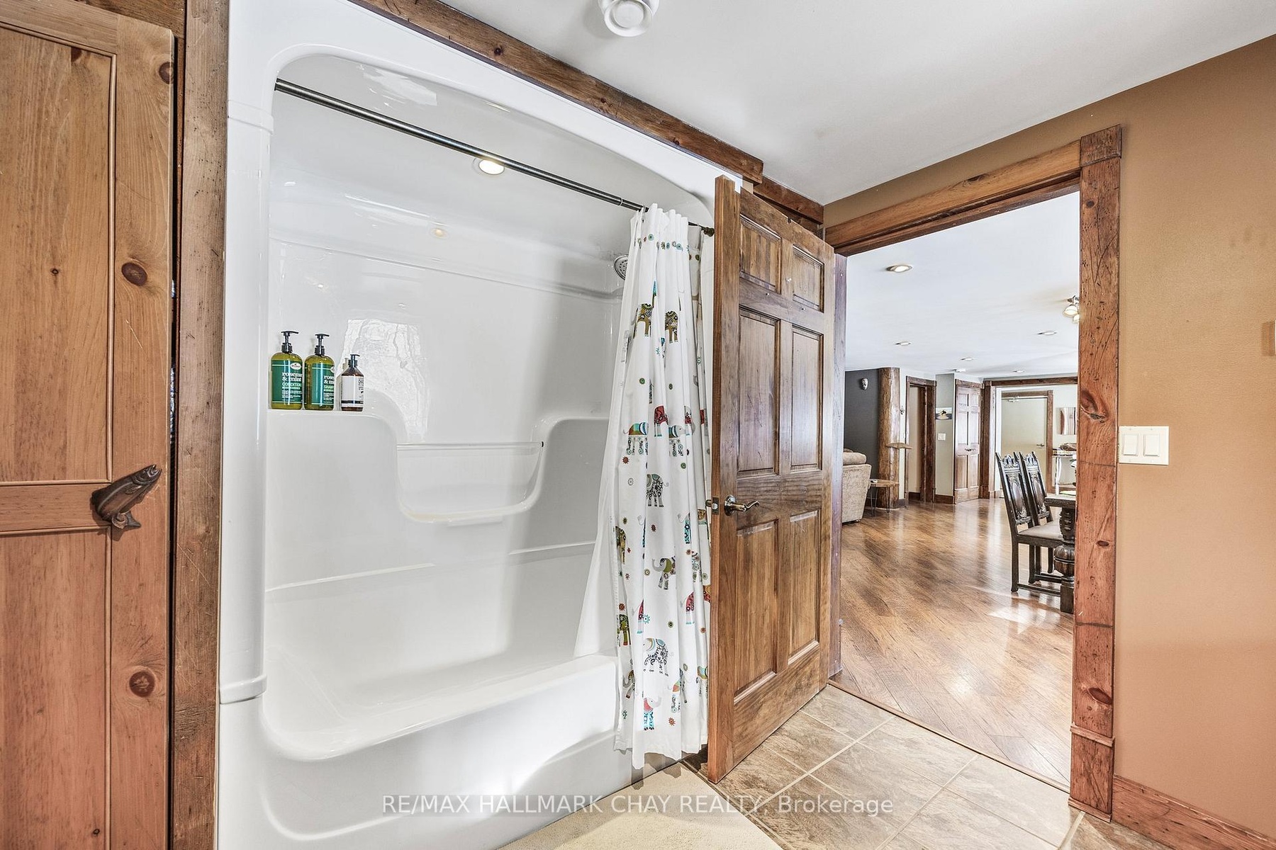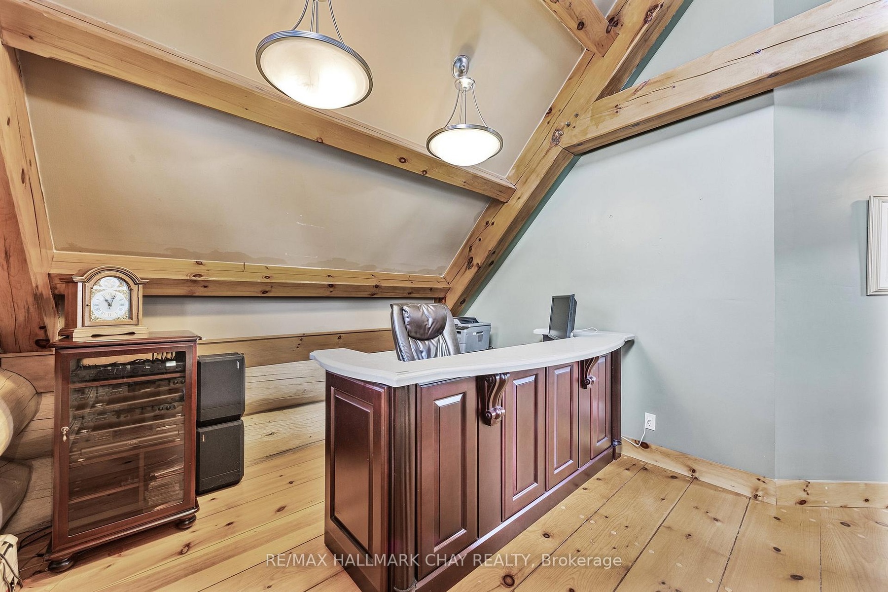 Welcome to 118 Highland Drive, Oro-Medonte. Discover the charm and craftsmanship of this stunning log home in the heart of Horseshoe Valley. Featured in the movie The Christmas Chronicles starring Kurt Russell, this home radiates warmth and comfort, complemented by award-winning landscaping and a breathtaking 3-tier pond a tranquil highlight of the property. Step inside to a spacious foyer with tile flooring which leads into a cozy yet expansive rec room with rich hardwood floors. This level also features a beautiful wet bar, a comfortable bedroom, and a 4-piece bathroom, ideal for entertaining or hosting guests.The open-concept main floor is designed for modern living. The kitchen dazzles with granite countertops, stainless steel appliances, and a breakfast bar, flowing effortlessly into the dining and living room. A walk-in pantry with a built-in freezer and second fridge provides exceptional storage, while a stylish powder room completes this level.The second floor offers two generously sized bedrooms, each with its own ensuite. The primary suite boasts a walkout to a private balcony overlooking the backyard and includes a convenient laundry area. A bright office space and soaring cathedral ceilings with wood beams enhance the airy ambiance of the home.The heated garage, complete with an entertainment room above, blends utility with style. Outdoor living is equally impressive, with multiple walkouts to covered porches, including a wrap-around porch and private balconiesperfect for soaking in the peaceful surroundings. You will love the cleanliness and efficiency of the water radiators and in-floor heating, ensuring consistent warmth and a clean, comfortable atmosphere throughout.Situated just one minute from Vetta Nordic Spa, five minutes from Horseshoe Valley Resort, and close to Craighurst amenities and major highways, this property offers a harmonious blend of natural beauty and unmatched convenience.