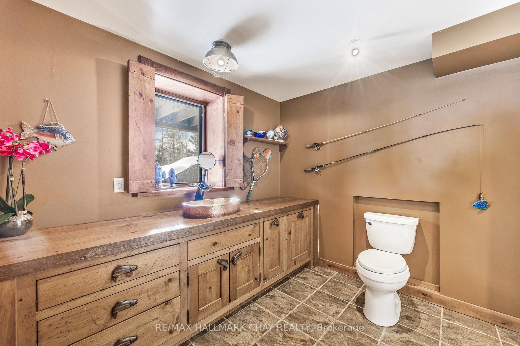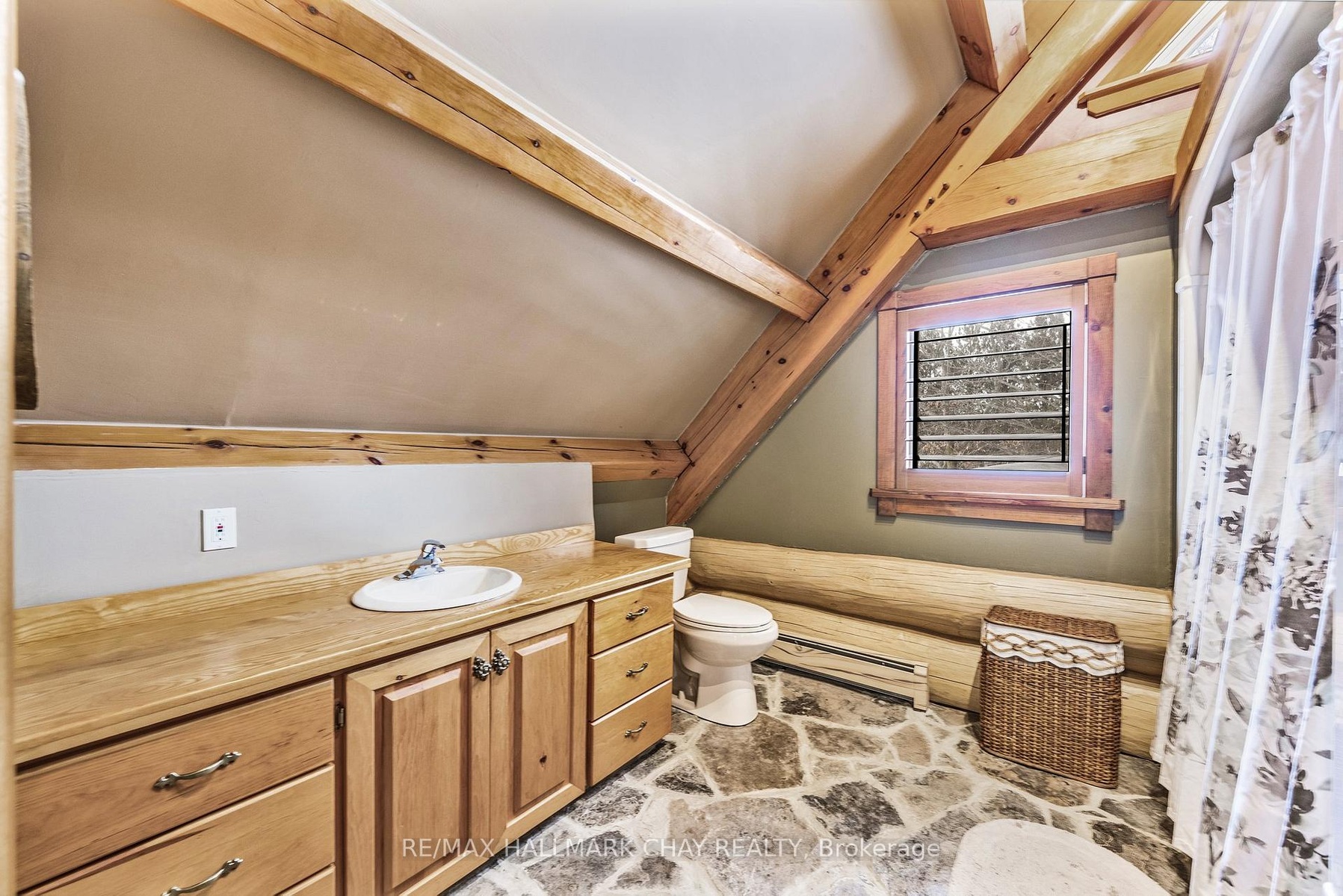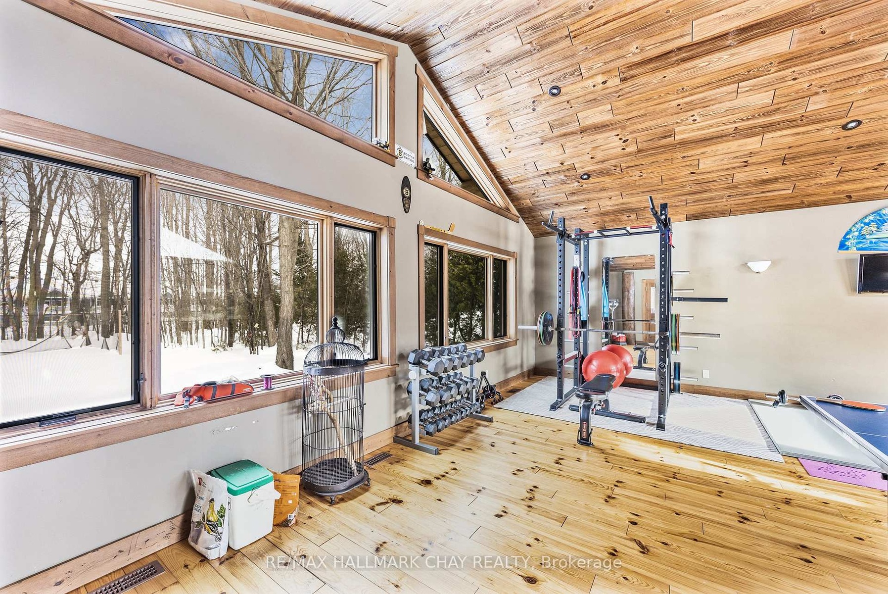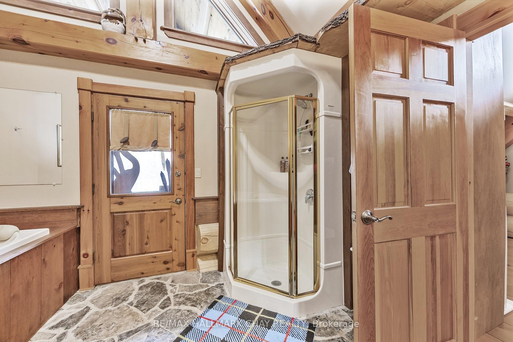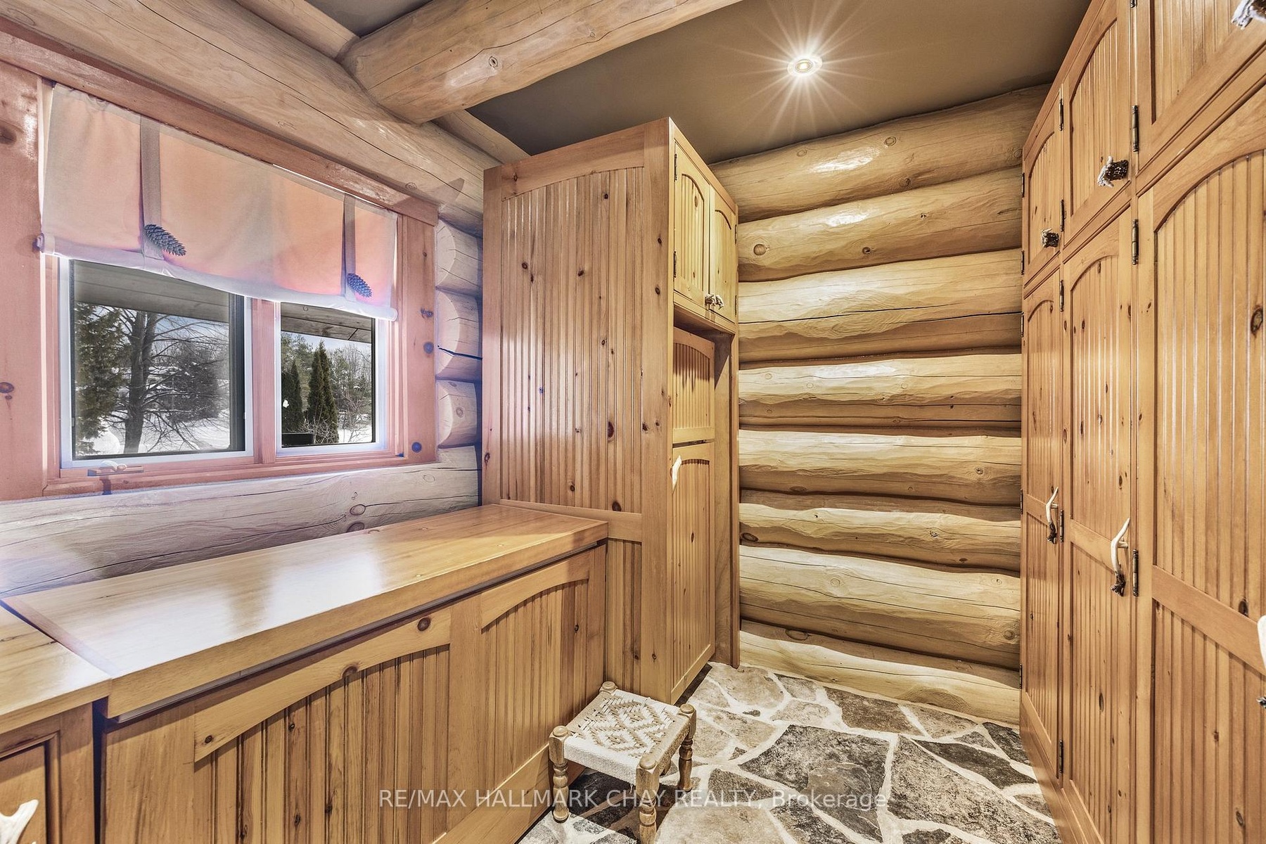 Welcome to 118 Highland Drive, Oro-Medonte. Discover the charm and craftsmanship of this stunning log home in the heart of Horseshoe Valley. Featured in the movie The Christmas Chronicles starring Kurt Russell, this home radiates warmth and comfort, complemented by award-winning landscaping and a breathtaking 3-tier pond a tranquil highlight of the property. Step inside to a spacious foyer with tile flooring which leads into a cozy yet expansive rec room with rich hardwood floors. This level also features a beautiful wet bar, a comfortable bedroom, and a 4-piece bathroom, ideal for entertaining or hosting guests.The open-concept main floor is designed for modern living. The kitchen dazzles with granite countertops, stainless steel appliances, and a breakfast bar, flowing effortlessly into the dining and living room. A walk-in pantry with a built-in freezer and second fridge provides exceptional storage, while a stylish powder room completes this level.The second floor offers two generously sized bedrooms, each with its own ensuite. The primary suite boasts a walkout to a private balcony overlooking the backyard and includes a convenient laundry area. A bright office space and soaring cathedral ceilings with wood beams enhance the airy ambiance of the home.The heated garage, complete with an entertainment room above, blends utility with style. Outdoor living is equally impressive, with multiple walkouts to covered porches, including a wrap-around porch and private balconiesperfect for soaking in the peaceful surroundings. You will love the cleanliness and efficiency of the water radiators and in-floor heating, ensuring consistent warmth and a clean, comfortable atmosphere throughout.Situated just one minute from Vetta Nordic Spa, five minutes from Horseshoe Valley Resort, and close to Craighurst amenities and major highways, this property offers a harmonious blend of natural beauty and unmatched convenience.