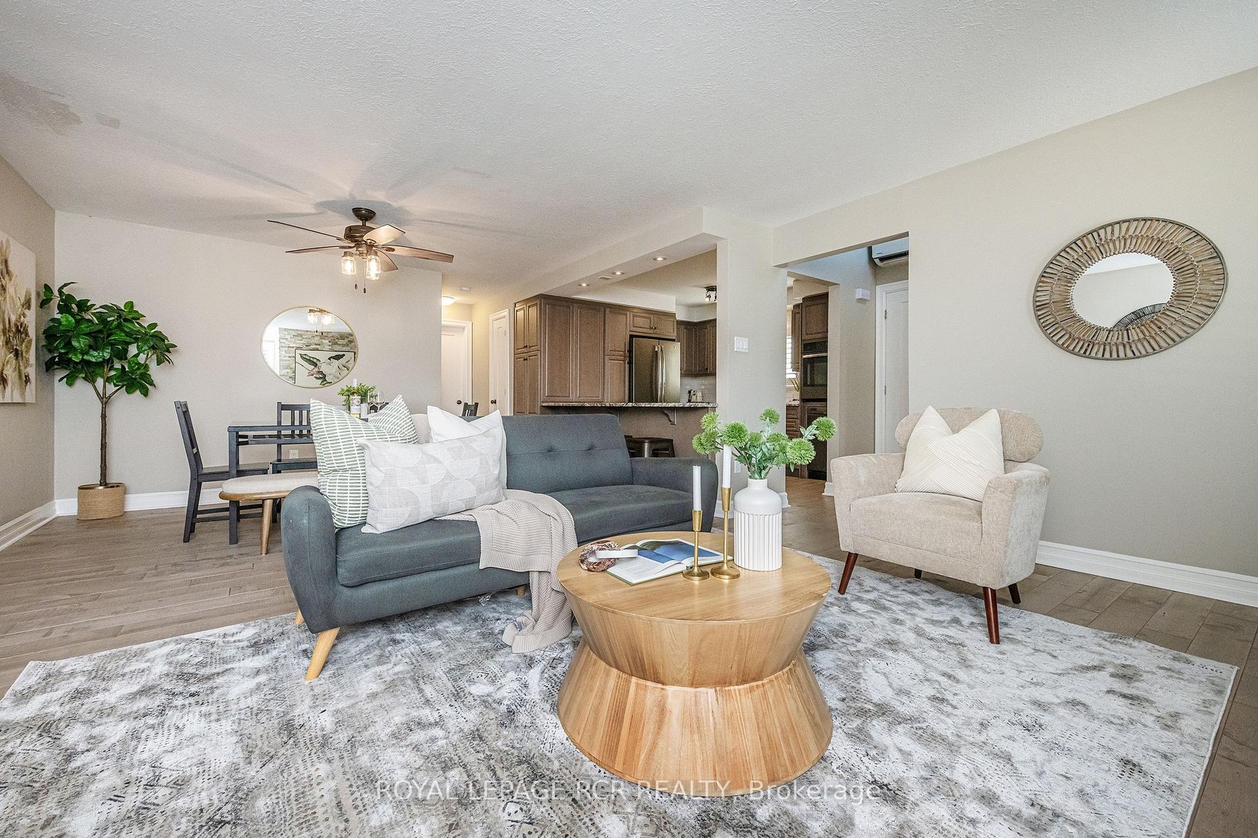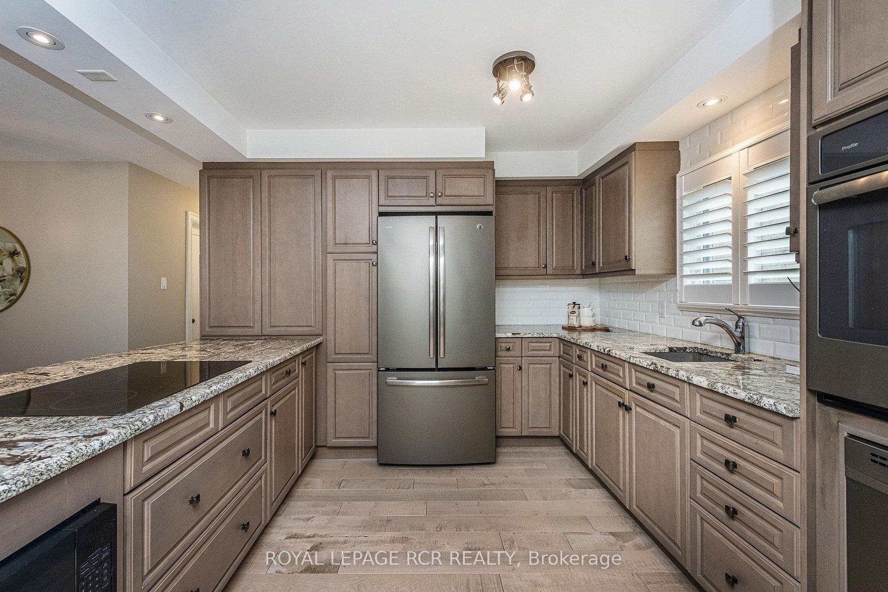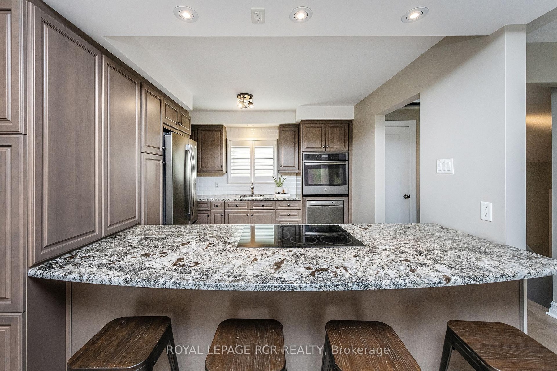 This is one home you don't want to miss! This completely updated raised bungalow is tucked away on a quiet crescent close to shopping, restaurants, and schools. Freshly painted and upgraded top to bottom, this home offers peace of mind with nothing with left to do but move in and relax. From the moment you arrive, manicured perennial gardens set the tone for the pride of ownership throughout. Inside, every detail has been thoughtfully updated with timeless, high-end finishes. Hardwood flooring and California shutters flow through the main level. The chefs kitchen features abundant cabinetry, a pantry, granite counters, tile backsplash, glass cooktop, and matching GE Profile appliances. Overlooking counter seating, the dining area, and great room, this kitchen makes entertaining effortless. The great room is anchored by a striking stone fireplace, flanked by oversized windows with charming bench seating that fill the space with natural light. Down the hall, past the updated 2-piece bathroom, is the primary suite, a true retreat! This oversized bedroom offers a walkout to the deck, an extra-large closet, and space for sitting or reading. The spa-like ensuite includes a double vanity with stone countertops and a glass walk-in tiled shower, another example of the top-to-bottom updates that make this home feel brand new. The lower level offers a separate entrance, kitchenette, and a 4-piece bathroom. Two generous bedrooms with large above-grade windows provide plenty of natural light, ideal for in-laws, guests, or rental potential. Outside, a two-tier deck provides multiple sitting areas with room to dine, lounge, and barbecue. Surrounded by mature trees, perennials, and a cozy fire pit, the backyard is the perfect place to unwind. This home truly leaves nothing to do but move in and enjoy.