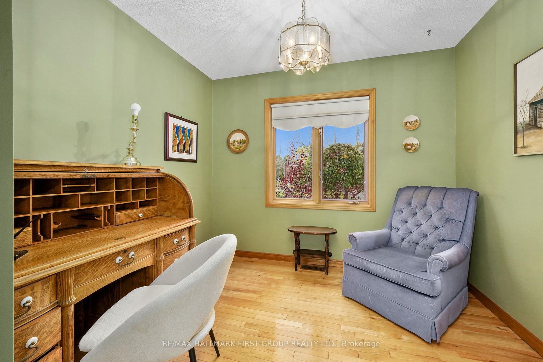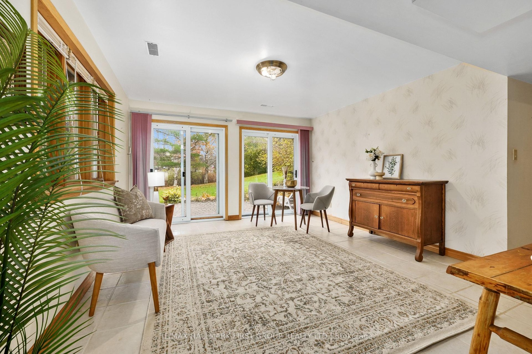 Set on over 2 acres in Cobourg's desirable Skye Valley community, this spacious family home offers room to grow, inside and out. With generous square footage, a flexible layout, and in-law potential on the lower level, it's an excellent opportunity for those looking to update and make a home their own. The main level features a bright living room with a bay window, a formal dining area ideal for family gatherings, and a large eat-in kitchen with abundant workspace, open shelving, and a breakfast area overlooking the private pond. A deck walkout extends the living space outdoors, perfect for taking in the peaceful setting. The family room with fireplace, main-floor office, guest bath, and laundry room with garage access complete this level. Upstairs, the primary suite offers a bayed sitting area and ensuite with both tub and shower enclosure, along with two additional bedrooms and a full bath. The lower level adds exceptional versatility, featuring a large recreation room with a fireplace, a den or office, bedroom, and ample storage or workshop space, along with walkouts to the yard, a great setup for extended family or guests. Outdoors, the property offers plenty of room to explore or garden with a tree-lined perimeter, private pond, and multiple outdoor seating areas. This property presents a rare combination of size, setting, and potential in an ideal location, just minutes from town amenities and with easy 401 access. An ideal choice for buyers seeking space, privacy, and a project with long-term upside.