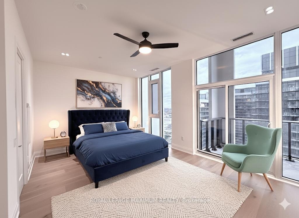 Stop scrolling ! This is the one you've been looking for! Its more than a condo; its a true gem, unlike all the others, and it was built in 2024 - just released and never lived in. More than a home, it's a statement. 10-ft ceilings and professional custom cabinetry throughout the custom layout. It maximizes every inch of storage, with an enormous well appointed walk through closet in the Primary bedroom, built-in cabinetry in the 2nd bedroom, built-in entertainment and storage in the primary suite and living area. Not to mention your enormous, approx 130 sf walk-in locker (in addition to the std, supplied locker). It features highly sought-after south-west exposure, floor-to-ceiling windows, prefinished engineered hardwood floors transitioning your living space into a sun-drenched sanctuary. The practicalities: two prime, elevator-adjacent parking spots on P2. The location is unbeatable for a successful professional or entrepreneur: minutes to the Vaughan Metropolitan Centre, Highways 400/407, Mackenzie Health, and the retail therapy of Vaughan Mills. Indulge with the 7th-floor pool, fitness club, and rooftop Skyview Lounge. If your time is money, this suite is an investment in your lifestyle. **This is where you live when you've earned it.