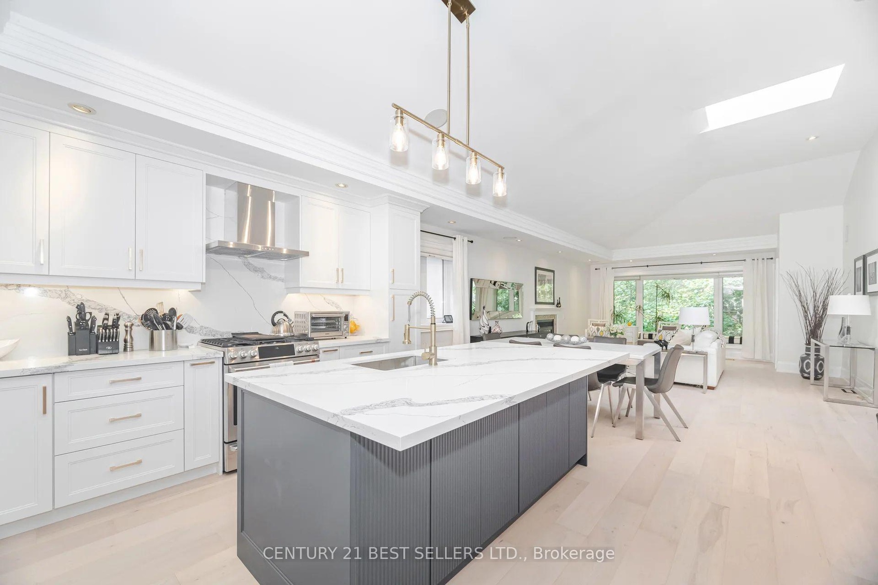 Beautiful Four Bedroom Bungalow on Ravine lot In Mineola West just minutes from the QEW and 2min drive from port credit! Nested Amongst Soaring Mature Trees, in private cul-de-sac. Professionally Landscaped Walkways, Stone Patio And Lush Gardens. Located In One Of Mississauga's Most Prestigious Neighborhoods, This Home Offers a fully renovated space from top to bottom. A professionally designed chefs style Kitchen complete with all brand new stone counters and backsplash as well as all new appliances. Brand new Hardwood Flooring throughout, Fully renovated master ensuite with walk in closet space, all bathrooms as well as kitchen and flooring renovated in Feb 2025.Custom vaulted Ceilings with custom trim work throughout. LED Pot Lights, B/I Speaker System, gas fire places on both floors. Walk out basement entry at rear with tones of glazing and natural light providing a breathtaking view of the ravine and mature trees that surround this property. Truly a Muskoka type setting