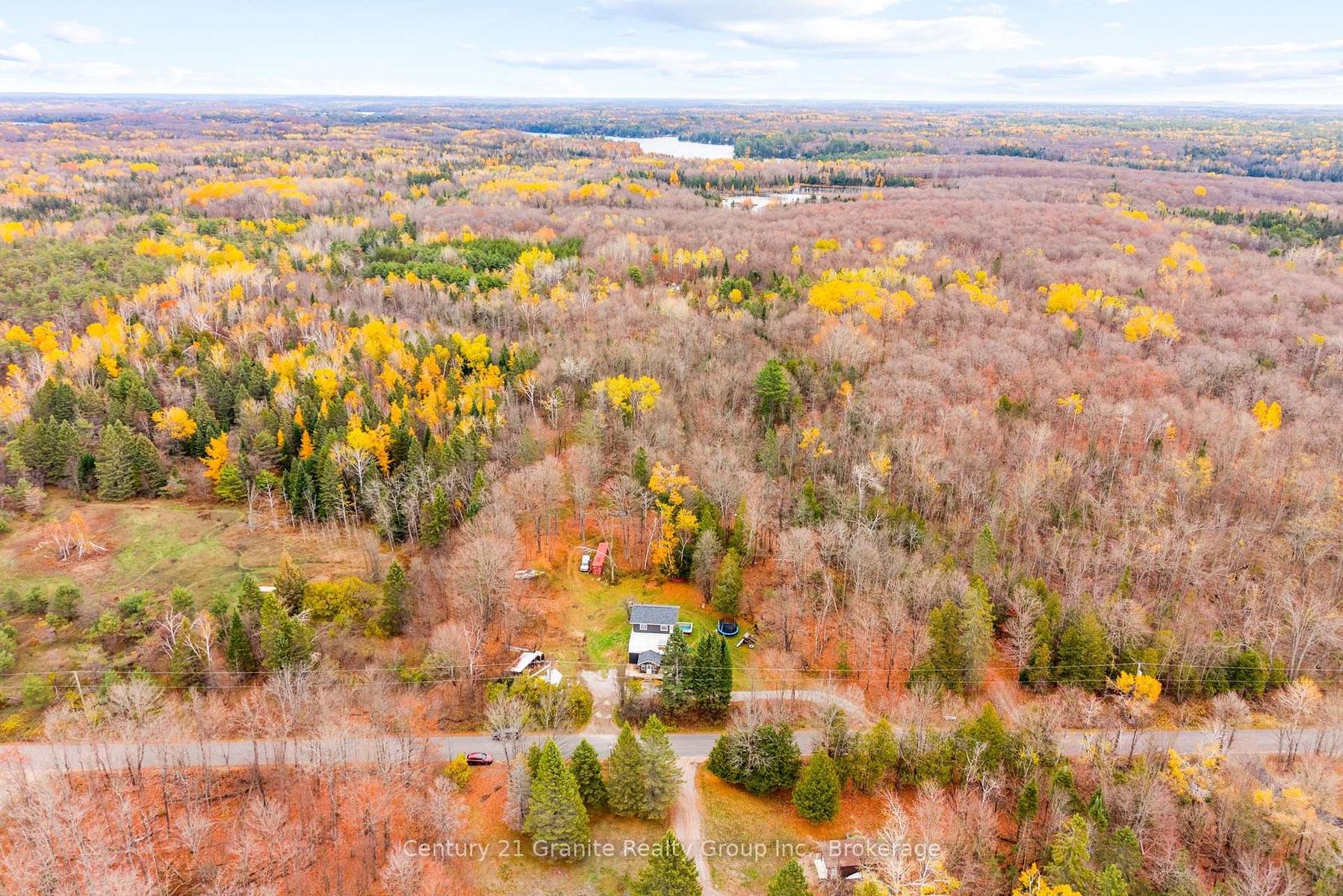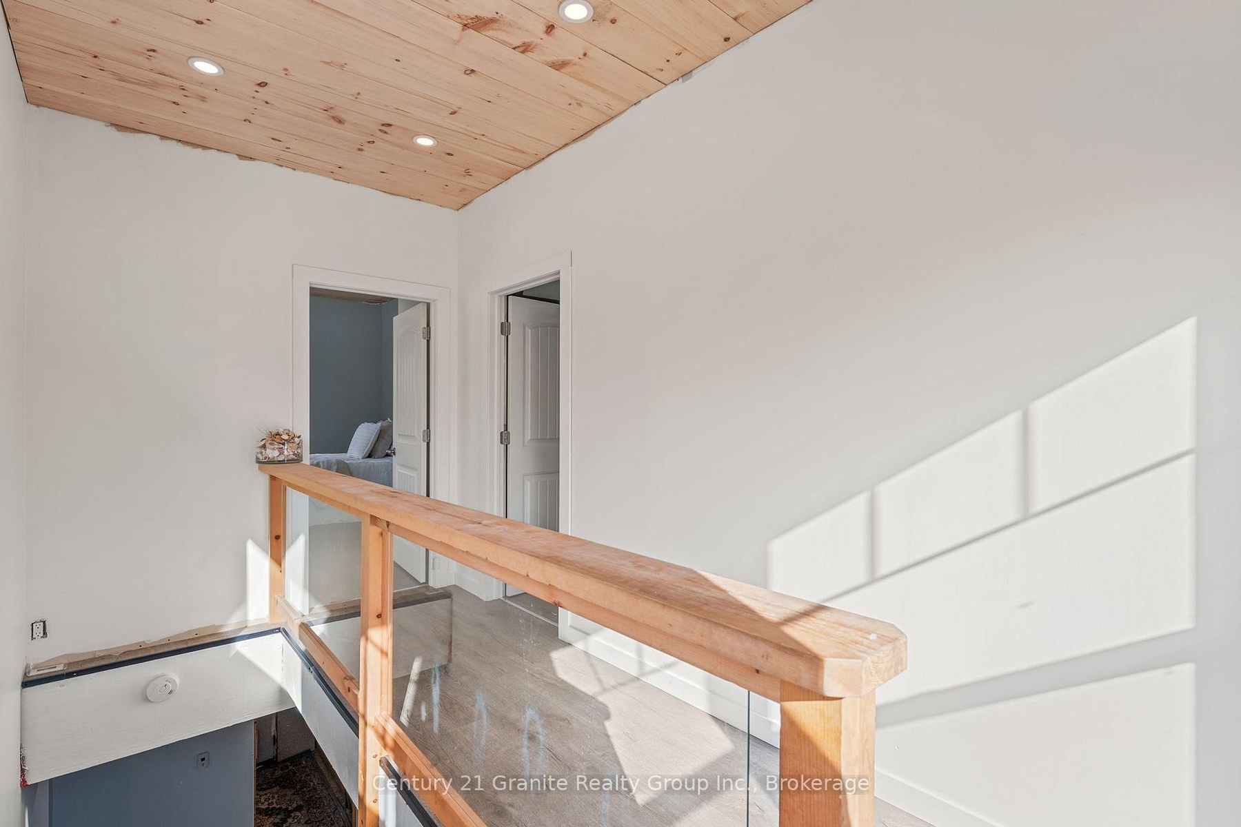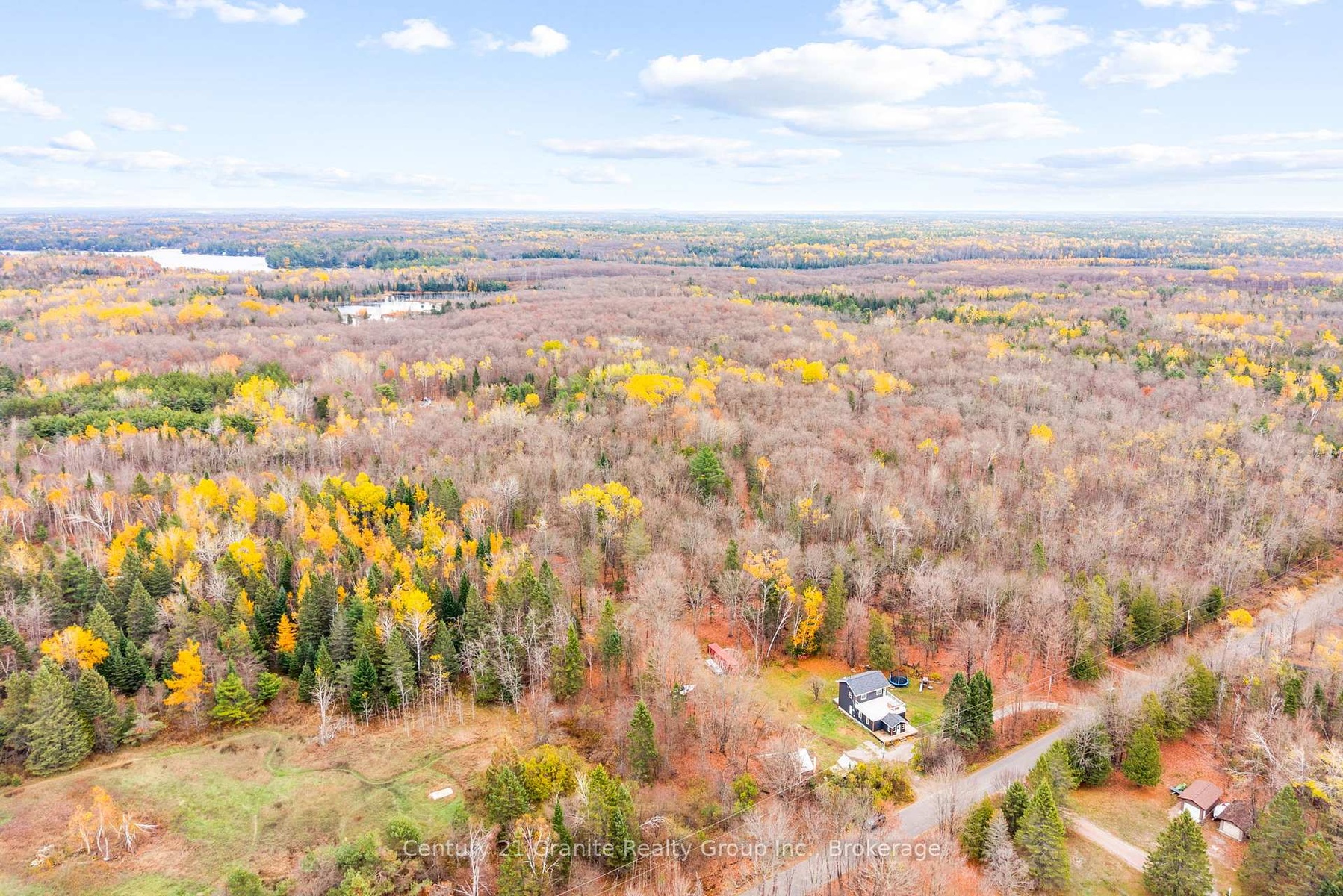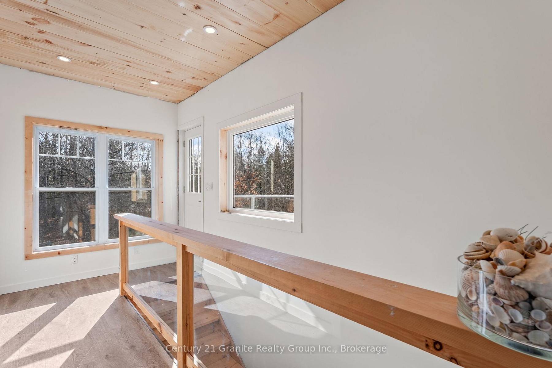 Peaceful country living just minutes from town! Nestled on a beautiful 5-acre property surrounded by mature trees, this inviting home combines comfort, privacy, and convenience. Offering approximately 1,600 sq ft of living space, it features 4 bedrooms and 2 bathrooms - ideal for families, downsizers, or weekend getaways. The main level boasts a bright open layout with warm wood accents and plenty of natural light. The kitchen offers ample counter space and cabinetry, opening to the dining and living areas for easy entertaining. Two bedrooms on this level provide flexibility for guests, children, or a home office, along with a full bathroom and laundry room. Upstairs, the primary suite serves as a peaceful retreat complete with a walk-in closet, private balcony, and soaker-tub ensuite, while the second upper bedroom adds extra space for family or visitors. A large rooftop porch with a hot tub offers a relaxing space to unwind and take in the beautiful country views - perfect for enjoying quiet mornings or star-filled nights. Step outside to enjoy the best of country life - open yard space, wooded surroundings, and room to relax, garden, or explore. With quick access to Highway 35, schools, and nearby amenities, this property offers the serenity of rural living without sacrificing convenience.