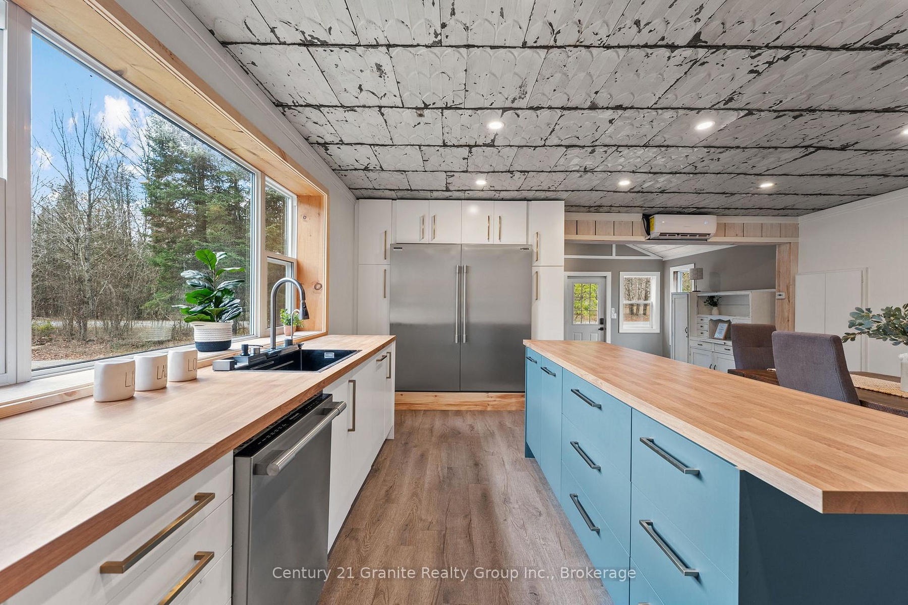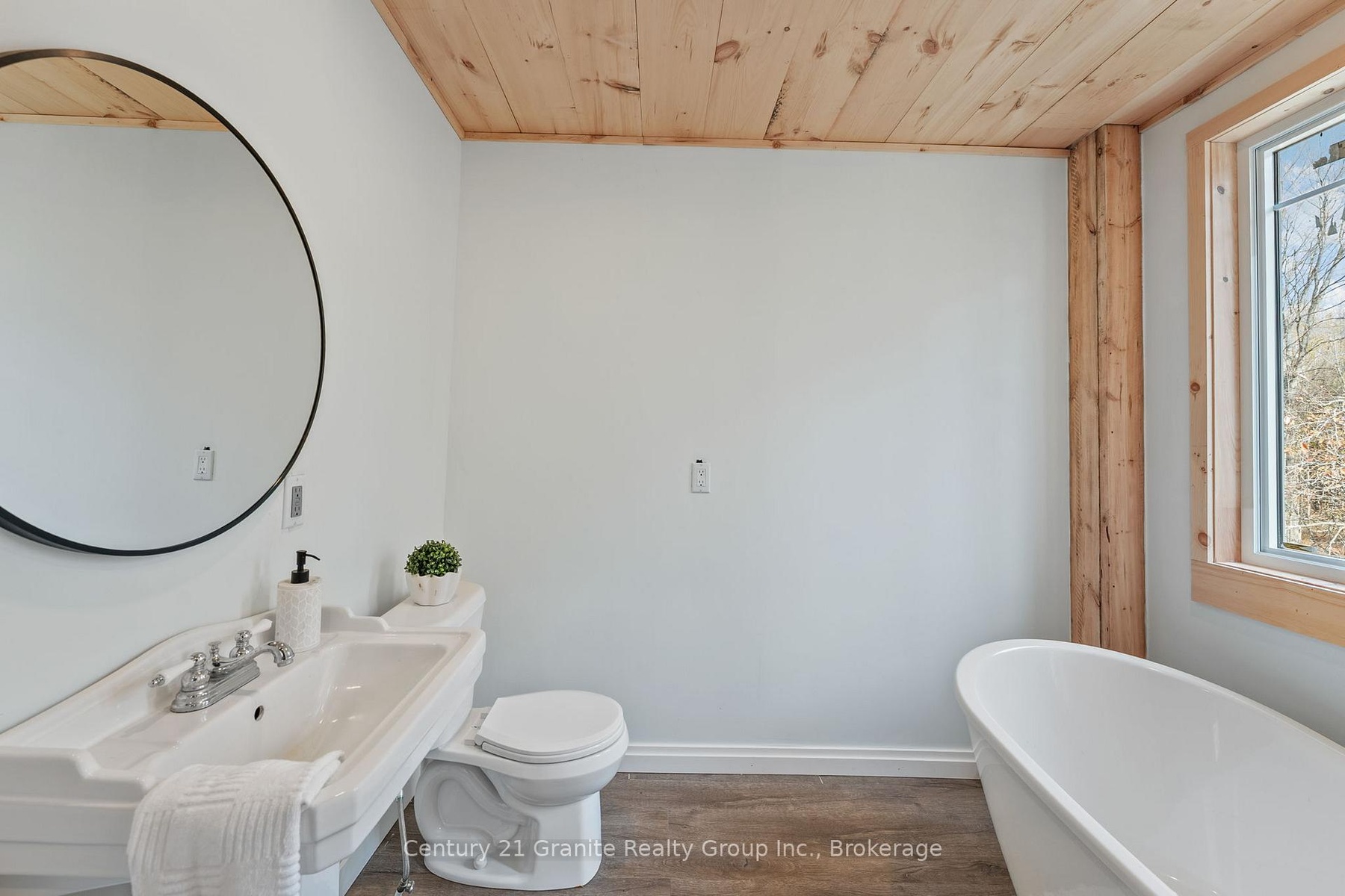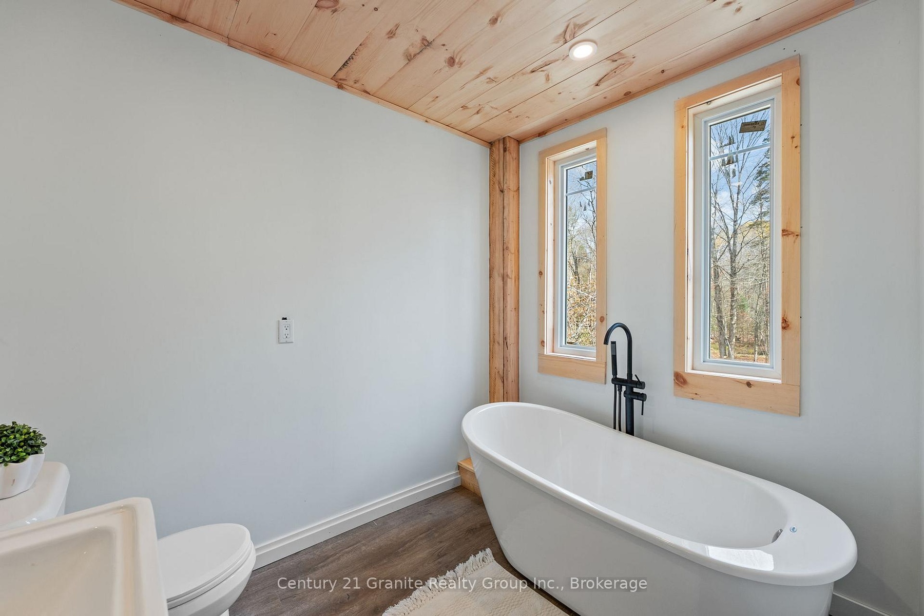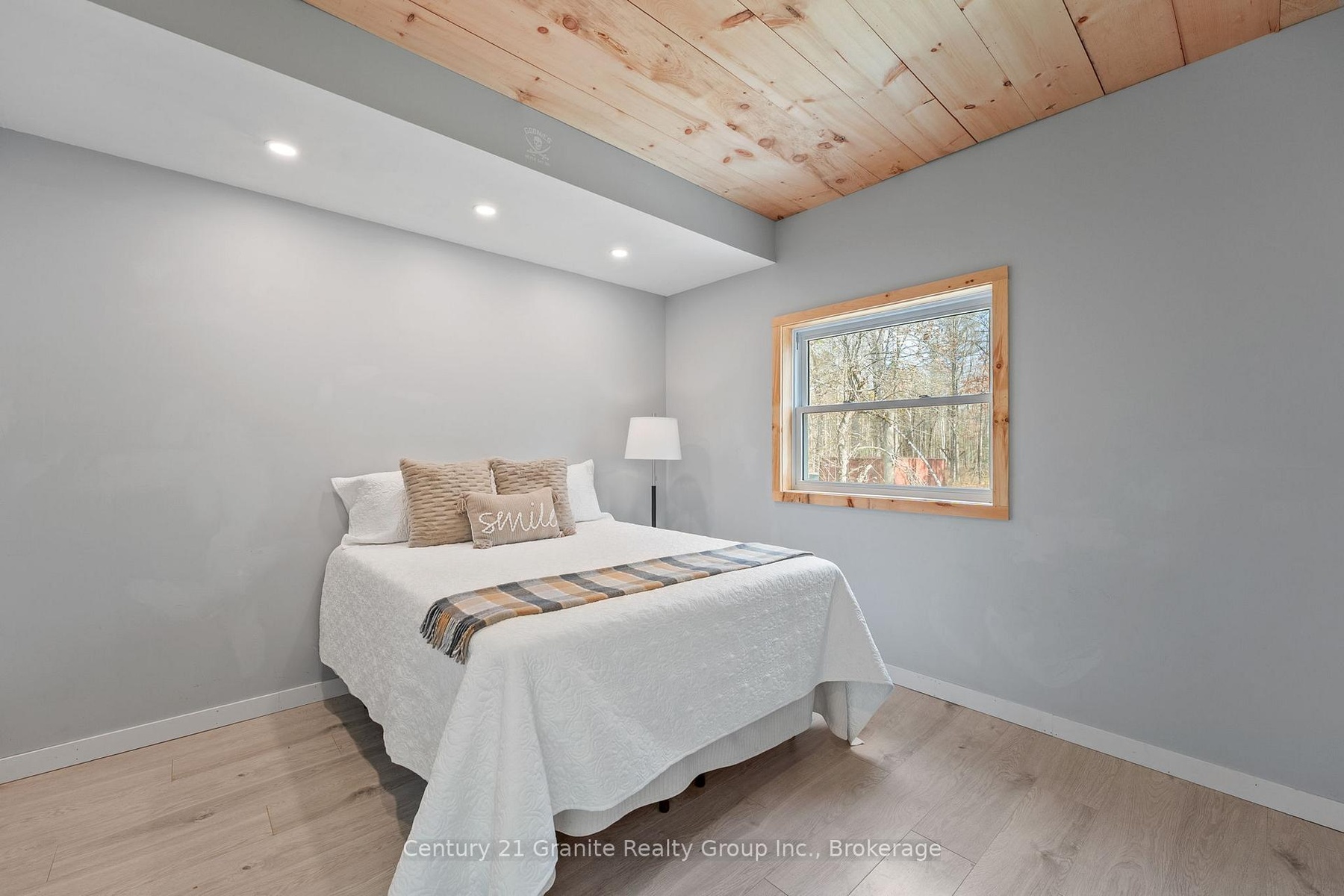 Peaceful country living just minutes from town! Nestled on a beautiful 5-acre property surrounded by mature trees, this inviting home combines comfort, privacy, and convenience. Offering approximately 1,600 sq ft of living space, it features 4 bedrooms and 2 bathrooms - ideal for families, downsizers, or weekend getaways. The main level boasts a bright open layout with warm wood accents and plenty of natural light. The kitchen offers ample counter space and cabinetry, opening to the dining and living areas for easy entertaining. Two bedrooms on this level provide flexibility for guests, children, or a home office, along with a full bathroom and laundry room. Upstairs, the primary suite serves as a peaceful retreat complete with a walk-in closet, private balcony, and soaker-tub ensuite, while the second upper bedroom adds extra space for family or visitors. A large rooftop porch with a hot tub offers a relaxing space to unwind and take in the beautiful country views - perfect for enjoying quiet mornings or star-filled nights. Step outside to enjoy the best of country life - open yard space, wooded surroundings, and room to relax, garden, or explore. With quick access to Highway 35, schools, and nearby amenities, this property offers the serenity of rural living without sacrificing convenience.