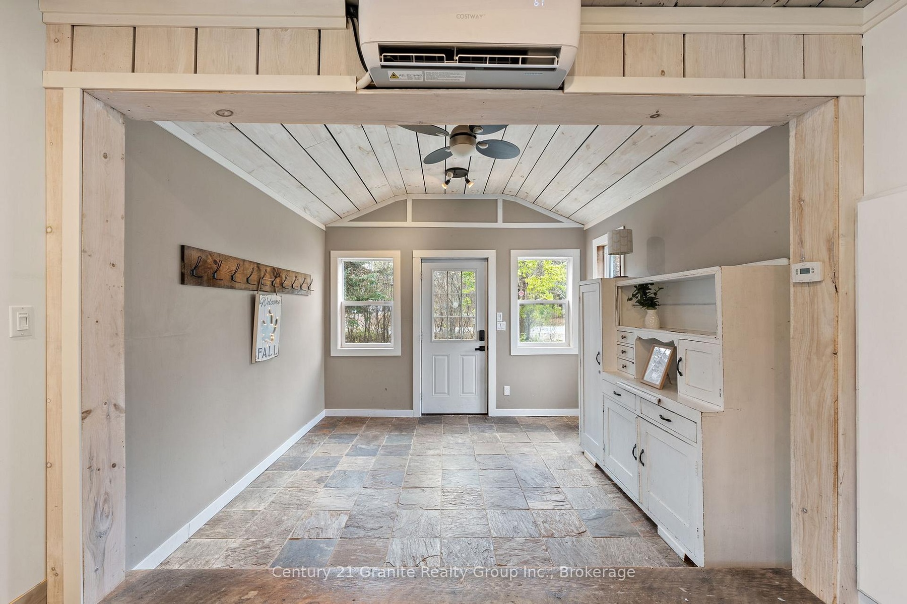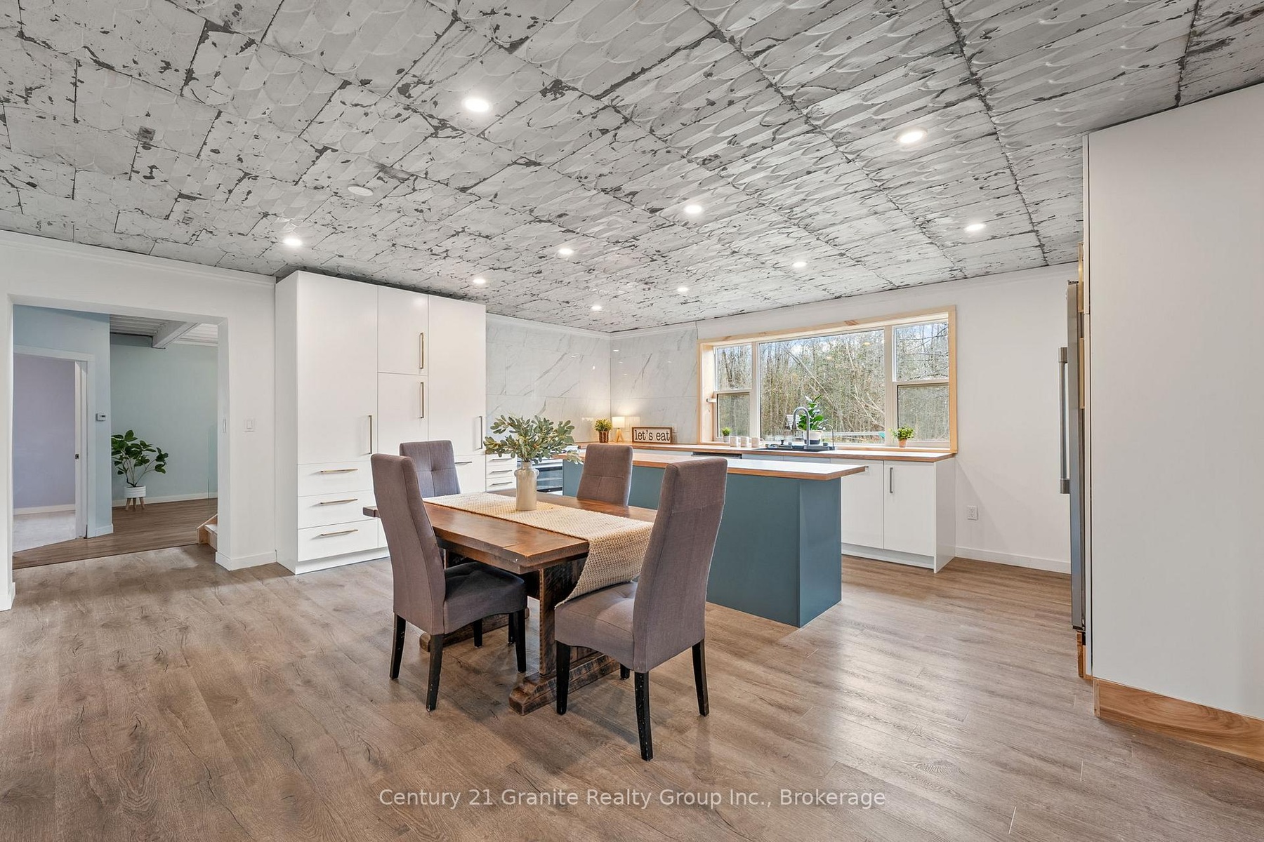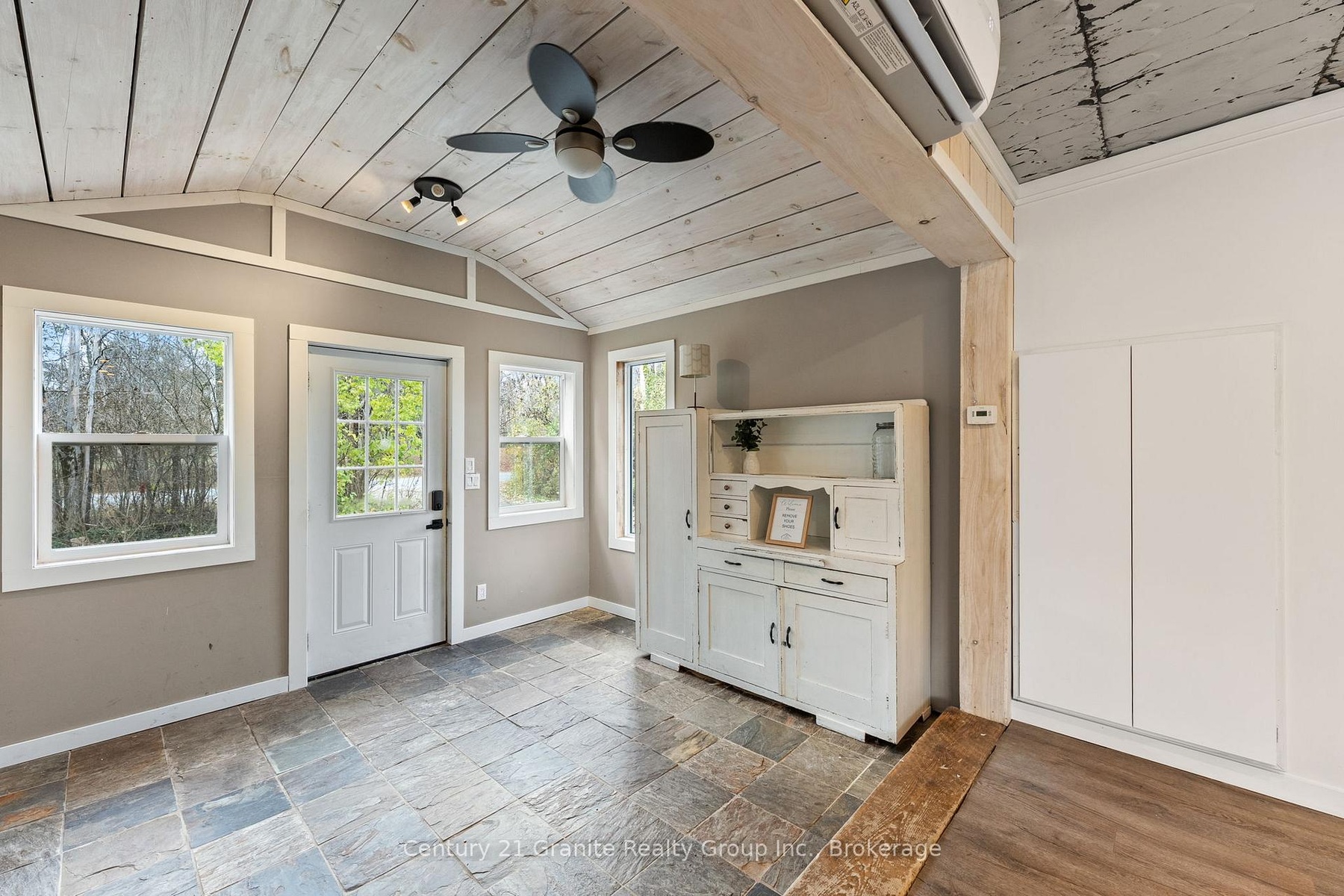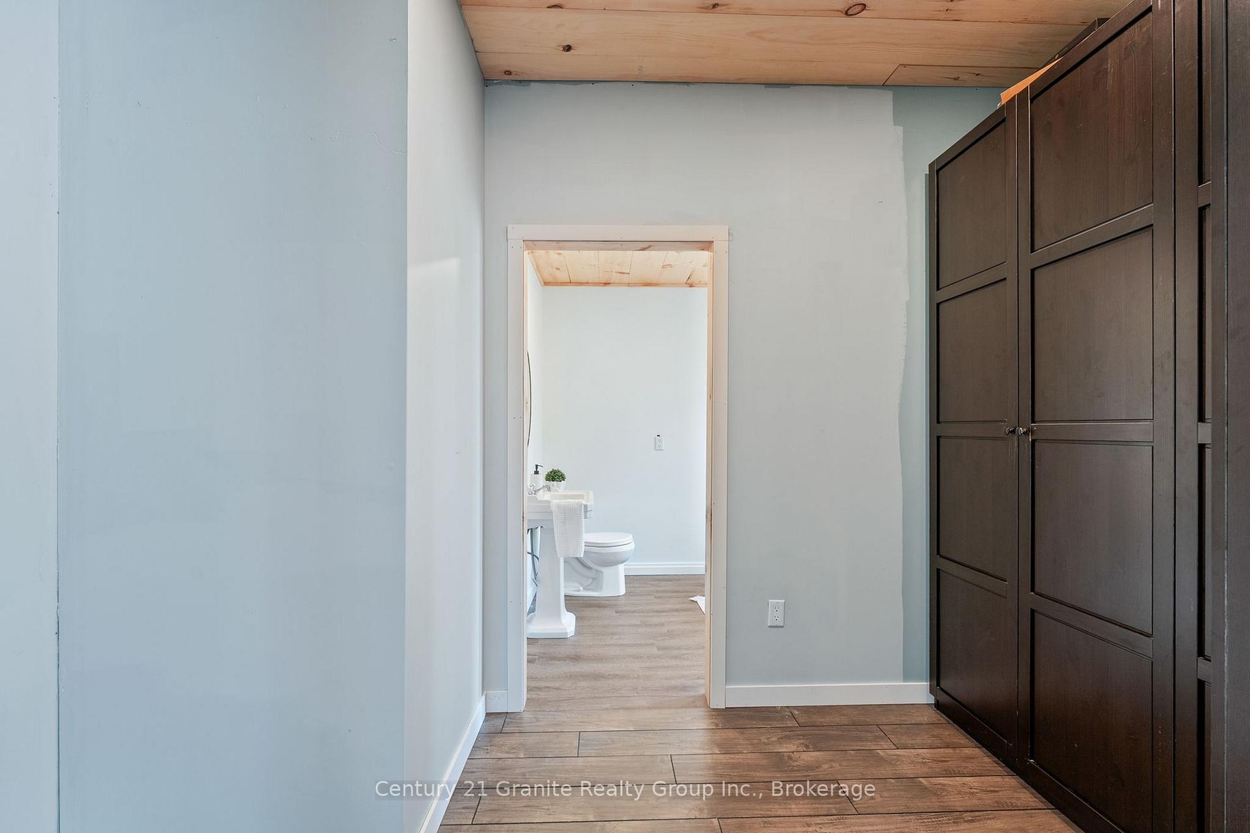 Peaceful country living just minutes from town! Nestled on a beautiful 5-acre property surrounded by mature trees, this inviting home combines comfort, privacy, and convenience. Offering approximately 1,600 sq ft of living space, it features 4 bedrooms and 2 bathrooms - ideal for families, downsizers, or weekend getaways. The main level boasts a bright open layout with warm wood accents and plenty of natural light. The kitchen offers ample counter space and cabinetry, opening to the dining and living areas for easy entertaining. Two bedrooms on this level provide flexibility for guests, children, or a home office, along with a full bathroom and laundry room. Upstairs, the primary suite serves as a peaceful retreat complete with a walk-in closet, private balcony, and soaker-tub ensuite, while the second upper bedroom adds extra space for family or visitors. A large rooftop porch with a hot tub offers a relaxing space to unwind and take in the beautiful country views - perfect for enjoying quiet mornings or star-filled nights. Step outside to enjoy the best of country life - open yard space, wooded surroundings, and room to relax, garden, or explore. With quick access to Highway 35, schools, and nearby amenities, this property offers the serenity of rural living without sacrificing convenience.