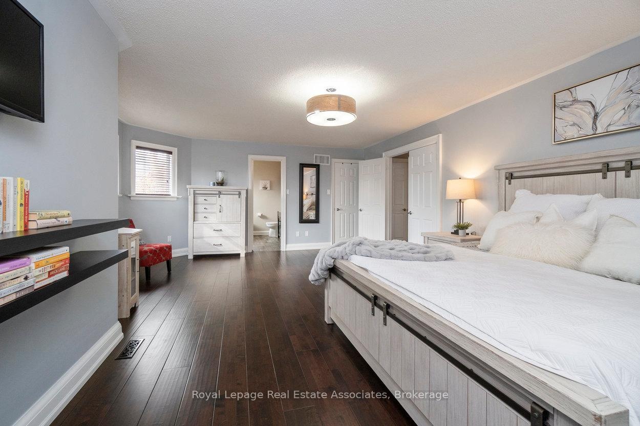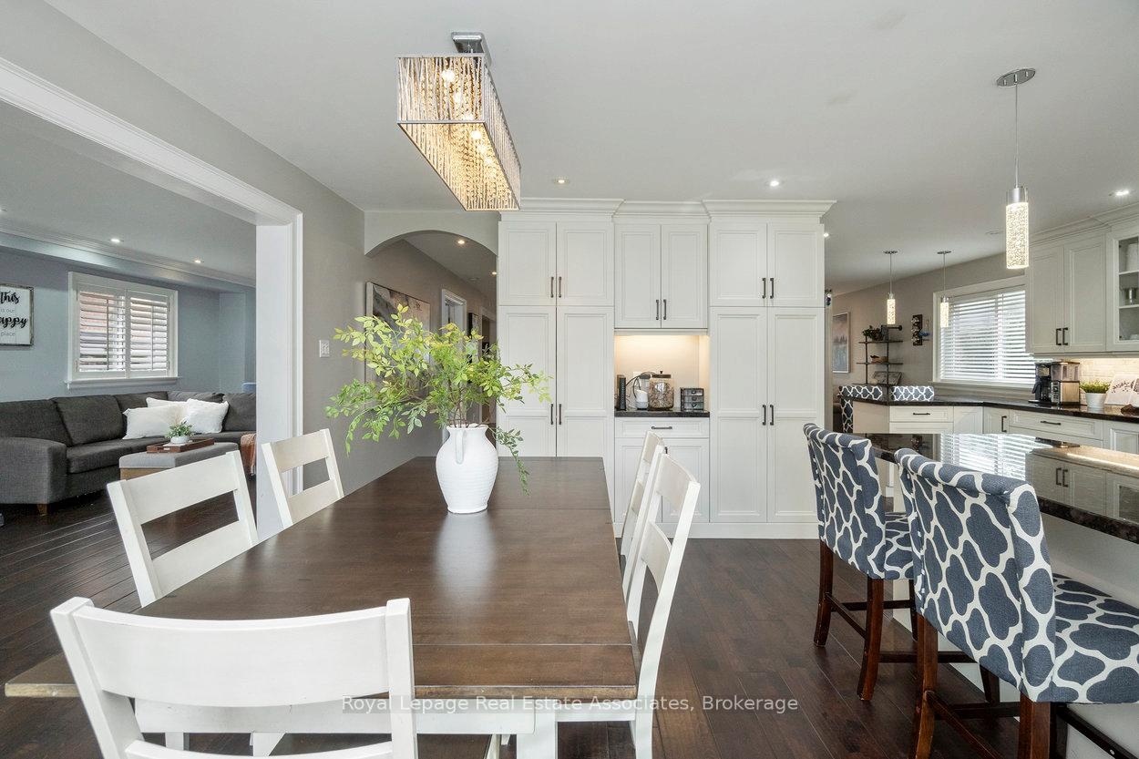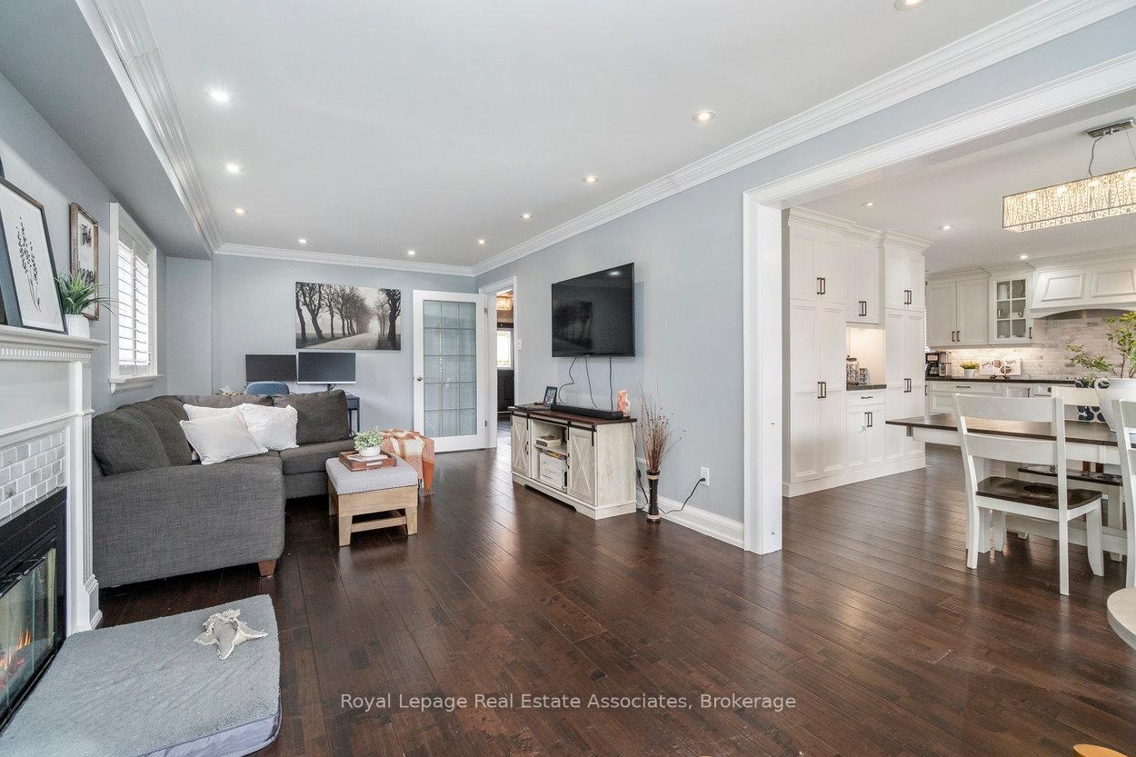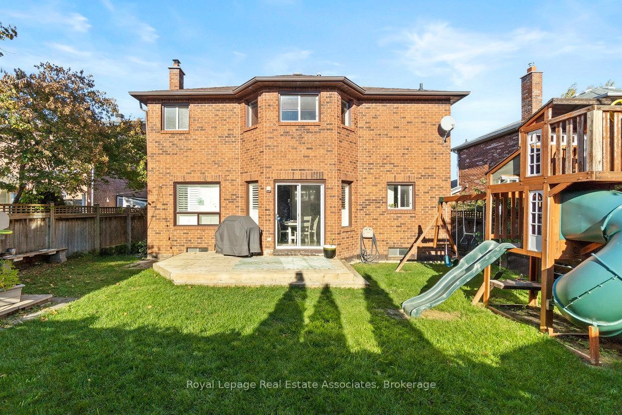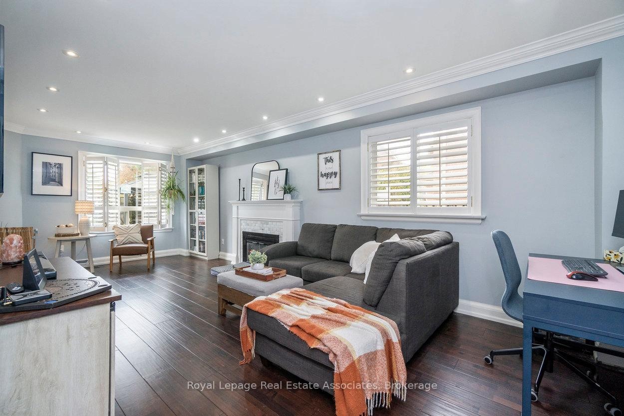 Welcome to this beautifully maintained 4 + 1 bedroom 2-storey home, offering approximately 2,400 sq ft plus a fully finished basement. Built in 1991, this property blends timeless design with thoughtful updates throughout. Engineered hardwood flooring spans the main and second levels, while the heart of the home - a stunning peninsula kitchen - features granite counters, custom cabinetry and counter seating on both ends, along with a sleek cooktop, built-in oven, microwave and built-in beverage fridge with wine bottle storage. The spacious primary bedroom includes a walk-in closet and a spa-like 5-piece ensuite with a freestanding tub and glass-enclosed shower. The finished basement adds even more living space with a large rec room, vinyl flooring, second gas fireplace, an extra bedroom, office space and a 3-piece bathroom. Outside, enjoy a private, landscaped backyard with a spacious deck, gas BBQ hook-up, shaded gazebo, lounge area, mature trees and decorative stonework - perfect for relaxing or entertaining. Additional highlights include a double driveway with parking for two, a 2-car garage and close proximity to schools, hospital, shopping, restaurants, GO train, recreation centres, parks and scenic walking paths along the ravine. What our sellers love most about this location: a quiet street lined with mature trees and double-sided sidewalks - ideal for peaceful strolls and a strong sense of community.