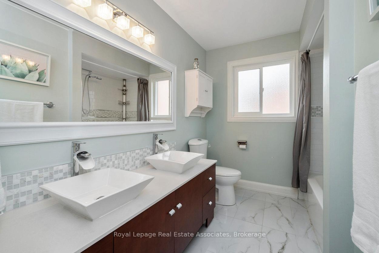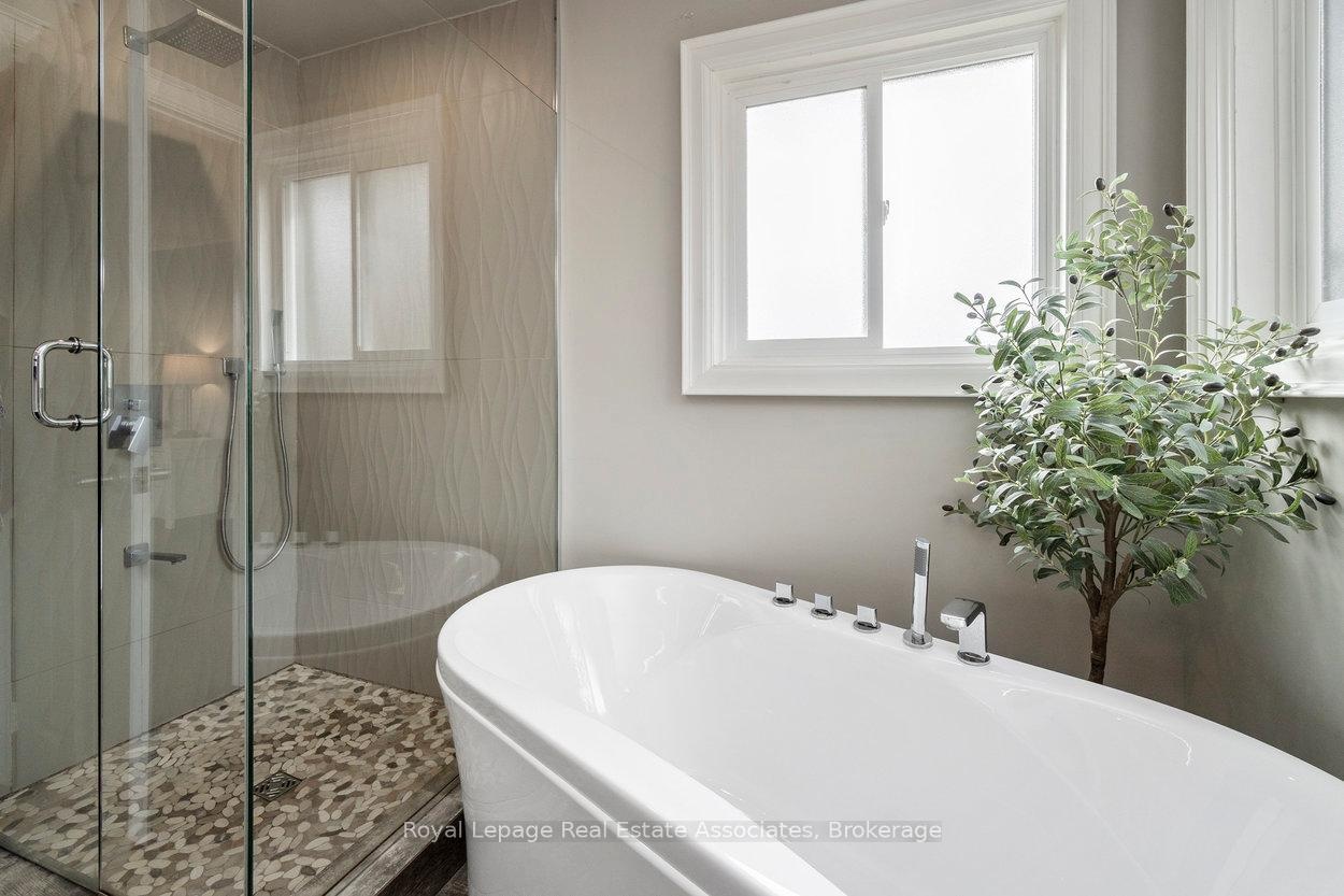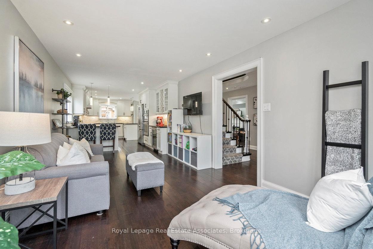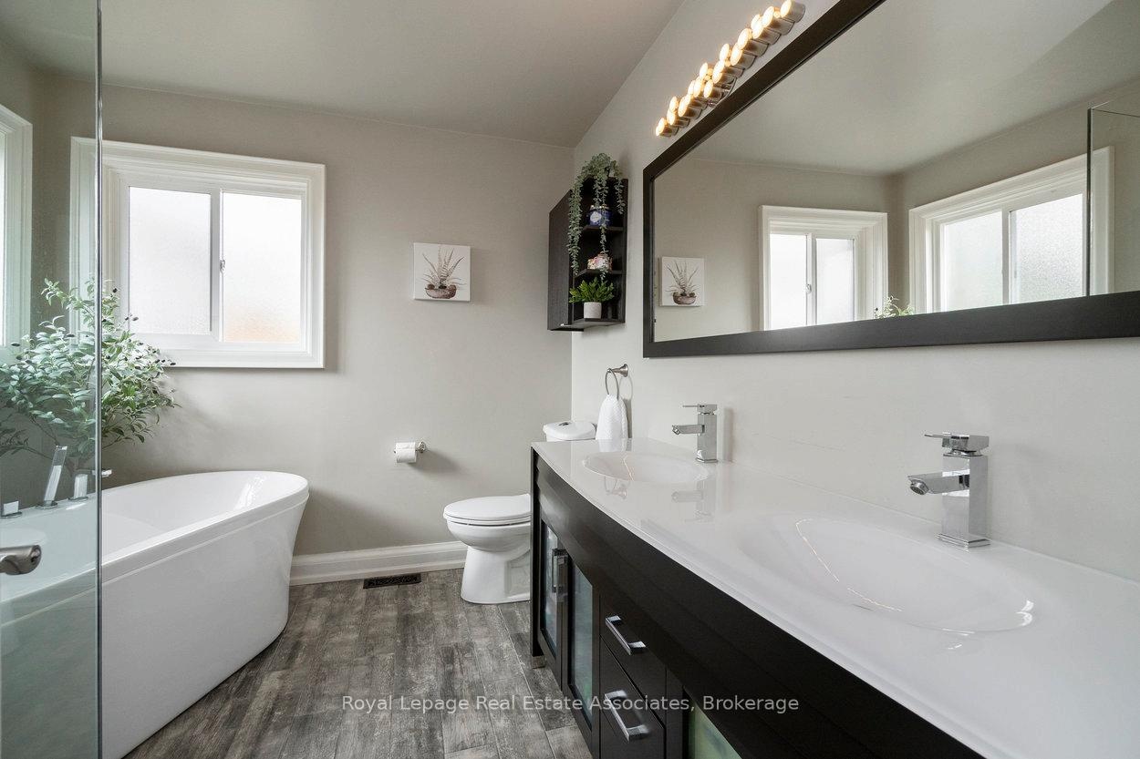 Welcome to this beautifully maintained 4 + 1 bedroom 2-storey home, offering approximately 2,400 sq ft plus a fully finished basement. Built in 1991, this property blends timeless design with thoughtful updates throughout. Engineered hardwood flooring spans the main and second levels, while the heart of the home - a stunning peninsula kitchen - features granite counters, custom cabinetry and counter seating on both ends, along with a sleek cooktop, built-in oven, microwave and built-in beverage fridge with wine bottle storage. The spacious primary bedroom includes a walk-in closet and a spa-like 5-piece ensuite with a freestanding tub and glass-enclosed shower. The finished basement adds even more living space with a large rec room, vinyl flooring, second gas fireplace, an extra bedroom, office space and a 3-piece bathroom. Outside, enjoy a private, landscaped backyard with a spacious deck, gas BBQ hook-up, shaded gazebo, lounge area, mature trees and decorative stonework - perfect for relaxing or entertaining. Additional highlights include a double driveway with parking for two, a 2-car garage and close proximity to schools, hospital, shopping, restaurants, GO train, recreation centres, parks and scenic walking paths along the ravine. What our sellers love most about this location: a quiet street lined with mature trees and double-sided sidewalks - ideal for peaceful strolls and a strong sense of community.
