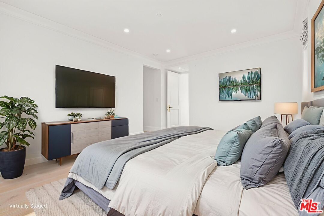 Discover the epitome of modern living in this newly built, 4 bedroom + 4.5 bathroom gated two-story home designed for comfort, elegance and sophistication. With space for everyone, this home has everything you need to make memories that will last a lifetime. Enter through a garden leading to a prominent blue door or through the 2-car garage with EV charger and plenty of secured storage space. Elegant Wainscoting walls line the home with wide plank hardwood floors throughout designed for comfort. A dedication home office/ Den downstairs with garden views and high quality built-in's, while upstairs features four bedrooms each with their own ensuite bathroom. Formal dining room and formal family room centered around an elaborate Chef's kitchen and a separate eat-in breakfast area. Top-of-the-line Kosher kitchen w/ Stainless Steel Appliances: 2 full sized dishwashers, dual sinks, Large Miele Refrigerator, mini fridge, Miele oven, microwave, warmer and a 6 burner gas range, all carefully designed for ease of storage, enjoyment of cooking and entertaining. Double grandiose glass doors lead to a spacious backyard that includes an alfresco kitchen with built-in 4 burner gas BBQ, separate burners and outdoor sink. Plus a side patio off the dining room for those nights you wish to eat outside. The upstairs features 4 bedrooms each with its own ensuite bathroom, large closets and a designated laundry room with side by side Washer and Dryer, soaking sink, folding area and lined with white shaker cabinets. The West facing primary bedroom has a step-out balcony, an enormous walk-in closet with a Center Island and a chic bathroom with dual sinks, a free-standing soaking bathtub, separate shower with tree top views! This home is truly made for both entertaining and everyday living, and is move in ready. Enjoy the best of Beverly Hills and the Pico Robertson Lifestyle all just moments away. Lease amount is compliant based upon exiting tenants 2024 lease amount.