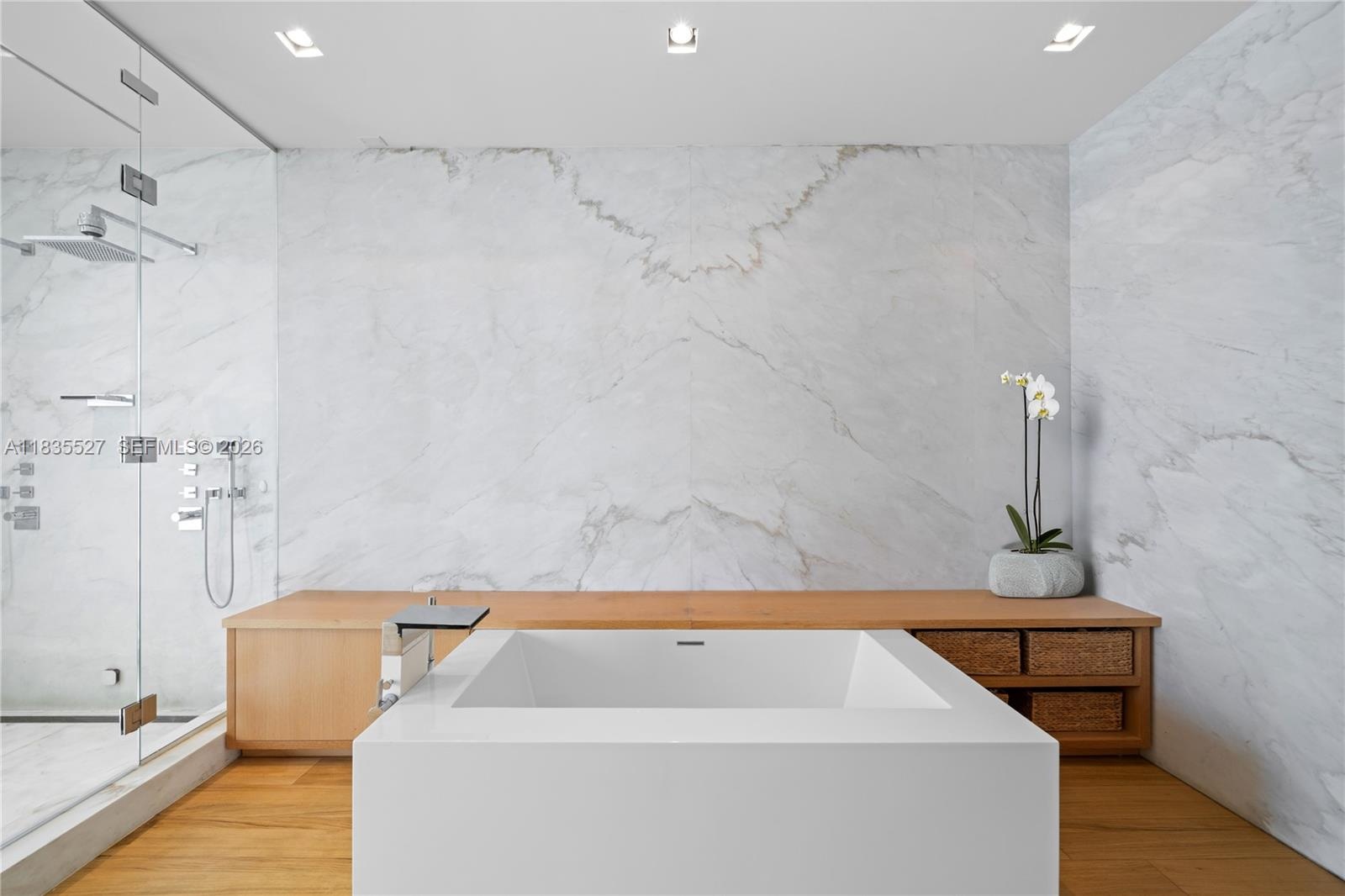 RARE VENETIAN ISLANDS TROPICAL MODERN WATERFRONT ESTATE WITH DIRECT DOWNTOWN MIAMI CITY SKYLINE VISTAS OVER THE BAY ON THE COVETED SOUTH-SIDE OF SAN MARINO ISLAND! Stunning Bayfront Residence Perched on OVERSIZED 15,750SF LOT & A HALF with 90FT of Waterfrontage. Multi-Vessel IPE Dock w/Lift & Jet Ski platforms. 5 Large Suites each with Ensuite Baths + 2 Powder Rooms + Office + Family Room. Theater w/Surround Sound & Lounging Beds. Open modern floor plan, wrapped by 10 FT Telescopic Fleetwood Glass Doors, provides Seamless Indoor/Outdoor Living. Blonde Oak Floors & Gourmet Eat-in Kitchen with Gas Range & Stainless Steel Miele Appliances sits adjacent to Catering Kitchen with Pantry & Separate Service Entrance. Comfortable Breakfast Area, Wine Room & Bar. Spacious Primary Suite draped by Panoramic Sunsets over Miami Skyline with two dressing rooms + Bookmatched Marble Bath with Rain Shower & Deep Soaking Tub. Wraparound Terraces in Keystone with Stairs lead to an Expansive Rooftop Entertaining Area—Ample Green Space with Architectural Dark Bottom Negative-edge Pool & Spa. Modern Gazebo includes a Chef’s Summer Kitchen + Cabana Bath. Privacy Gate + 2 Car Garage.