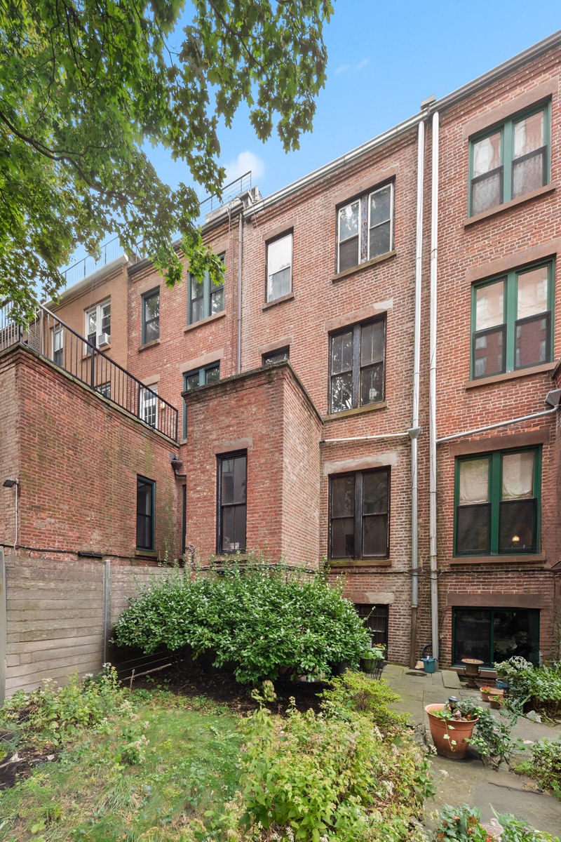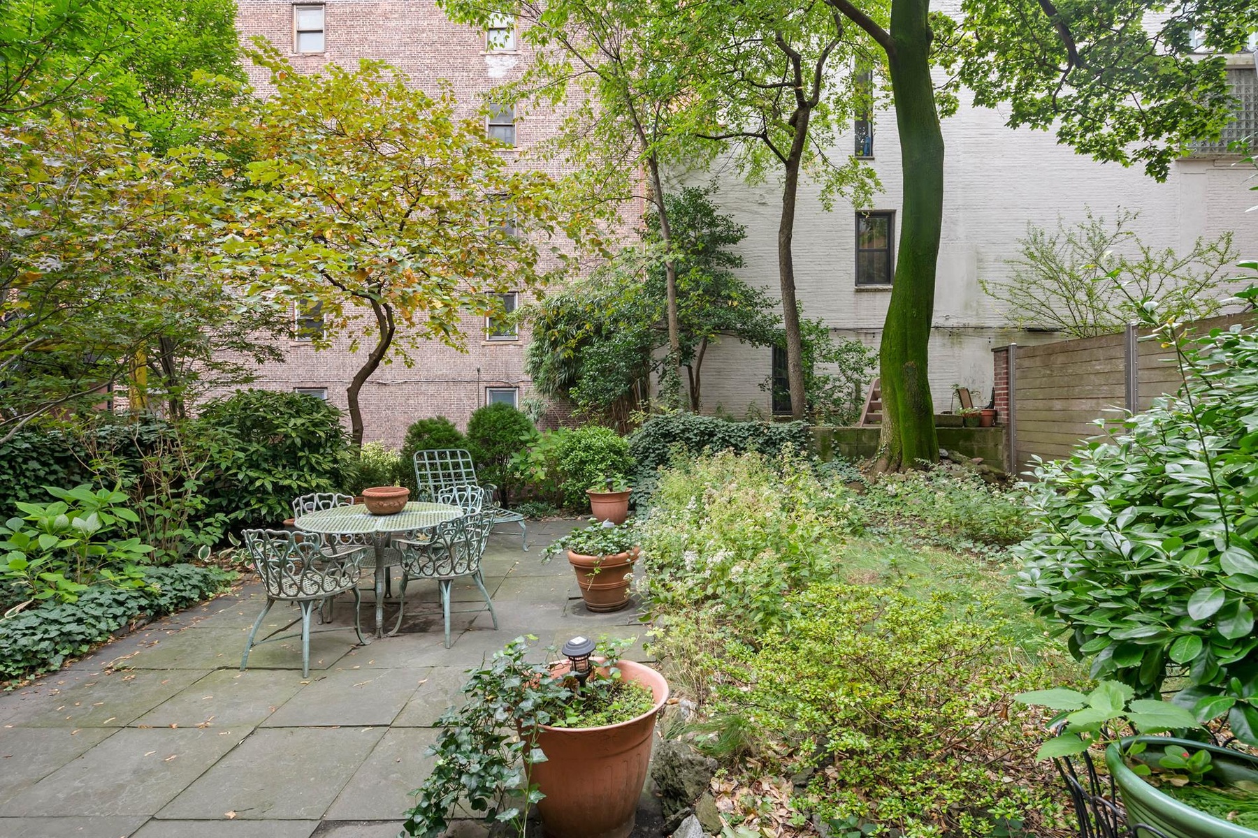 Under the stoop entrance leads to a front room and mechanicals. A generous middle room works as a den, playroom, or guest space. At the rear, informal dining and a kitchen connect directly to the large garden, creating a natural flow between the two spaces. A full bath, storage, and laundry hook-up complete the level.
