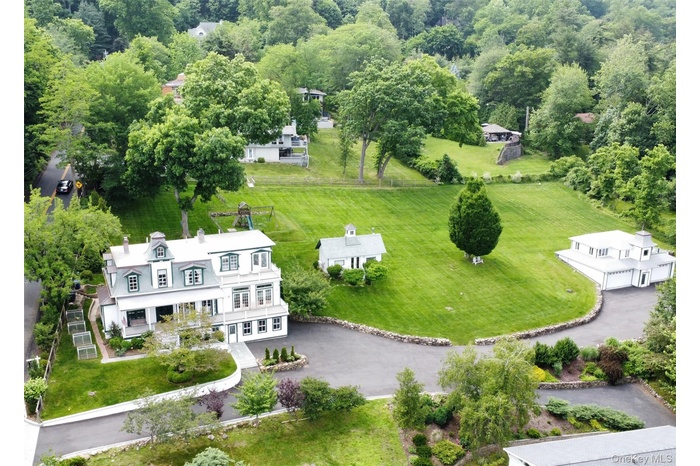 Described in The Hook magazine as “Camelot on the Hudson,” this Hudson River mini-estate evokes the romance of a bygone era reimagined for modern living. Set on 1.37 lush acres, the five-bedroom main residence blends history and design—reclaimed wood floors, soaring ceilings, leaded-glass transoms, and sunlight filtering through tall windows that frame the river beyond. The gracious layout connects elegant entertaining spaces to a chef’s kitchen designed for gatherings of family and friends, while the first-floor primary suite—with its fireplace, spa bath, and dressing room—offers a retreat of quiet luxury. Thoughtful updates including a new slate roof, copper flashing, and four Tesla Powerwalls pair sustainability with enduring quality.