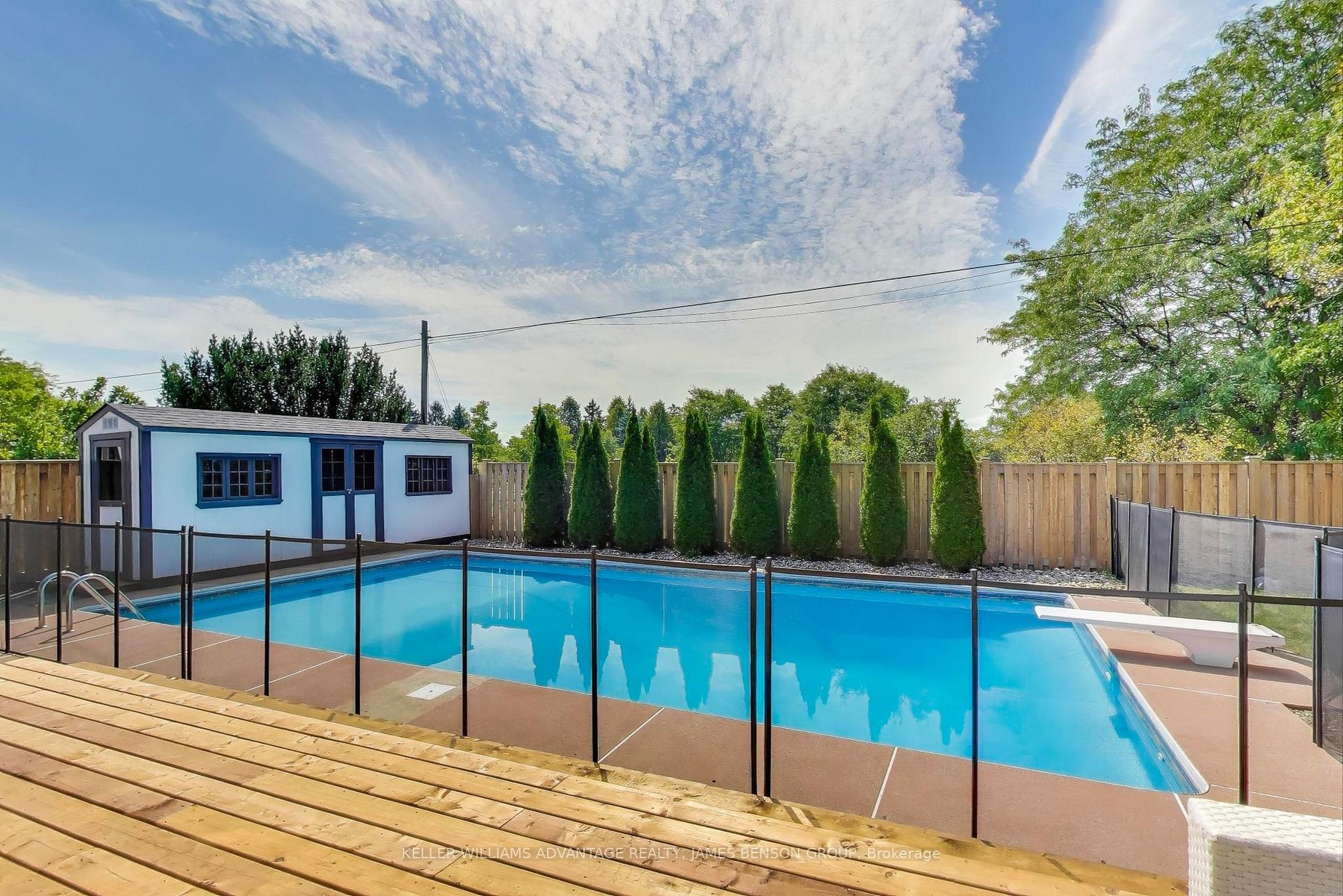 Coveted detached home on a rare 65 x 120 lot in Mineola East with gate access to Spruce Park. This bright and airy 4-bedroom, 4-bathroom residence offers an exquisite master suite with soaring windows and panoramic park views, walk-in closet, 5-piece bathroom with jetted tub, & glass-enclosed shower. The 2nd and 3rd bedrooms share a 4-piece bath with laundry (one of two laundry areas) for added convenience and both have Juliette balconies overlooking the front yard and tranquil neighbourhood tree-scape. The main floor includes a versatile office or bedroom adjacent to a 4-piece bath. Enjoy open-concept living, dining, kitchen, and family room spaces that seamlessly blend comfort and style. Enjoy evenings, dinners and entertaining on the spacious 500 sq/ft deck in your lush backyard that is ideal for entertaining. The partially finished basement includes a second laundry and 3-piece bath, as well as an office and study area. This carpet-free home boasts modern upgrades including a (2023) oven with steam cook and air fry, new roof in (2023), pool pump upgrades in (2025), removable pool safety fence. Situated in one of Mississauga's most prestigious and tranquil neighbourhoods, this home offers easy access to top-rated schools, scenic walking and biking trails, and beautiful parks including Spruce Park and nearby waterfront parks in Port Credit and Lakeview. Commute with ease via close proximity to the QEW, Highway 427, and Port Credit GO Station offering direct trains to downtown Toronto. Residents enjoy charming nearby boutiques, upscale dining, and quick drives to major shopping hubs like Square One and Sherway Gardens.Walk, bike, or drive just 3 minutes to the lake, embracing an exceptional lifestyle that balances serene natural surroundings with convenient urban amenities.This home backs onto a park, offering privacy in a vibrant community known for luxury, safety, and excellent quality of life. A superb family home with endless potential awaits in Mineola East.