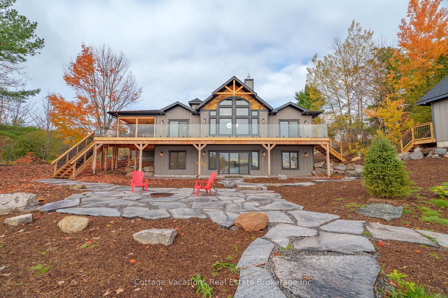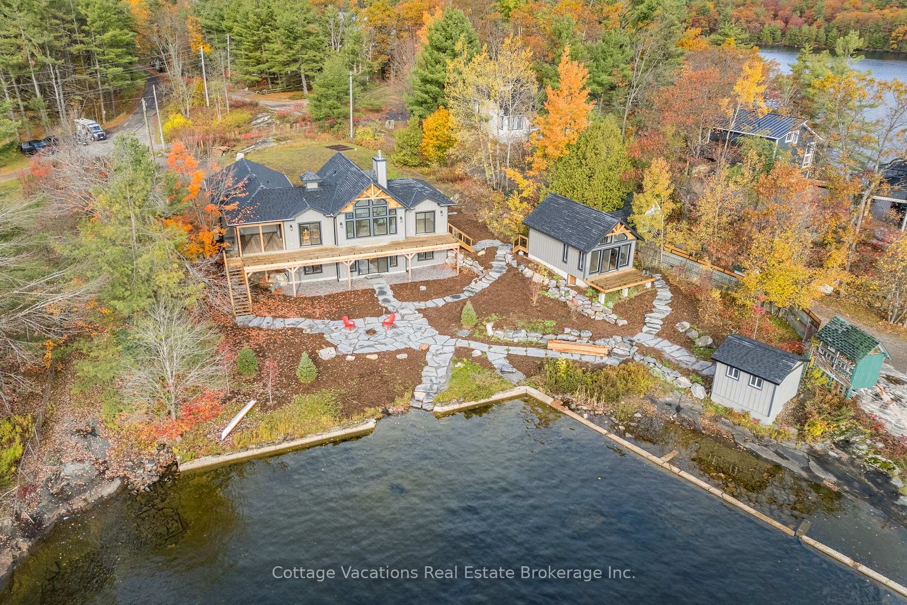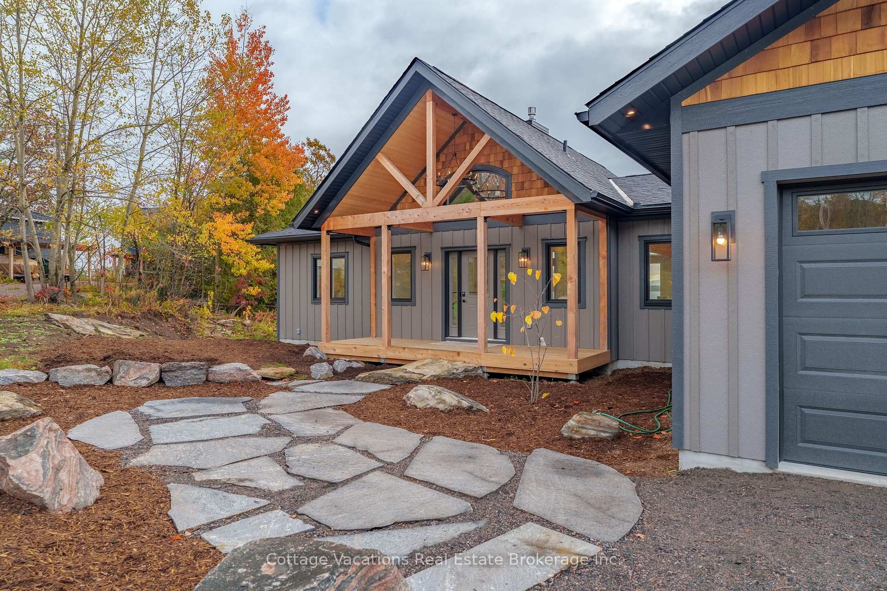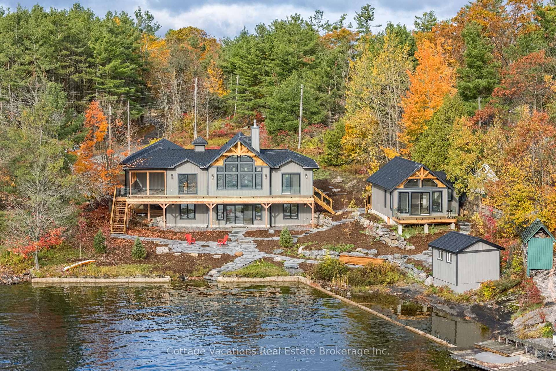Welcome to 1111 Lakeshore Drive, a brand-new custom-built Linwood post & beam home and bunkie set on 178 feet of south-facing Lake Muskoka shoreline. Enjoy year-round living on a quiet, private bay, just minutes from downtown Gravenhurst and the Muskoka Wharf. This 4-bedroom, 3-bathroom retreat blends timeless Muskoka character with modern comfort. The main floor offers 1,415 sq. ft. of finished space featuring a grand great room with exposed Douglas Fir beams, a granite-faced propane fireplace, and floor-to-ceiling windows framing breathtaking Lake Muskoka views. The chef's kitchen includes quartz countertops, shaker cabinetry, and a walkout to a 12' 16' covered porch overlooking the water. A lower level with exceptional lake views provides a bright walkout family area with space for friends & family, while the main-floor primary suite opens directly to the deck. Additional features include a 2-car insulated attached garage with heated floors, main-floor laundry, hardwood flooring, and heated floors in the basement and principal bathroom & shower. The exterior is maintenance-free, beautifully landscaped with granite and mulch, complete with a fire pit and 12' 12' storage shed. A fully functional 445 sq. ft. bunkie offers a 3-piece bath, electric fireplace, and private deck, perfect for guests or extended family. With southern exposure, flat terrain to the water, and a dock permit in hand, this turn-key property is ideal for boating, snowmobiling, or simply relaxing in every season.