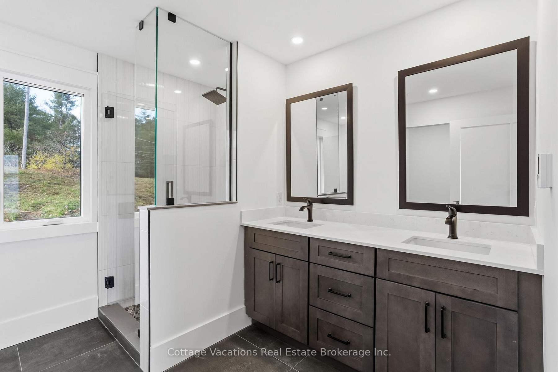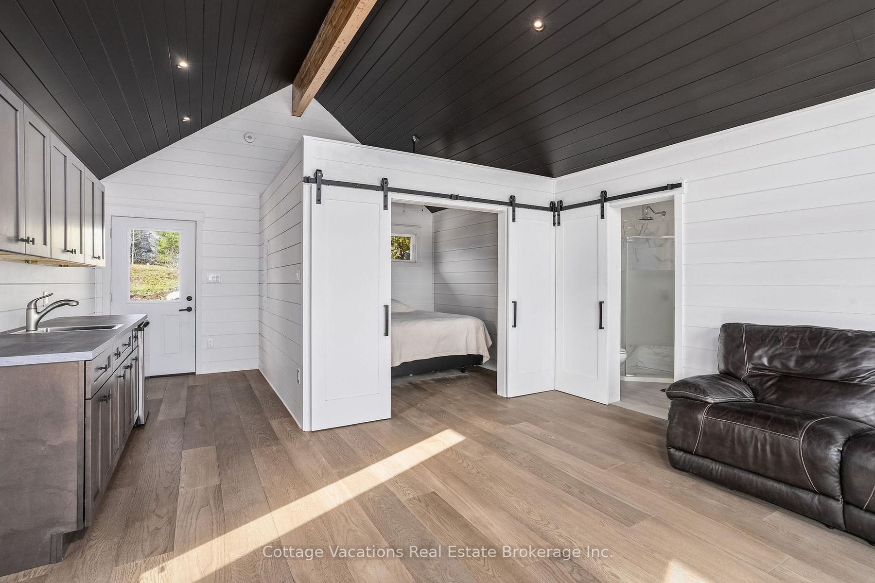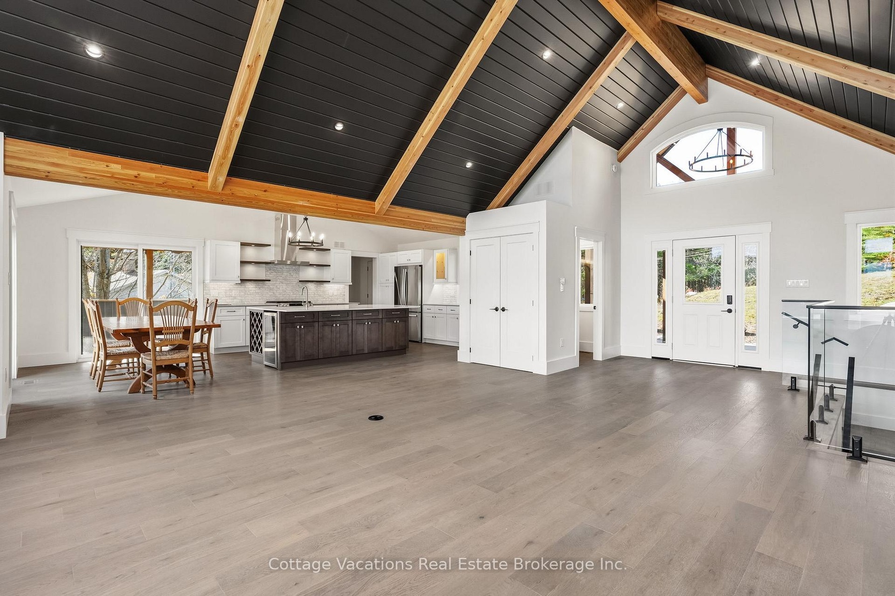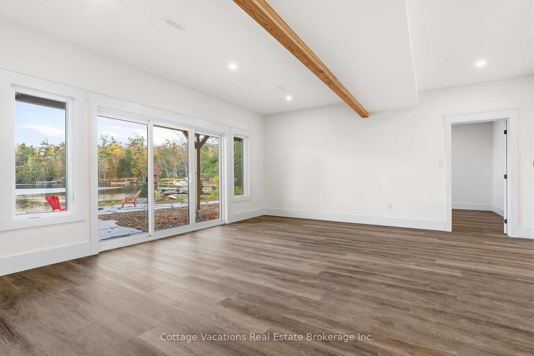 Welcome to 1111 Lakeshore Drive, a brand-new custom-built Linwood post & beam home and bunkie set on 178 feet of south-facing Lake Muskoka shoreline. Enjoy year-round living on a quiet, private bay, just minutes from downtown Gravenhurst and the Muskoka Wharf. This 4-bedroom, 3-bathroom retreat blends timeless Muskoka character with modern comfort. The main floor offers 1,415 sq. ft. of finished space featuring a grand great room with exposed Douglas Fir beams, a granite-faced propane fireplace, and floor-to-ceiling windows framing breathtaking Lake Muskoka views. The chef's kitchen includes quartz countertops, shaker cabinetry, and a walkout to a 12' 16' covered porch overlooking the water. A lower level with exceptional lake views provides a bright walkout family area with space for friends & family, while the main-floor primary suite opens directly to the deck. Additional features include a 2-car insulated attached garage with heated floors, main-floor laundry, hardwood flooring, and heated floors in the basement and principal bathroom & shower. The exterior is maintenance-free, beautifully landscaped with granite and mulch, complete with a fire pit and 12' 12' storage shed. A fully functional 445 sq. ft. bunkie offers a 3-piece bath, electric fireplace, and private deck, perfect for guests or extended family. With southern exposure, flat terrain to the water, and a dock permit in hand, this turn-key property is ideal for boating, snowmobiling, or simply relaxing in every season.
