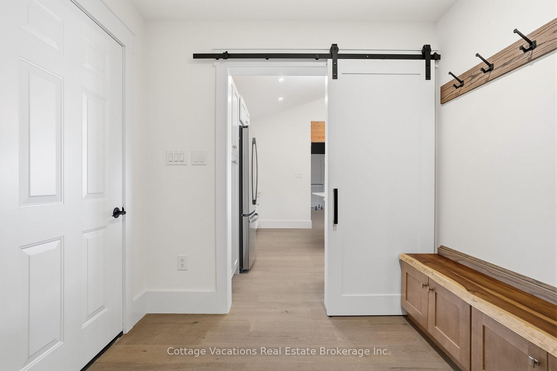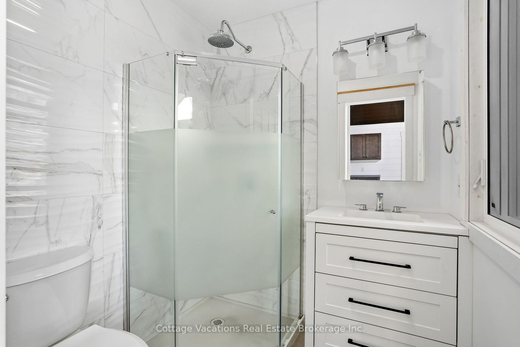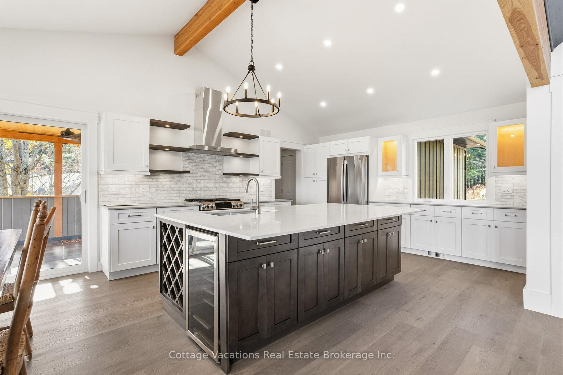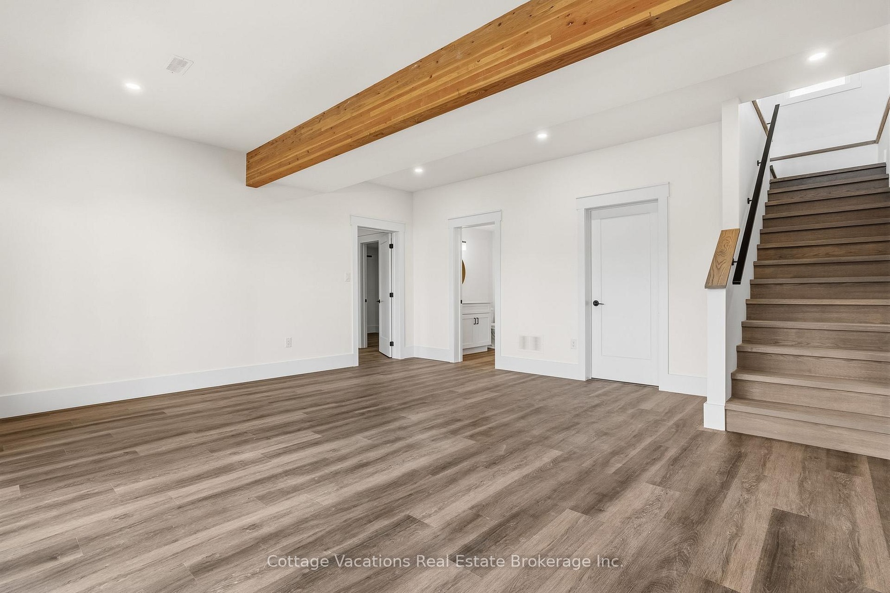 Welcome to 1111 Lakeshore Drive, a brand-new custom-built Linwood post & beam home and bunkie set on 178 feet of south-facing Lake Muskoka shoreline. Enjoy year-round living on a quiet, private bay, just minutes from downtown Gravenhurst and the Muskoka Wharf. This 4-bedroom, 3-bathroom retreat blends timeless Muskoka character with modern comfort. The main floor offers 1,415 sq. ft. of finished space featuring a grand great room with exposed Douglas Fir beams, a granite-faced propane fireplace, and floor-to-ceiling windows framing breathtaking Lake Muskoka views. The chef's kitchen includes quartz countertops, shaker cabinetry, and a walkout to a 12' 16' covered porch overlooking the water. A lower level with exceptional lake views provides a bright walkout family area with space for friends & family, while the main-floor primary suite opens directly to the deck. Additional features include a 2-car insulated attached garage with heated floors, main-floor laundry, hardwood flooring, and heated floors in the basement and principal bathroom & shower. The exterior is maintenance-free, beautifully landscaped with granite and mulch, complete with a fire pit and 12' 12' storage shed. A fully functional 445 sq. ft. bunkie offers a 3-piece bath, electric fireplace, and private deck, perfect for guests or extended family. With southern exposure, flat terrain to the water, and a dock permit in hand, this turn-key property is ideal for boating, snowmobiling, or simply relaxing in every season.