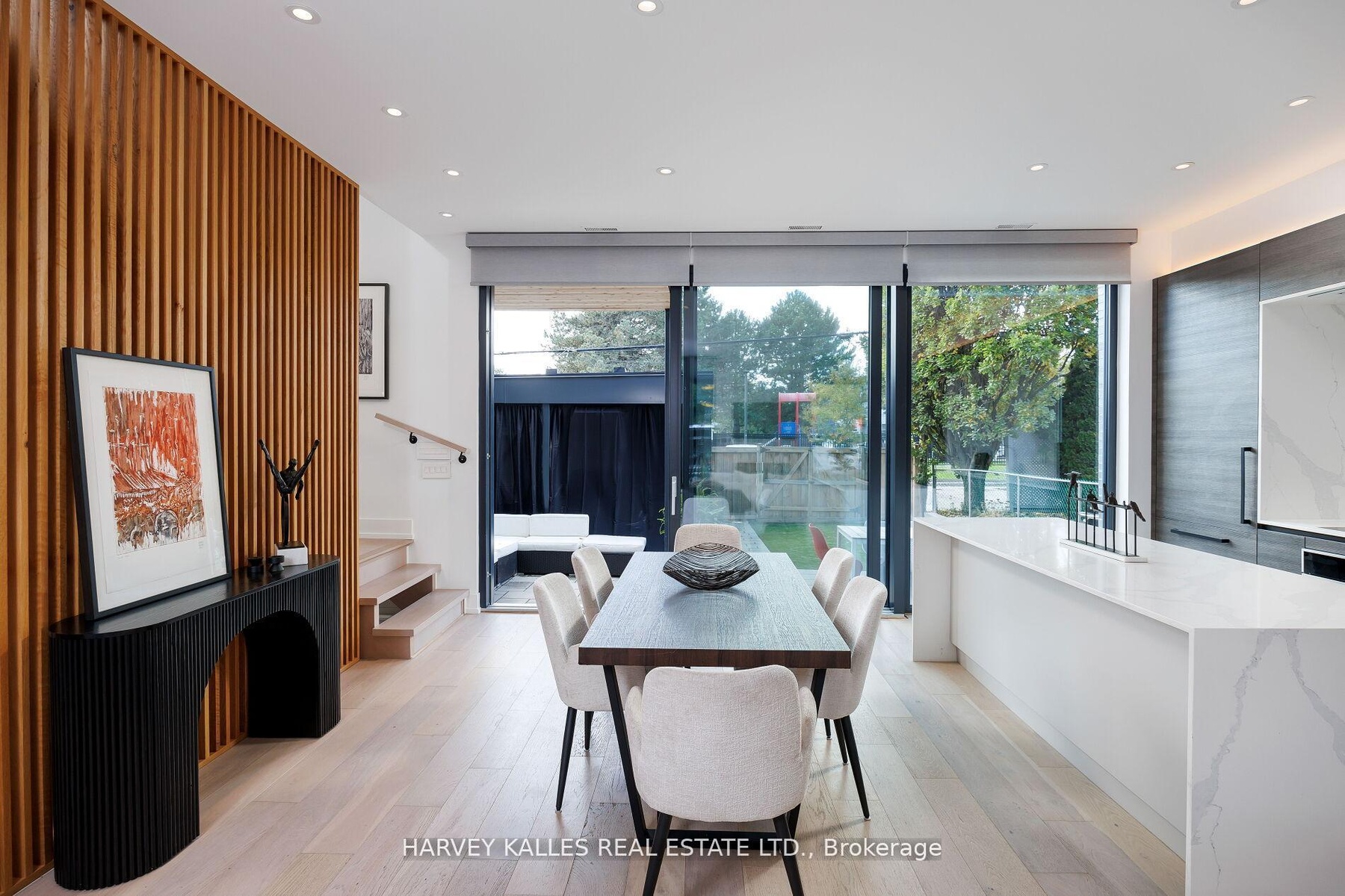 A masterfully reimagined residence that captures the essence of contemporary luxury. Designed for the discerning professional family, this home balances refined style with livability - a rare find in the one of the city's most coveted east-end enclaves. This exceptional 3+1 bedroom, 5 bath, custom home, blends architectural detail, sophisticated interiors and forward thinking engineering with an open-concept main level, 10 foot ceilings and almost 3000 square feet of living area. The home includes wide plank Maple hardwood floors, custom millwork and many upgrades that set a tone of quiet and contemporary luxury. Passive Home rated floor to ceiling windows and fully electric Hunter Douglas blinds accentuate sun-filled rooms. The living and dining areas are ideal for elegant entertaining, anchored by a Scavolini kitchen with an inviting quartz island that truly inspires culinary kings and queens - complete with ultra high end professional-grade appliances. Second level, private quarters offer a sanctuary for modern family life. The staircase, lined with a slatted white oak floor to ceiling feature wall winds into the open concept den and 2 abundantly appointed bedrooms with artful detailing and two individual full baths and laundry room. Rising to the 3rd floor's westward view of the city, the primary suite features 5 pcs ensuite, stone crafted soaker tub and Scavolini walk-in. Lower level integrates form and function with a stylish media lounge area, home office and exercise area. Employing a premium, performance based eco-friendly Passive Horne template, the home includes heated floors throughout. Roof top solar panels create an almost net zero energy efficient home. West facing urban backyard oasis for morning coffee and entertaining. Steps to Greenwood Park and Queen East shops, this is the ideal home for Up-sizers, Urban Professionals and the discerning buyer, who appreciates craftsmanship, community and modern convenience in an upscale, urban neighbourhood.