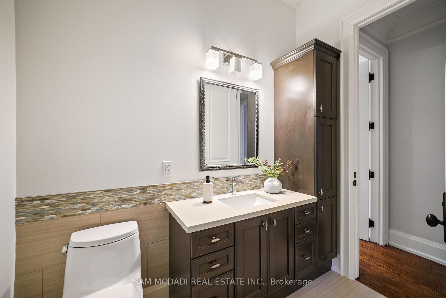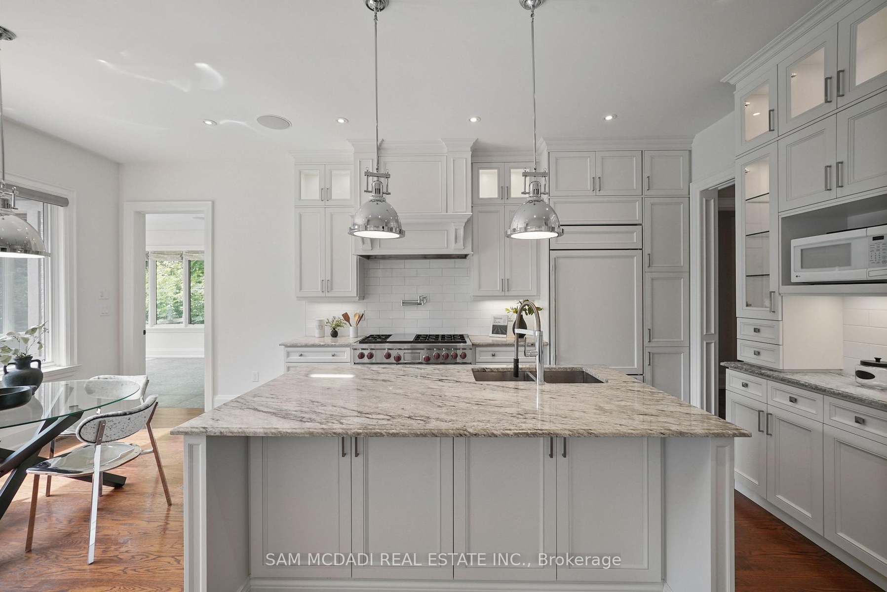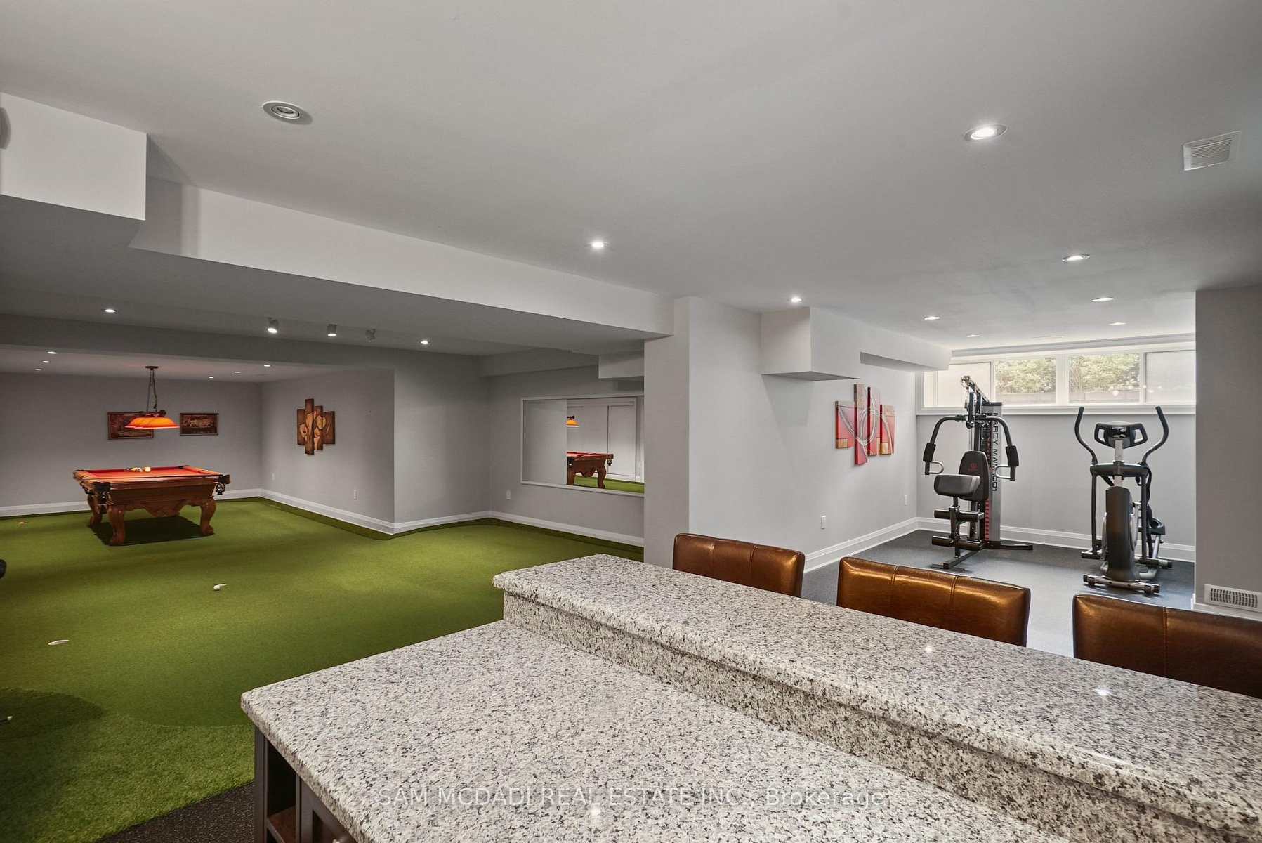 Welcome to this truly spectacular Mineola home. A true masterpiece nestled on a sprawling 90x150 ft lot on the highly desirable Maplewood Rd. An extraordinary commitment to craftsmanship and attention to detail, this residence offers 4,405 sqft of above-grade refined living space. Step through the gorgeous Mahogany entrance door and be immediately captivated by the breathtaking barrel vaulted foyer, adorned with exquisite plaster moulding. The main floor exudes elegance and functionality, featuring a beautiful family room with a stunning built-in gas fireplace, creating a warm and inviting atmosphere. Culinary enthusiasts will be delighted by the breathtaking eat-in kitchen, complemented by an adjacent butler's kitchen, perfect for entertaining. For seamless indoor-outdoor living, a bright, fully enclosed sunroom off the kitchen provides an ideal space for entertainment and leisure.The luxurious main floor primary bedroom suite is a private oasis, boasting a large walk-in closet with organizers and a lavish 5-piece spa-like ensuite, designed for ultimate relaxation. An additional bedroom and dedicated office space on the main floor offer exceptional convenience and versatility. Ascend to the second floor, where you'll find four generously sized bedrooms and two well-appointed bathrooms, providing ample space for family and guests. The finished lower level is an entertainer's paradise, featuring above-grade windows that flood the space with natural light. Enjoy a round of mini-golf, challenge friends to a game of billiards, or gather around the sleek wet bar, this basement is designed for endless fun and recreation, easily walk-up to the private backyard oasis. This must-see property is ideally located close to top-rated schools, lush parks, quick access to major highways, the Go-Train, and the vibrant Village of Port Credit, with its array of renowned restaurants and boutique shopping. Experience the pinnacle of luxury living in Mineola.