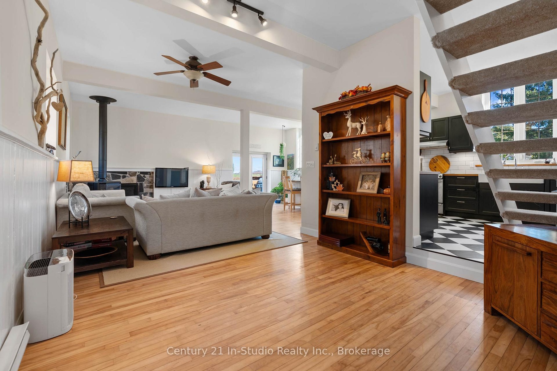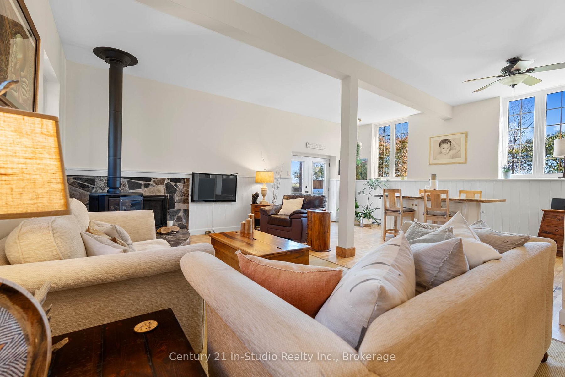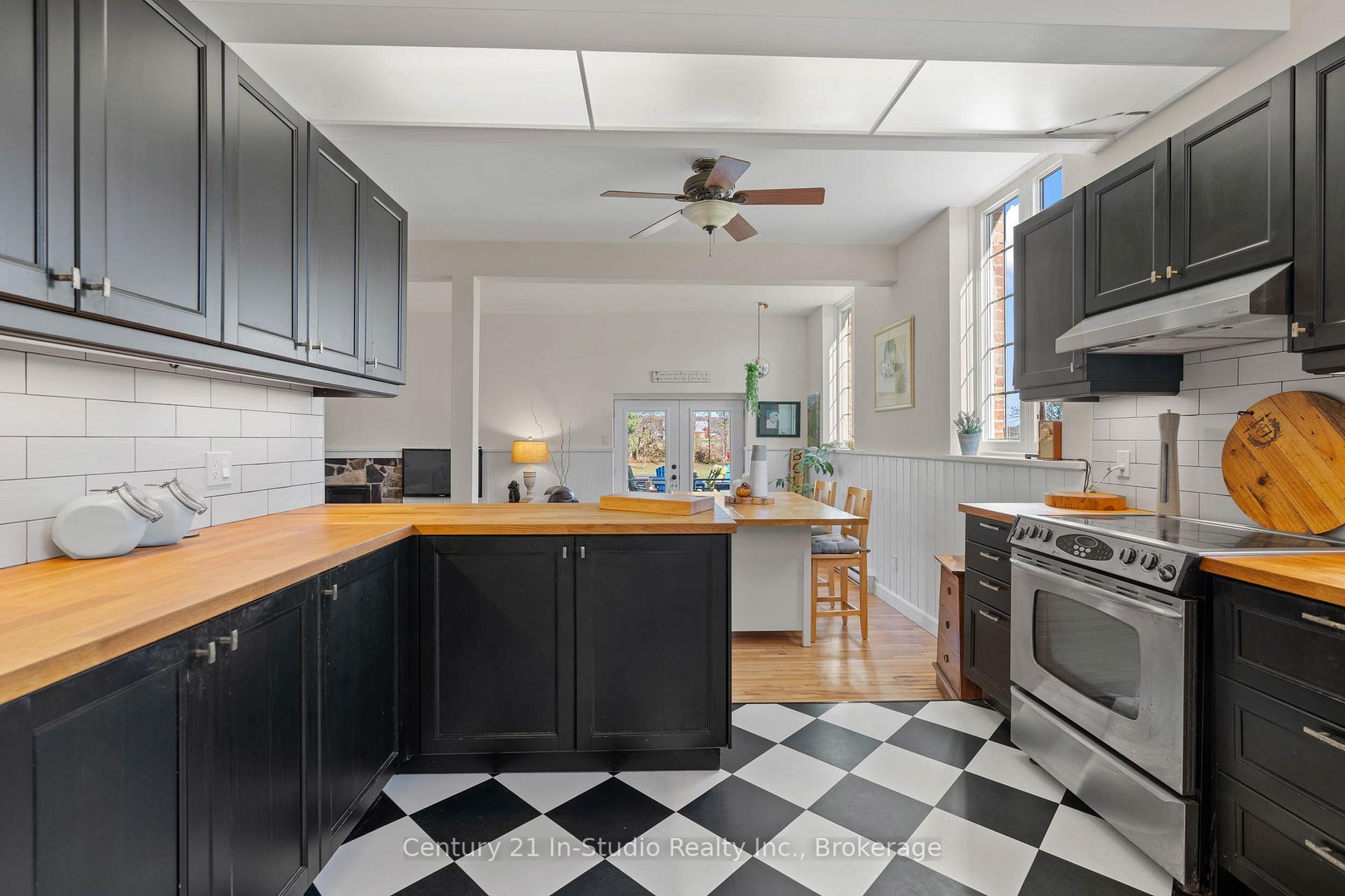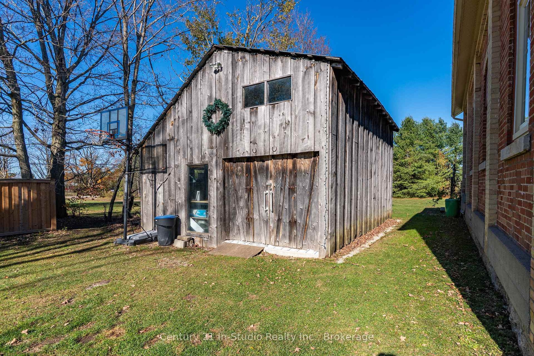 If you've ever dreamed of owning a piece of history, the Kemble Schoolhouse offers just that-rich in character, charm, and timeless appeal. Once the heart of the community where generations of children began their stories, this historic brick schoolhouse has been beautifully restored into a warm, inviting family home. Set on a full acre with sweeping pastoral views that feel straight out of the English countryside, this property blends heritage beauty with modern comfort. Inside, you'll find soaring ceilings, large windows that fill every room with natural light, and a layout that flows effortlessly. The living room features a cozy propane fireplace and original hardwood floors that carry through to the formal dining area and farmhouse-inspired kitchen, complete with butcher block countertops, wood shelving, and a deep apron sink. A half bath and full laundry room complete the main floor. Upstairs, there are four bright bedrooms, each with skylights that create a light and airy feel. A spacious four-piece bath and a lovely landing with a sitting area add thoughtful touches. The primary bedroom offers wainscoting detail and a private balcony overlooking the property and Kemble Rock beyond. Outdoors, enjoy peaceful country living with room to roam, garden, and gather. There's a rustic workshop, original chicken coop in great condition, fruit trees, and a large patio perfect for entertaining or simply soaking in the fresh air. Every corner of this property tells a story-past and present-making it truly one of a kind. Adjoining Lot also available for purchase