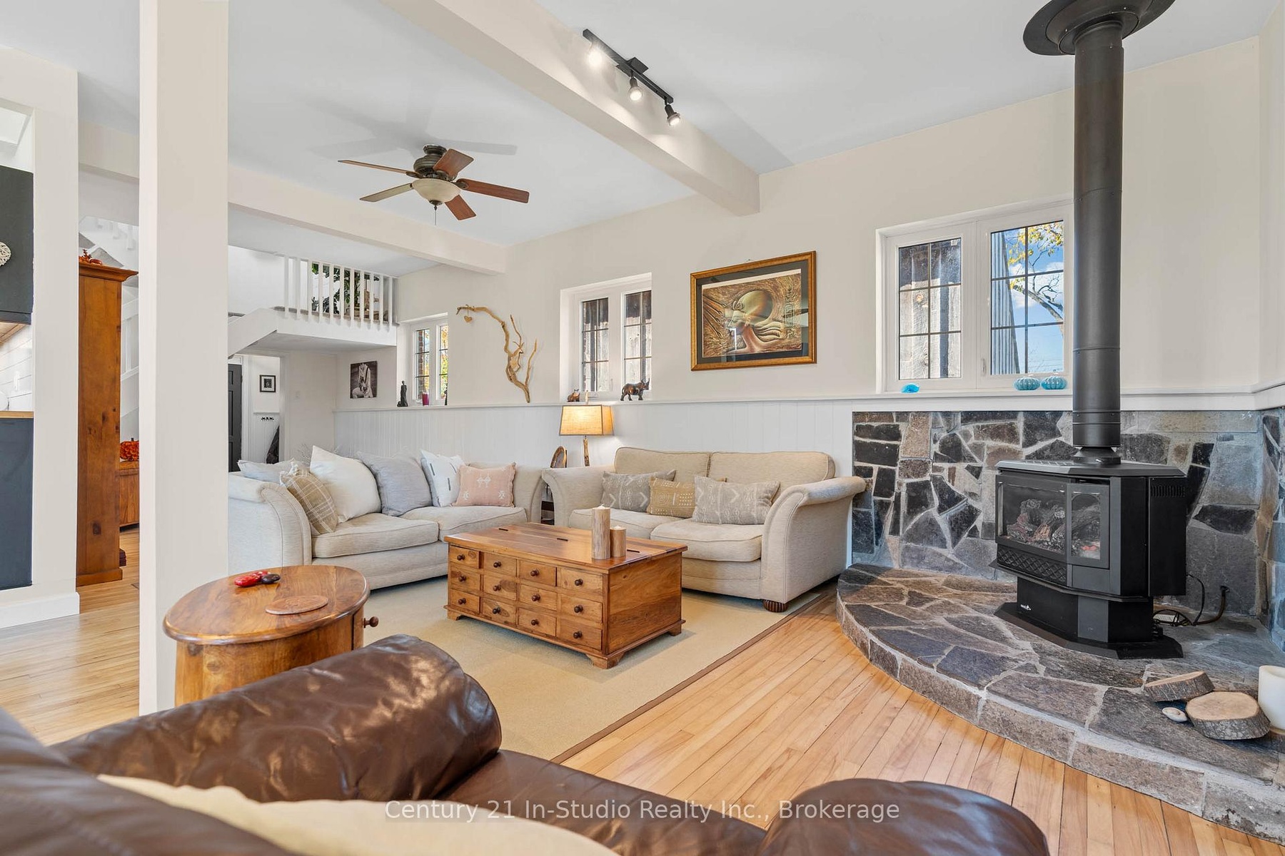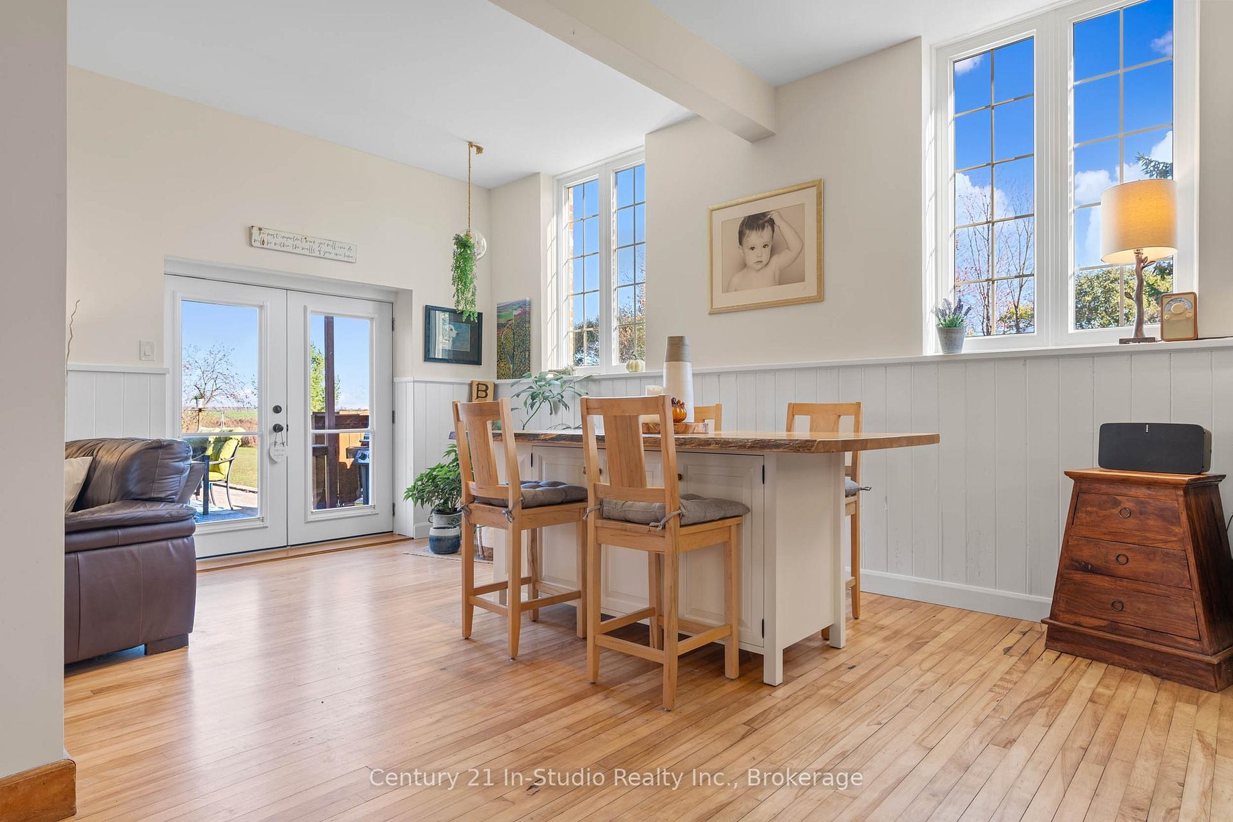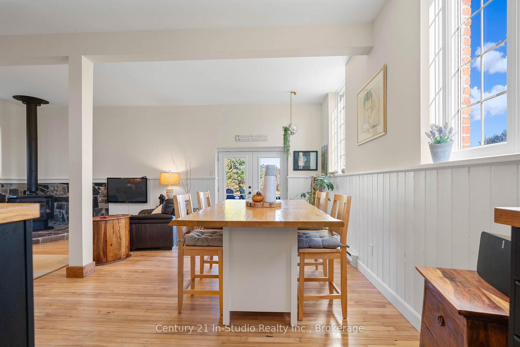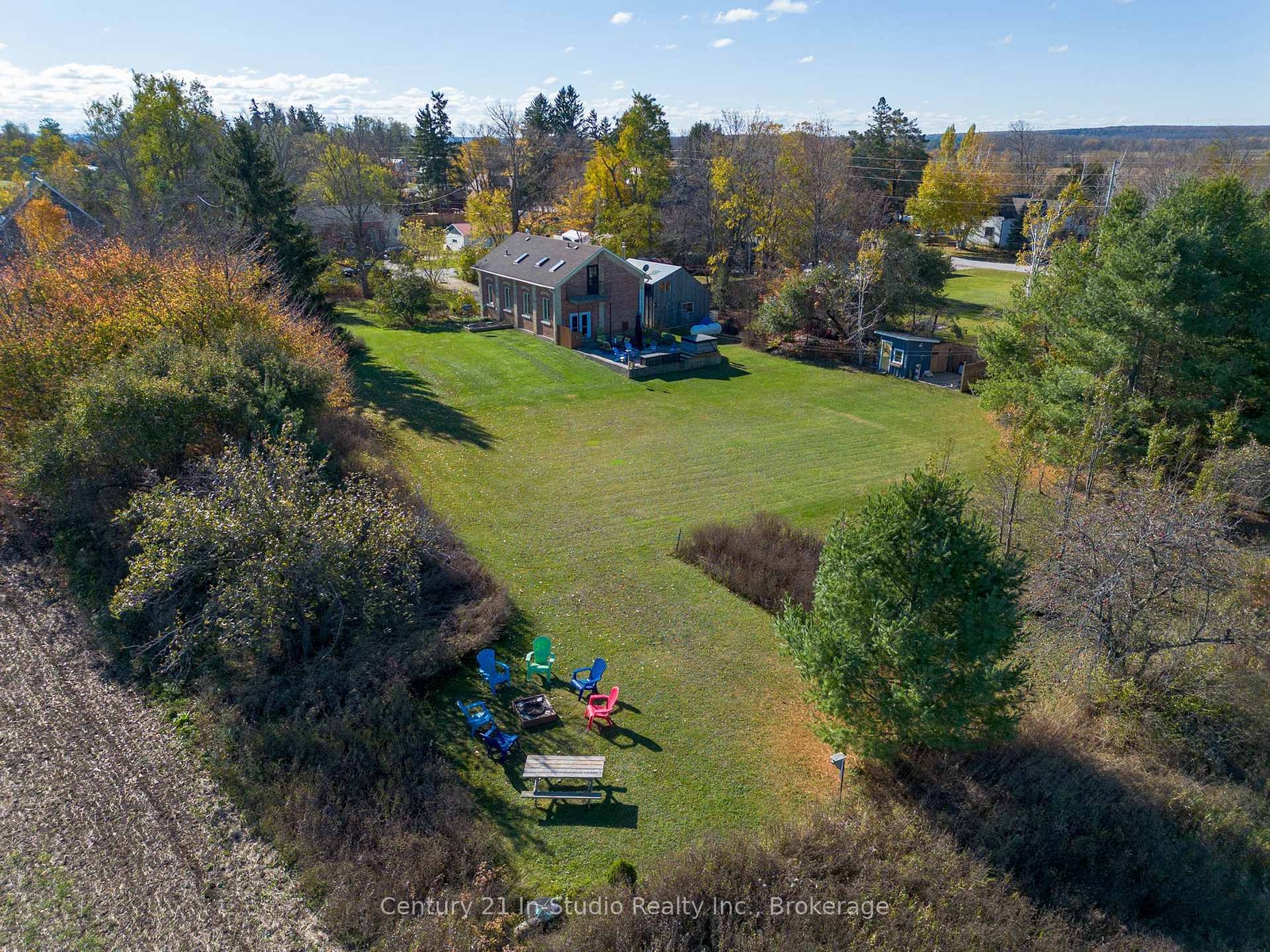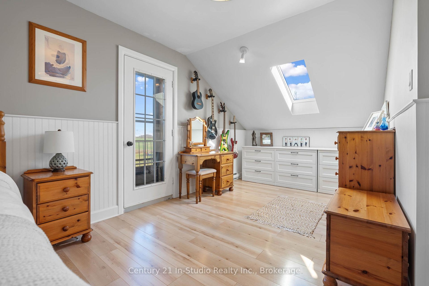 If you've ever dreamed of owning a piece of history, the Kemble Schoolhouse offers just that-rich in character, charm, and timeless appeal. Once the heart of the community where generations of children began their stories, this historic brick schoolhouse has been beautifully restored into a warm, inviting family home. Set on a full acre with sweeping pastoral views that feel straight out of the English countryside, this property blends heritage beauty with modern comfort. Inside, you'll find soaring ceilings, large windows that fill every room with natural light, and a layout that flows effortlessly. The living room features a cozy propane fireplace and original hardwood floors that carry through to the formal dining area and farmhouse-inspired kitchen, complete with butcher block countertops, wood shelving, and a deep apron sink. A half bath and full laundry room complete the main floor. Upstairs, there are four bright bedrooms, each with skylights that create a light and airy feel. A spacious four-piece bath and a lovely landing with a sitting area add thoughtful touches. The primary bedroom offers wainscoting detail and a private balcony overlooking the property and Kemble Rock beyond. Outdoors, enjoy peaceful country living with room to roam, garden, and gather. There's a rustic workshop, original chicken coop in great condition, fruit trees, and a large patio perfect for entertaining or simply soaking in the fresh air. Every corner of this property tells a story-past and present-making it truly one of a kind. Adjoining Lot also available for purchase