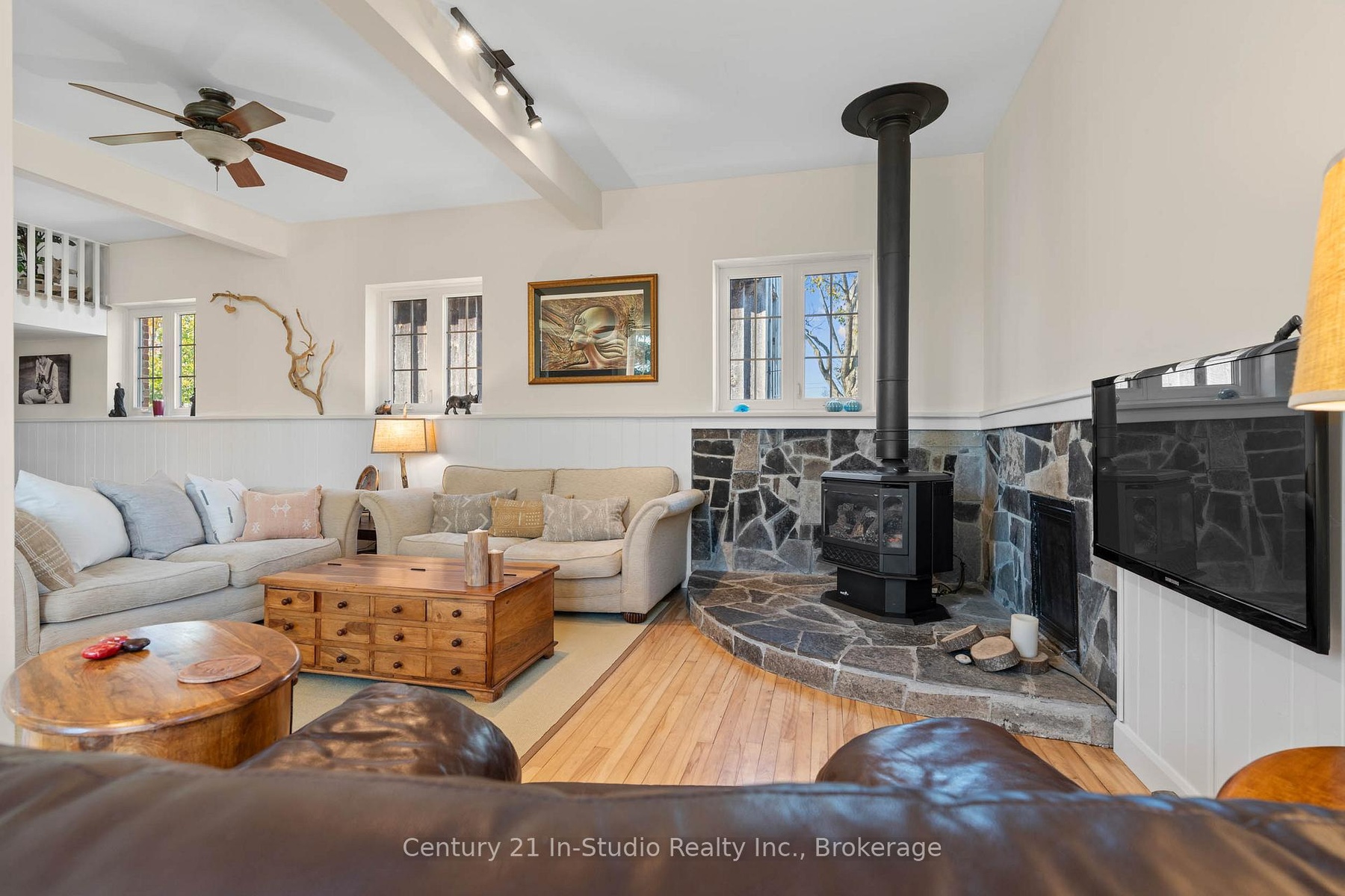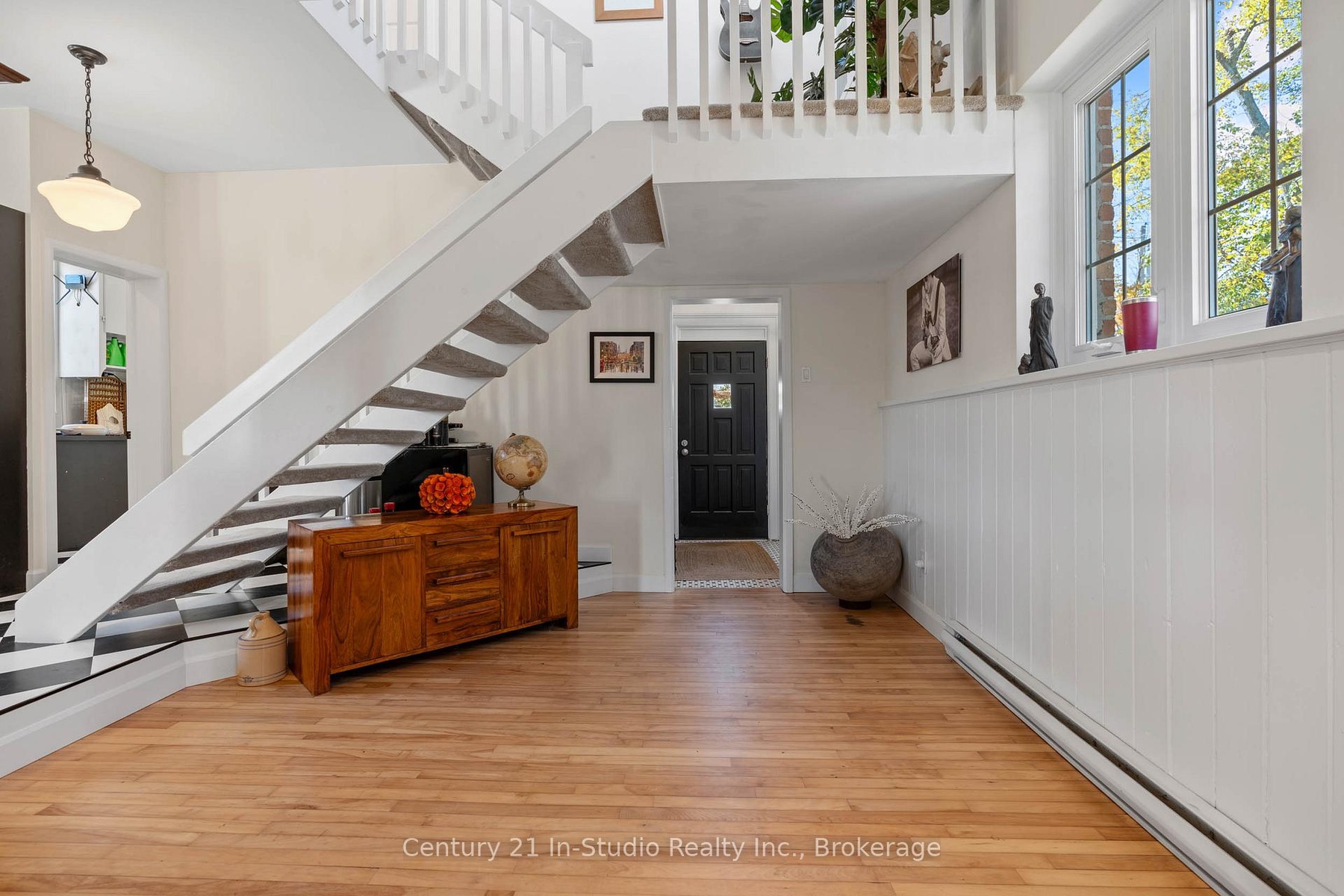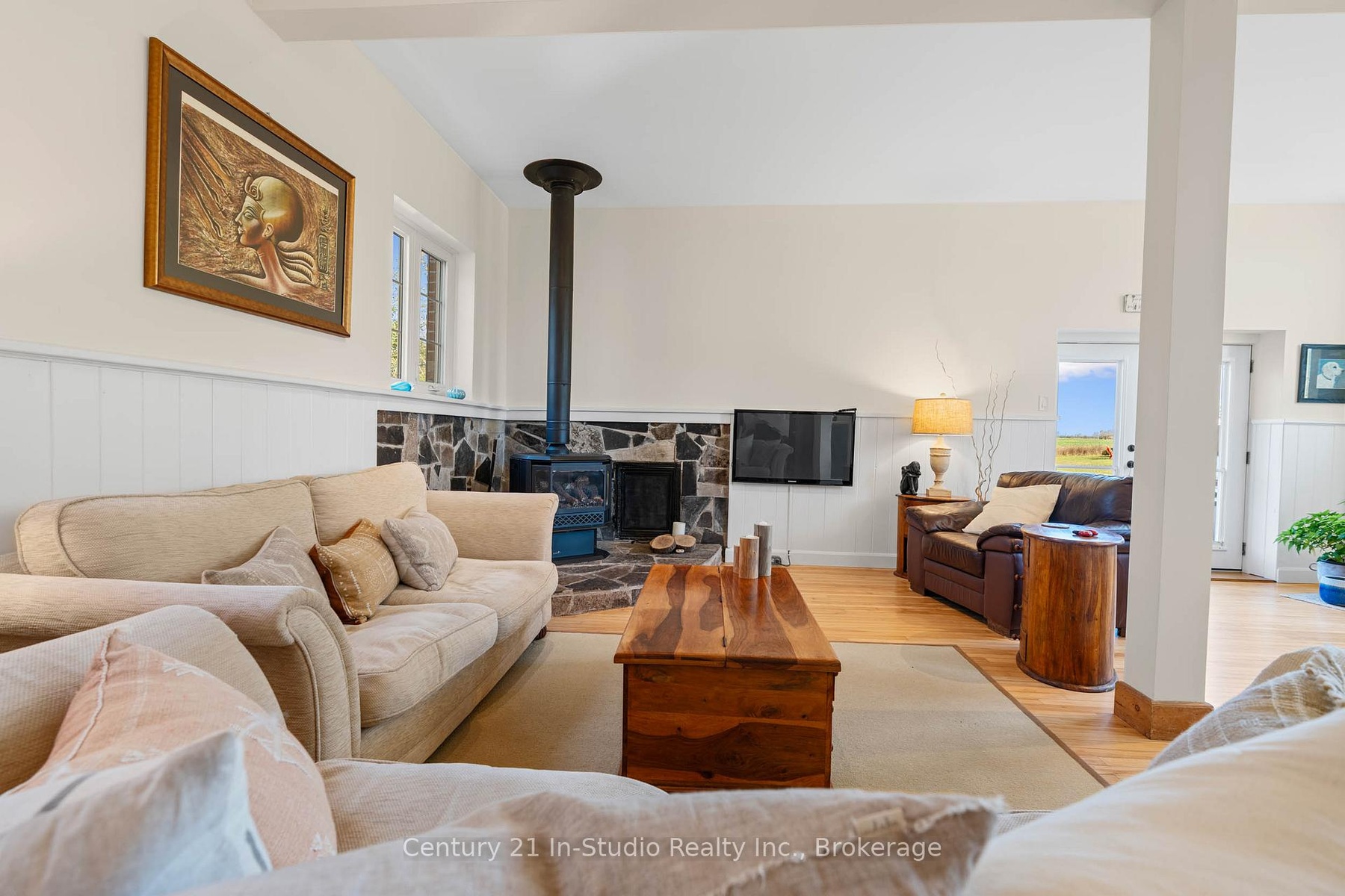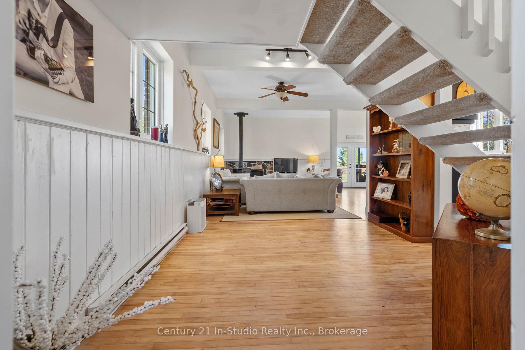 If you've ever dreamed of owning a piece of history, the Kemble Schoolhouse offers just that-rich in character, charm, and timeless appeal. Once the heart of the community where generations of children began their stories, this historic brick schoolhouse has been beautifully restored into a warm, inviting family home. Set on a full acre with sweeping pastoral views that feel straight out of the English countryside, this property blends heritage beauty with modern comfort. Inside, you'll find soaring ceilings, large windows that fill every room with natural light, and a layout that flows effortlessly. The living room features a cozy propane fireplace and original hardwood floors that carry through to the formal dining area and farmhouse-inspired kitchen, complete with butcher block countertops, wood shelving, and a deep apron sink. A half bath and full laundry room complete the main floor. Upstairs, there are four bright bedrooms, each with skylights that create a light and airy feel. A spacious four-piece bath and a lovely landing with a sitting area add thoughtful touches. The primary bedroom offers wainscoting detail and a private balcony overlooking the property and Kemble Rock beyond. Outdoors, enjoy peaceful country living with room to roam, garden, and gather. There's a rustic workshop, original chicken coop in great condition, fruit trees, and a large patio perfect for entertaining or simply soaking in the fresh air. Every corner of this property tells a story-past and present-making it truly one of a kind. Adjoining Lot also available for purchase