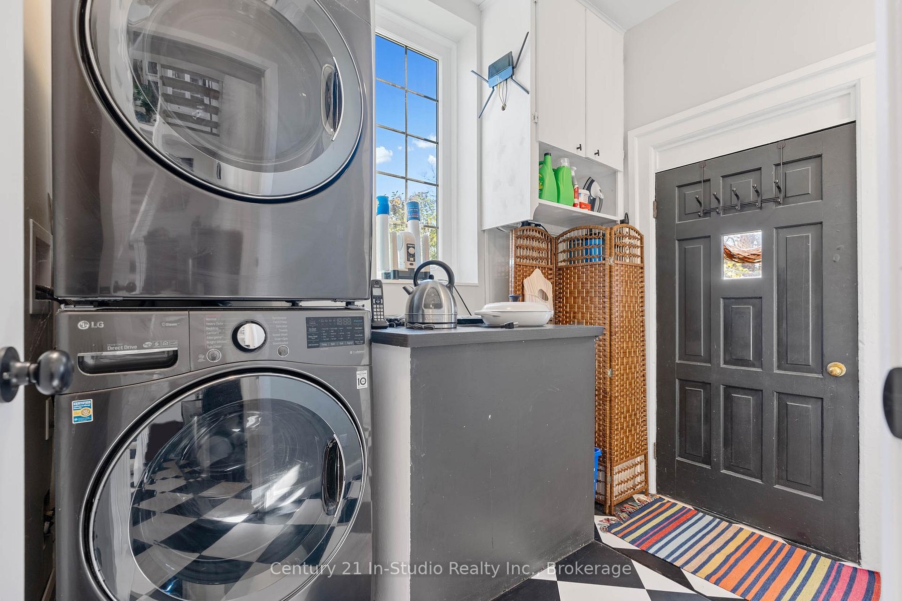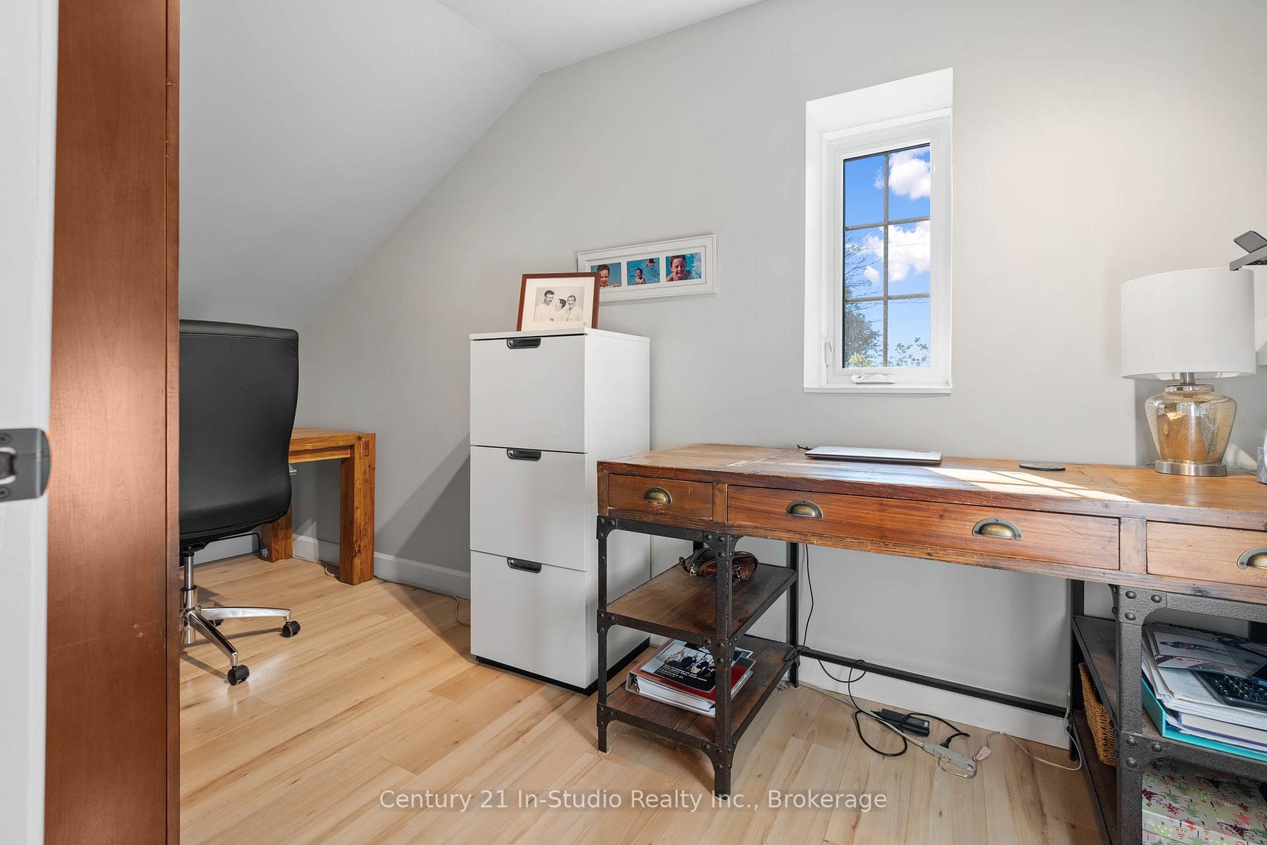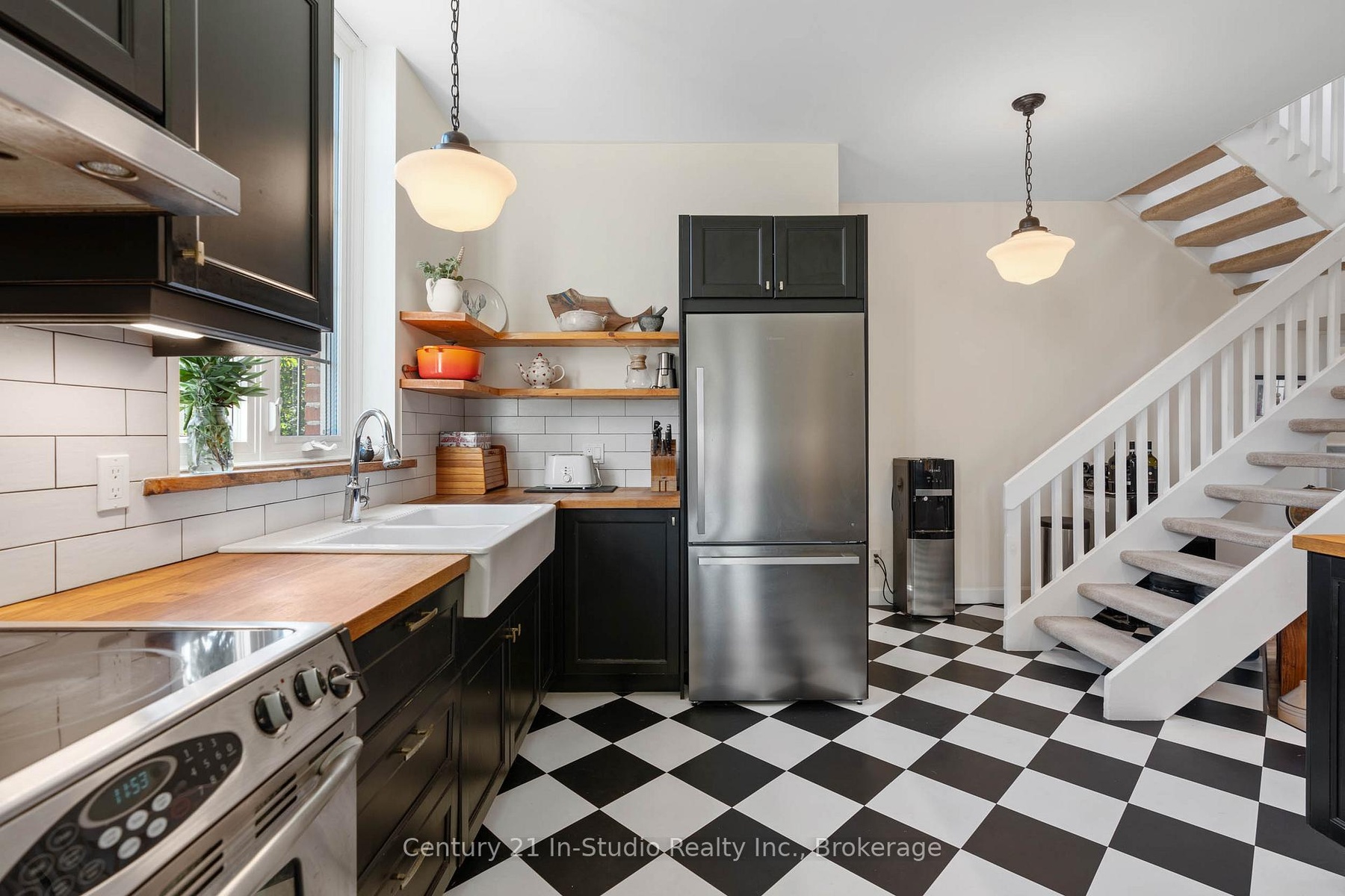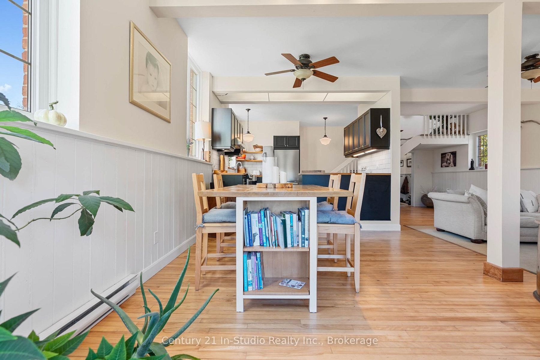 If you've ever dreamed of owning a piece of history, the Kemble Schoolhouse offers just that-rich in character, charm, and timeless appeal. Once the heart of the community where generations of children began their stories, this historic brick schoolhouse has been beautifully restored into a warm, inviting family home. Set on a full acre with sweeping pastoral views that feel straight out of the English countryside, this property blends heritage beauty with modern comfort. Inside, you'll find soaring ceilings, large windows that fill every room with natural light, and a layout that flows effortlessly. The living room features a cozy propane fireplace and original hardwood floors that carry through to the formal dining area and farmhouse-inspired kitchen, complete with butcher block countertops, wood shelving, and a deep apron sink. A half bath and full laundry room complete the main floor. Upstairs, there are four bright bedrooms, each with skylights that create a light and airy feel. A spacious four-piece bath and a lovely landing with a sitting area add thoughtful touches. The primary bedroom offers wainscoting detail and a private balcony overlooking the property and Kemble Rock beyond. Outdoors, enjoy peaceful country living with room to roam, garden, and gather. There's a rustic workshop, original chicken coop in great condition, fruit trees, and a large patio perfect for entertaining or simply soaking in the fresh air. Every corner of this property tells a story-past and present-making it truly one of a kind. Adjoining Lot also available for purchase