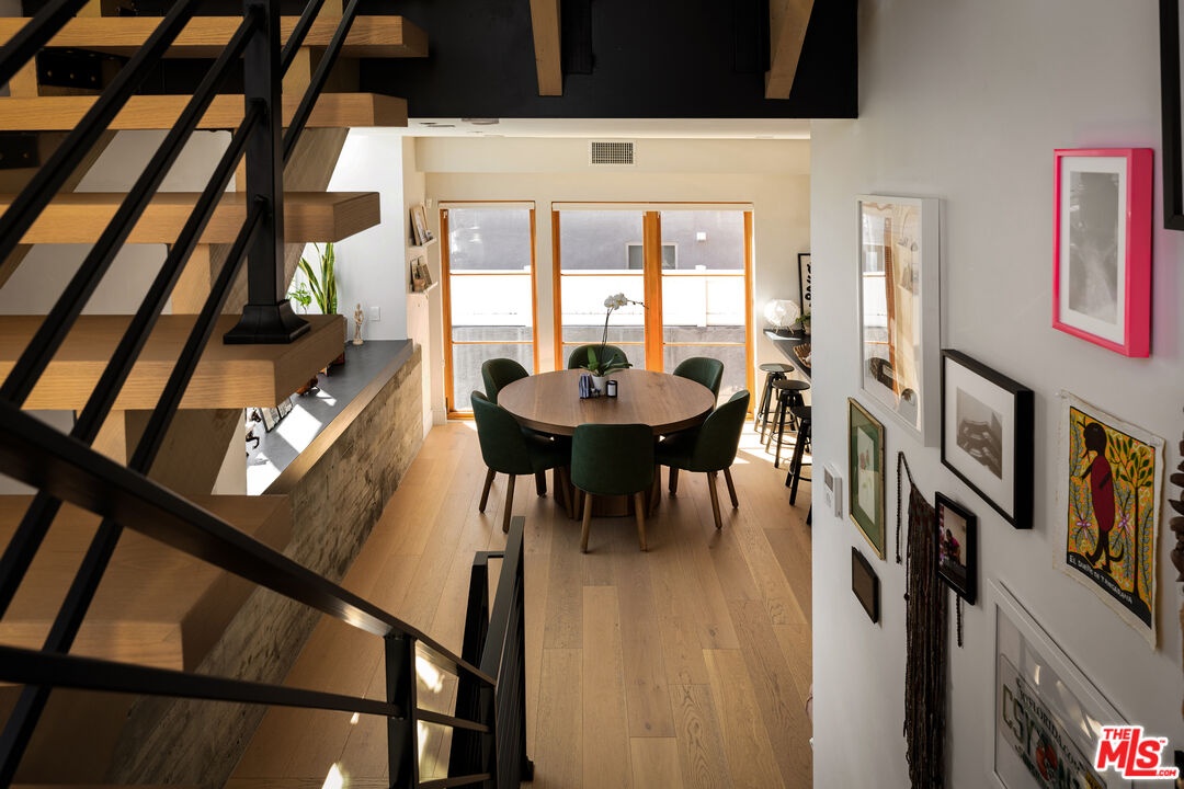 As featured in The New York Times, welcome to 1033 N Vista, where contemporary luxury meets unparalleled convenience in the heart of West Hollywood. Step into 1033 N Vista, a meticulously crafted 2-bedroom, 2-bathroom residence spanning 1,391 square feet of modern elegance. Indulge in the seamless fusion of form and function, with wide plank oak wood floors and soaring ceilings adorning every corner. Oversized windows flood the space with natural light, illuminating the sleek lines of the modern floating staircase and custom cabinetry throughout. The main living space on the second floor beckons with an open concept layout, leading effortlessly to your own private patio perfect oasis for entertaining or unwinding in style. The chef's kitchen is a culinary masterpiece, boasting high-end appliances and slab counters that elevate every meal to gourmet status. Upstairs, the master suite awaits, bathed in sunlight streaming through large skylights. A generous walk-in closet and a luxurious Italian marble-clad bathroom with an oversized contemporary shower promise indulgent comfort at every turn. Two additional levels house a flex space, perfect for a home office or cozy retreat, and an oversized bedroom ideal for guests or family members. Venture downstairs to find an attached garage designed to accommodate two cars with the convenience of a car lift, along with a laundry room for added convenience. As part of a community of four independent single-family homes, enjoy the freedom of homeownership without the burden of HOA fees. With top-tier walkability to the finest restaurants and nightlife, every convenience is at your doorstep.
