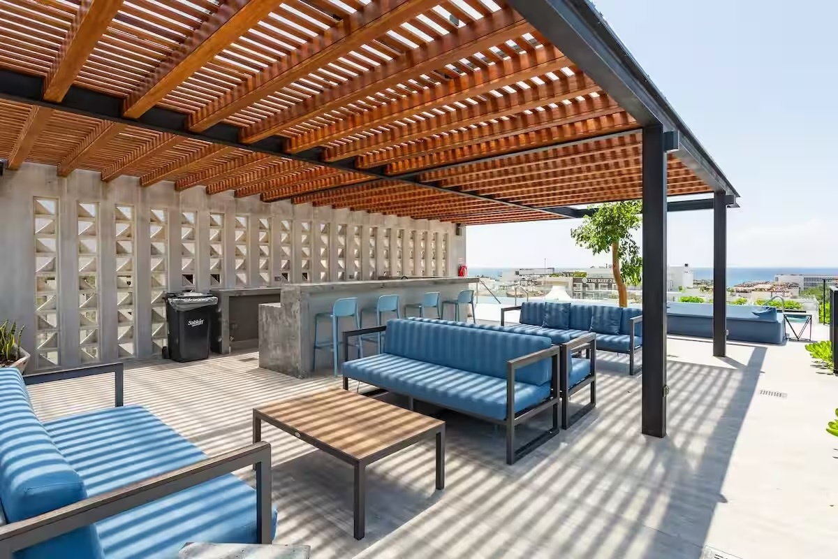 Enjoy resort-style amenities including a rooftop pool with ocean views, a fully equipped gym, and 24/7 security. This modern, air-conditioned vacation rental is designed for comfort and longer stays, featuring: