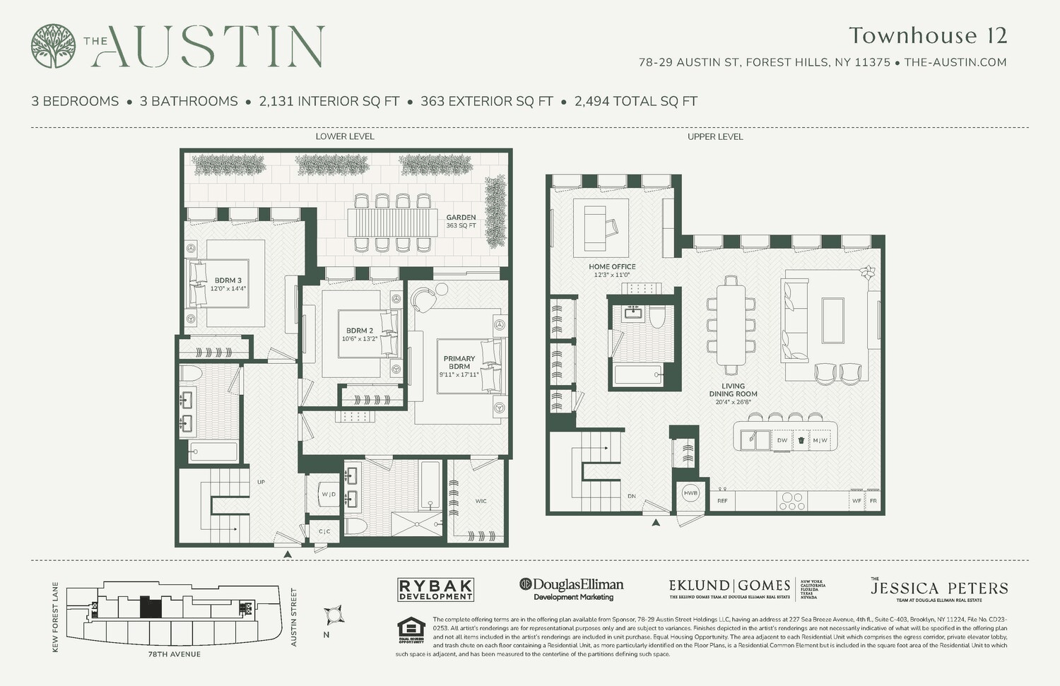 The complete offering terms are in the offering plan available from Sponsor, 78-29 Austin Street Holdings LLC, having an address at 227 Sea Breeze Avenue, 4th fl., Suite C-403, Brooklyn, NY 11224, File No. CD23-0253. All artist's renderings are for representational purposes only and are subject to variances. Finishes depicted in the artist's renderings are not necessarily indicative of what will be specified in the offering plan and not all items included in the artist's renderings are included in unit purchase. Equal Housing Opportunity.