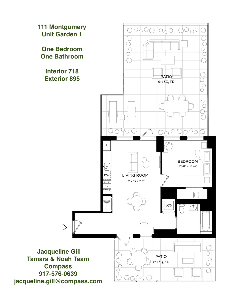Amenities at 111 Montgomery include a fitness center, residents’ lounge, bike storage, children’s playroom, and rooftop terrace with BBQ and panoramic Manhattan and Brooklyn views. The building also offers a live-in resident manager, full-time door staff, package room, and concierge services.